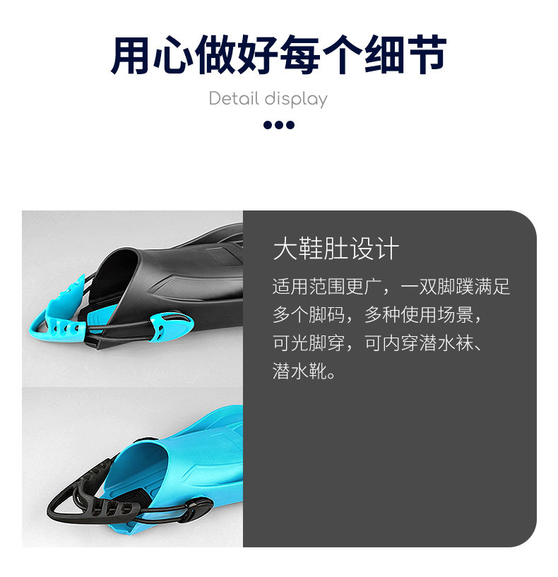 Adult open heel, medium and short size, big belly diving fins, scuba adjustable diving shoes, deep diving professional fins