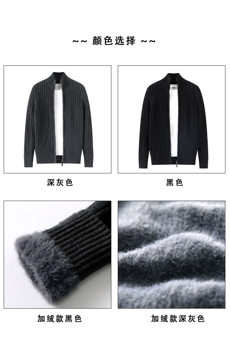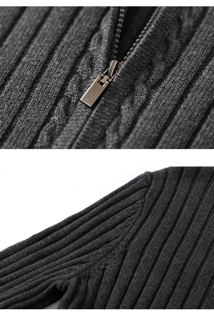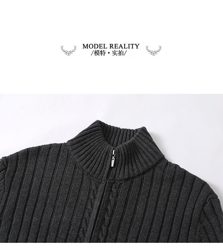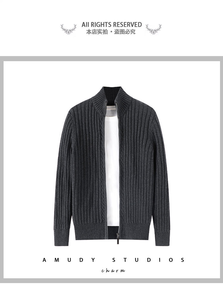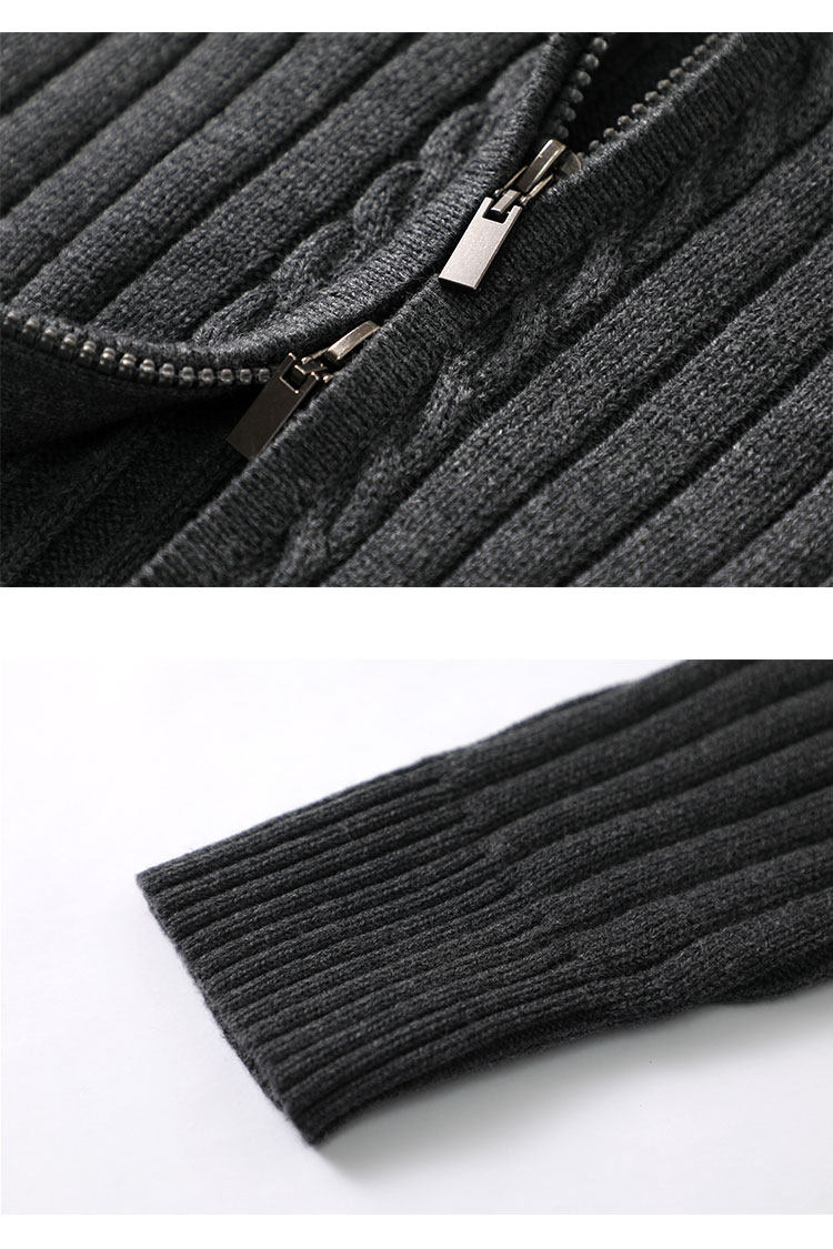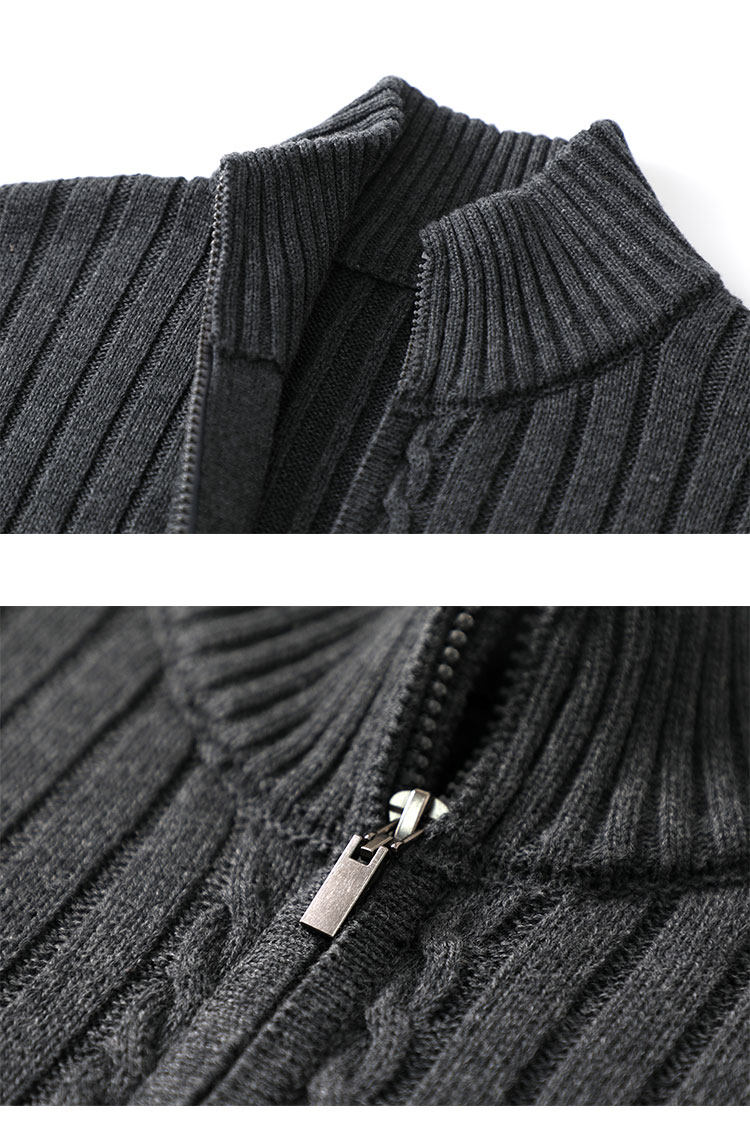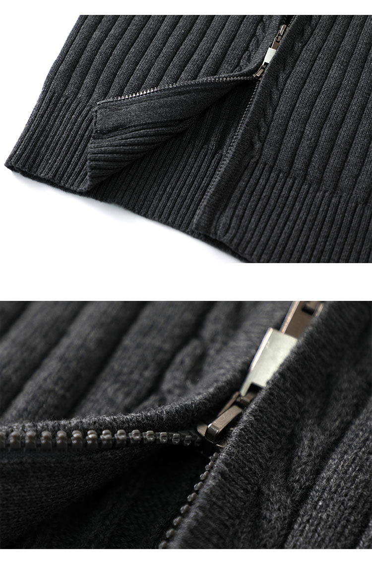 Double zipper 100% cotton knitted cardigan men's 2025 spring and autumn half turtleneck thick black stand-up collar sweater jacket