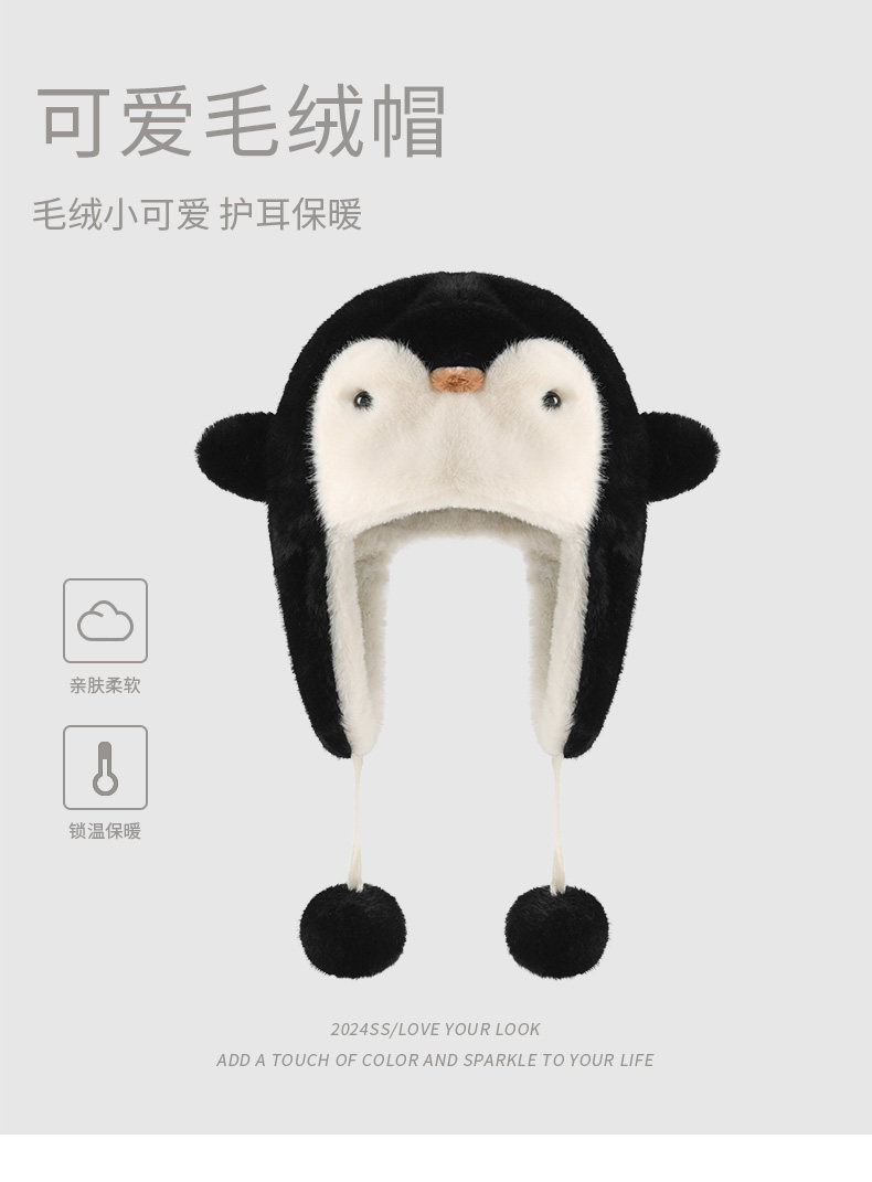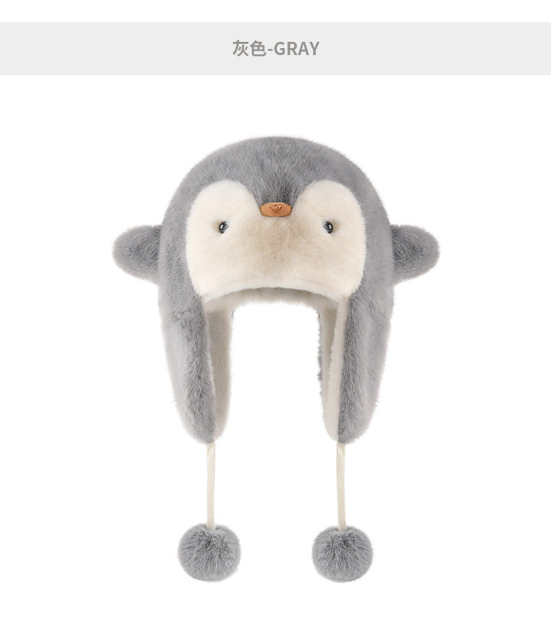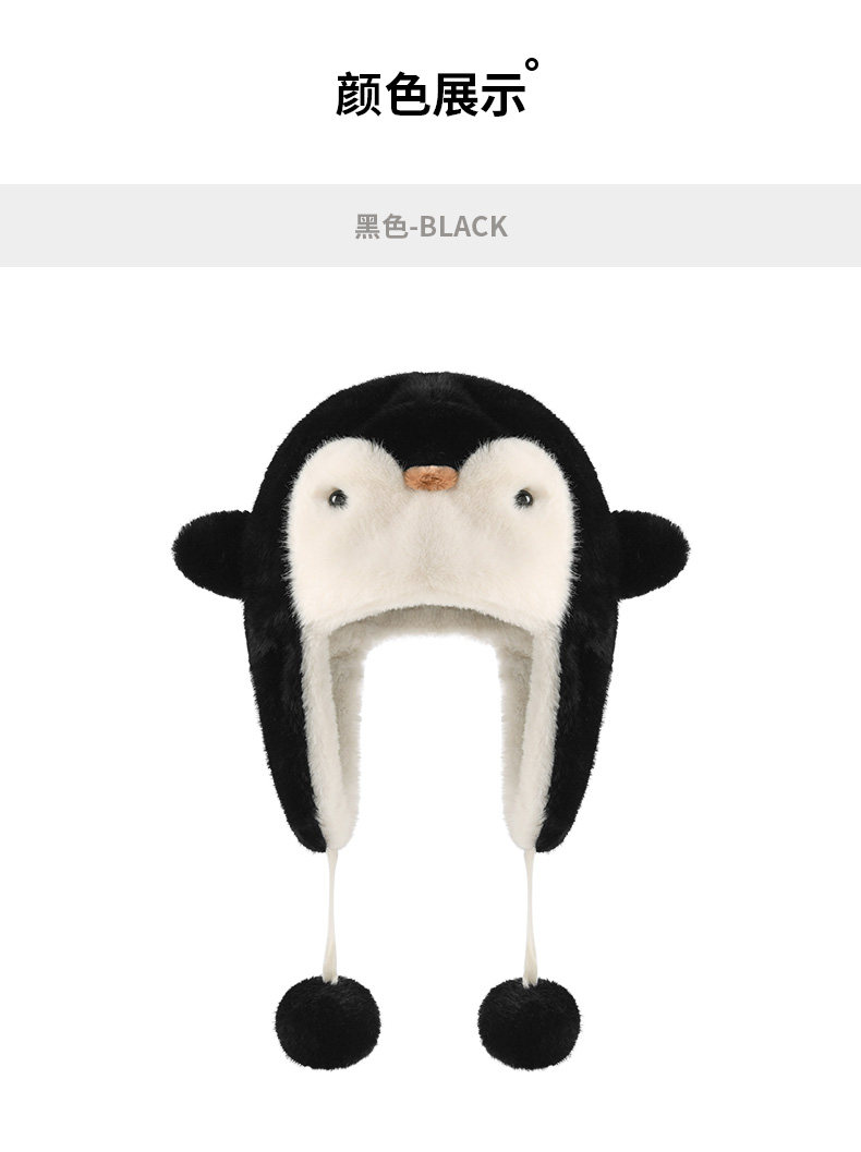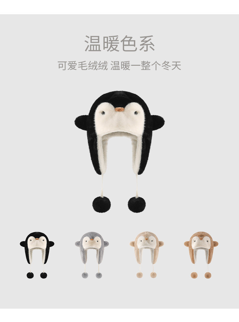 Coso Cute Penguin Kidsren's Plush Hat Autumn and Winter Warm Boys and Girls Cold-Proof Baby Ear Protection Lei Feng Hat