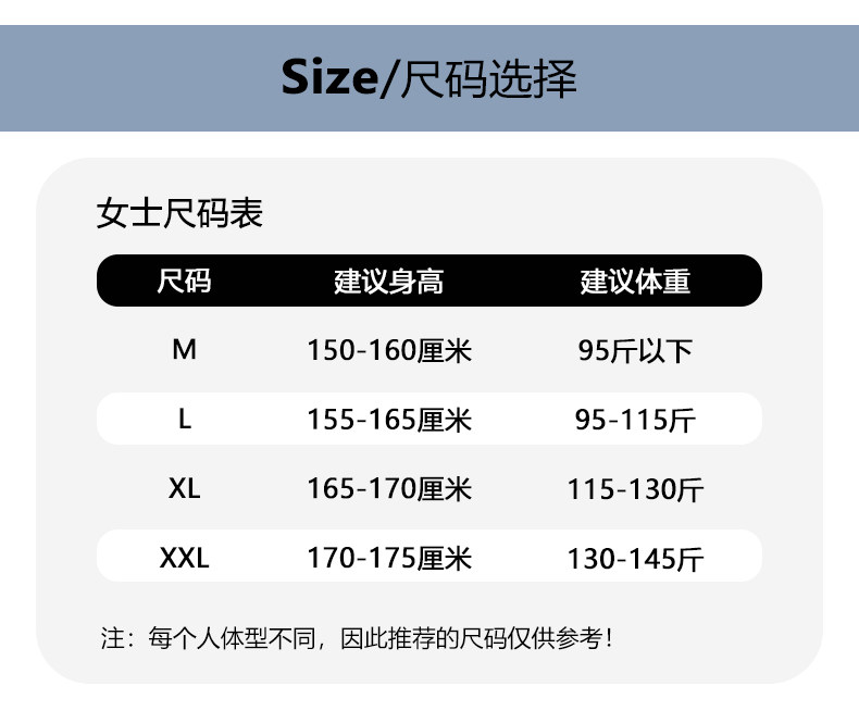 China (cm) 160-165/84-86 165-170 / 88-90 167-172 / 92-96 168-173 / 98-102 170-176 / 106-110