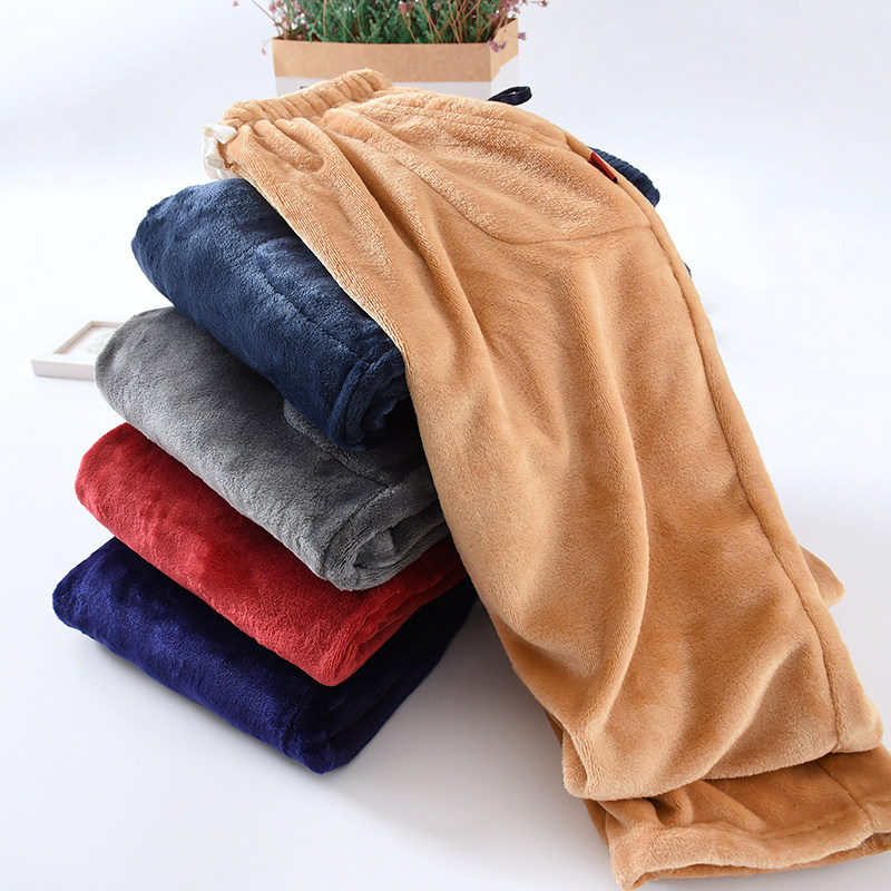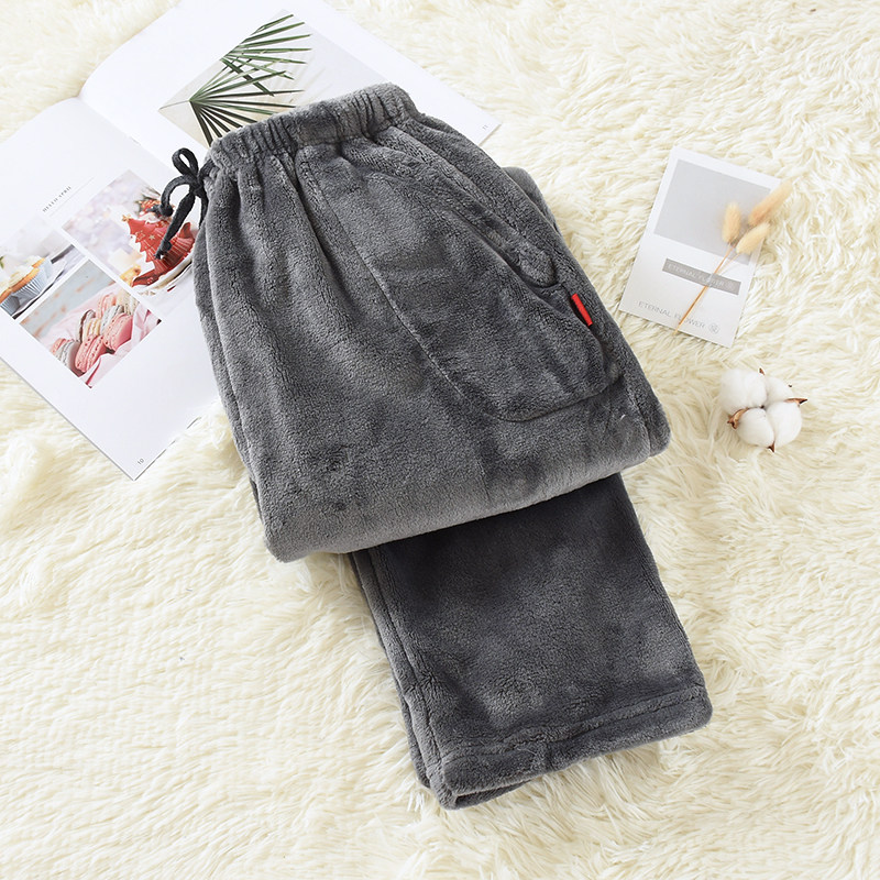 Coral Velvet Pajamas for Men in Autumn and Winter Fleece-Lined and Thickeneded to Heattech and Casual Loose Large Size Men's Winter Flannel Home Pants