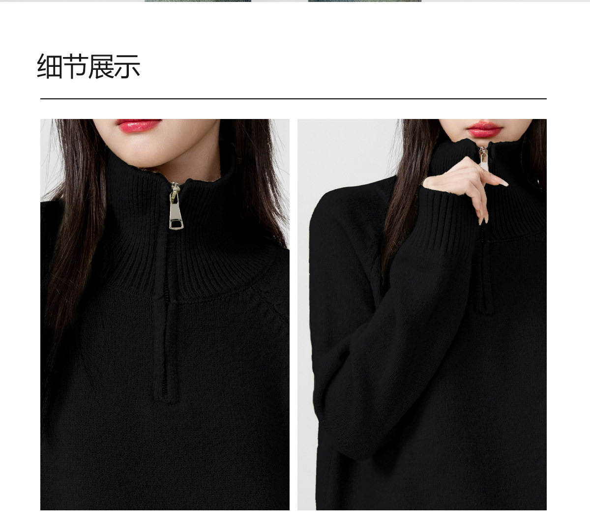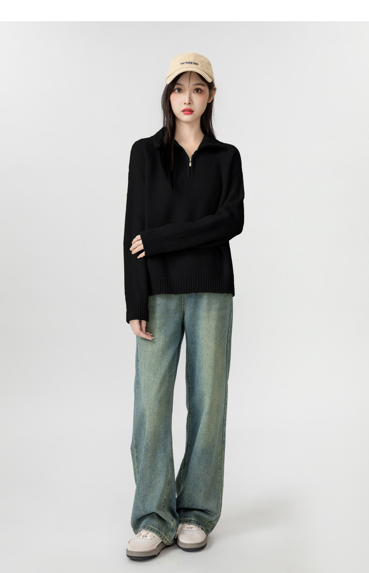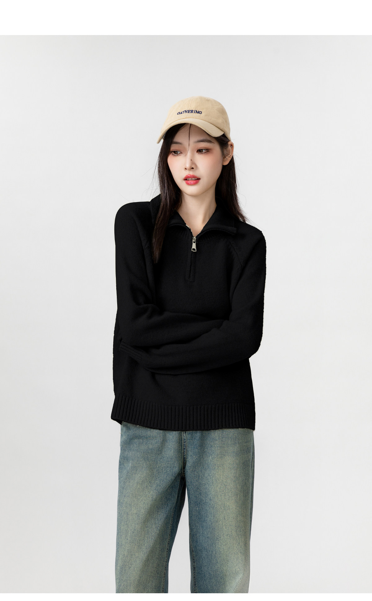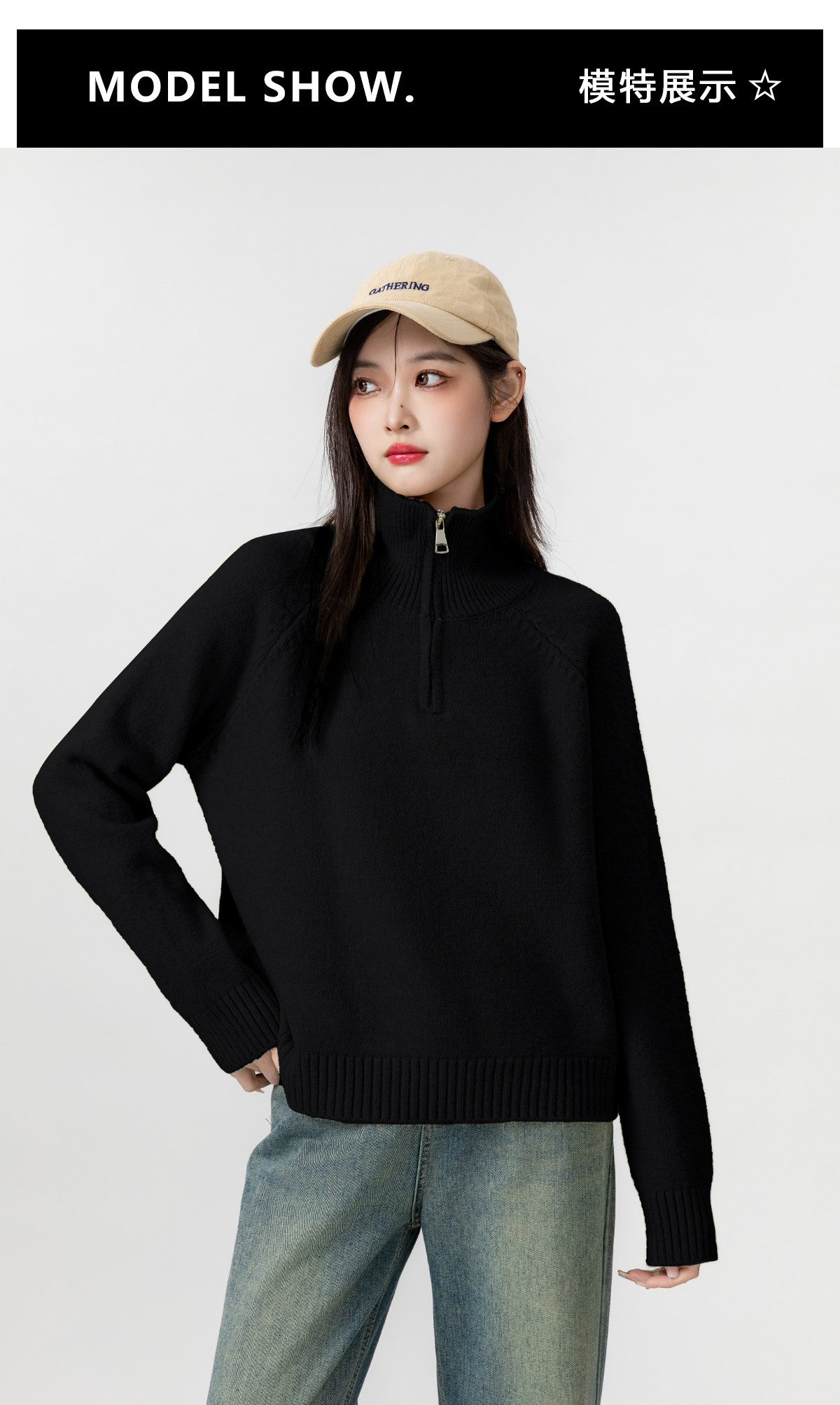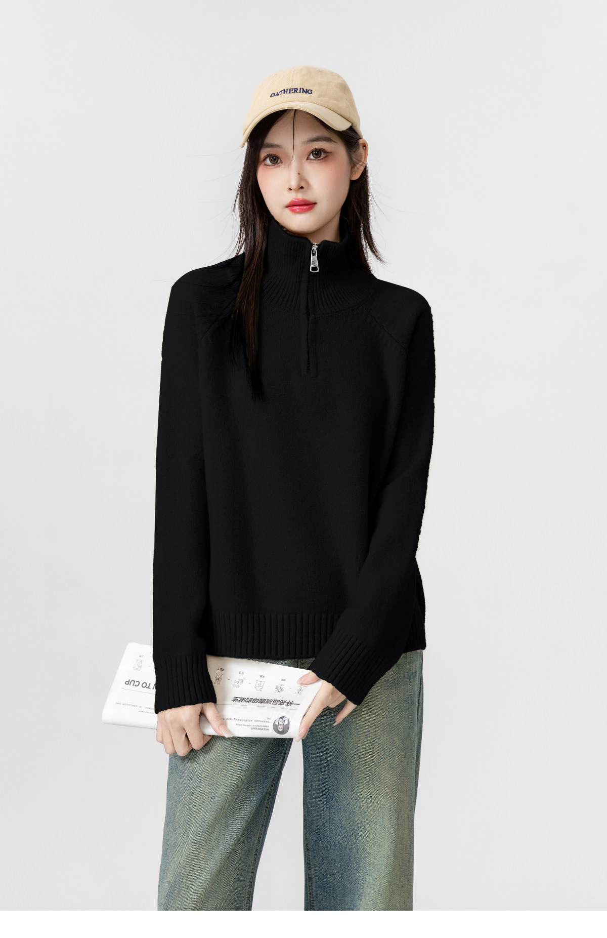 Black Half-Zip Turtleneck Sweater for Women 2024 Autumn and Winter New Design Loose Thickened Knitwear Outerwear