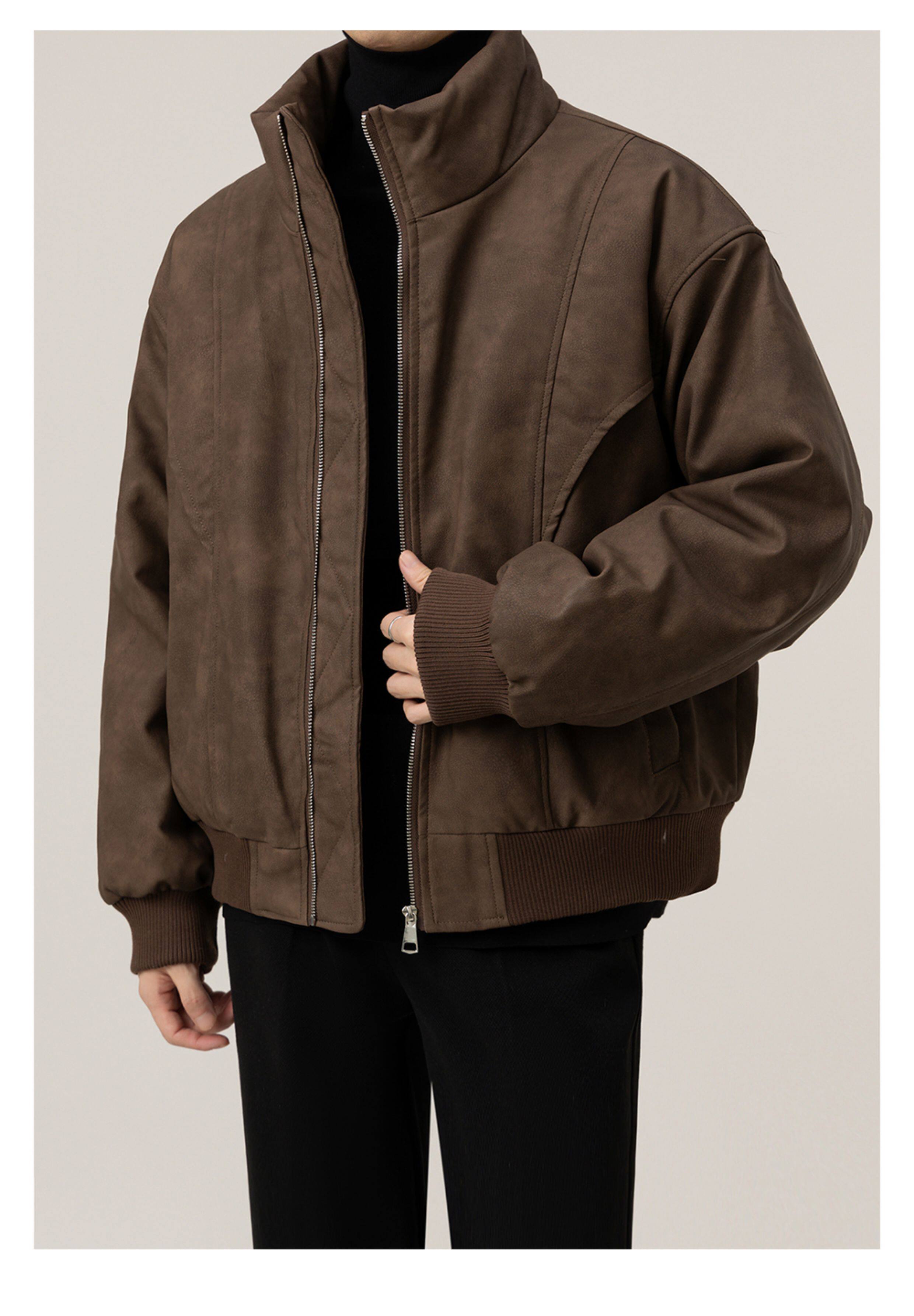 Korean style stand collar 2024 new winter thickened imitation leather down jacket for boys casual loose warm jacket trendy