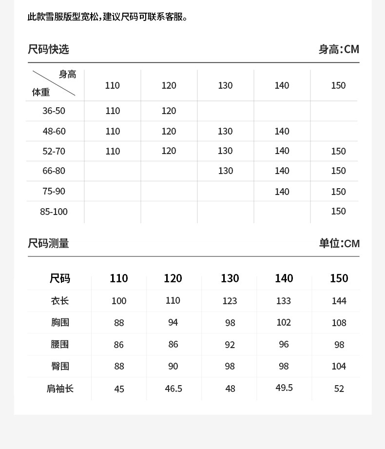 Size 110,120,130,140,150