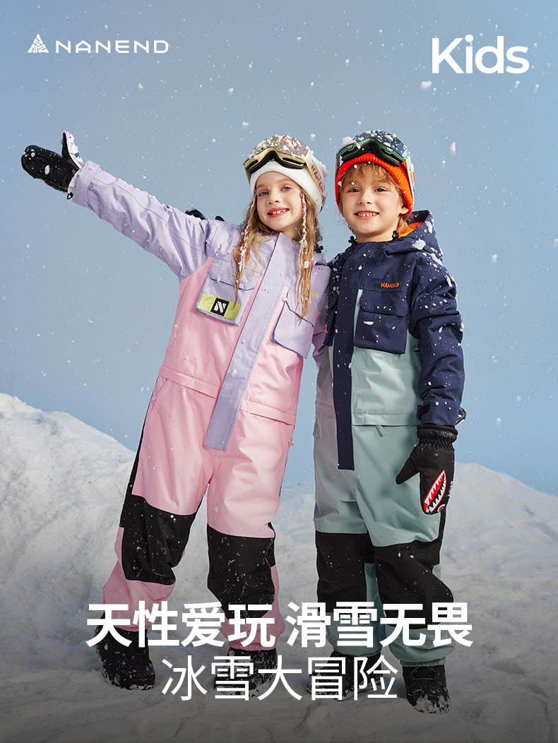Nanend Nanen New Children's Ski Suit Set for Boys and Girls, Thickened, Warm, Waterproof One-Piece Ski Suit