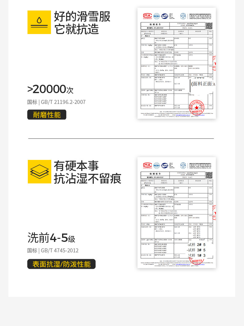 Waterproof Surface Moisture Resistance: ≥4-5 Levels before Washing, ≥3-4 Levels after Washing,Hydrostatic Pressure: before Washing - Fabric ≥ 50Kpa after Washing - Fabric ≥ 40Kpa