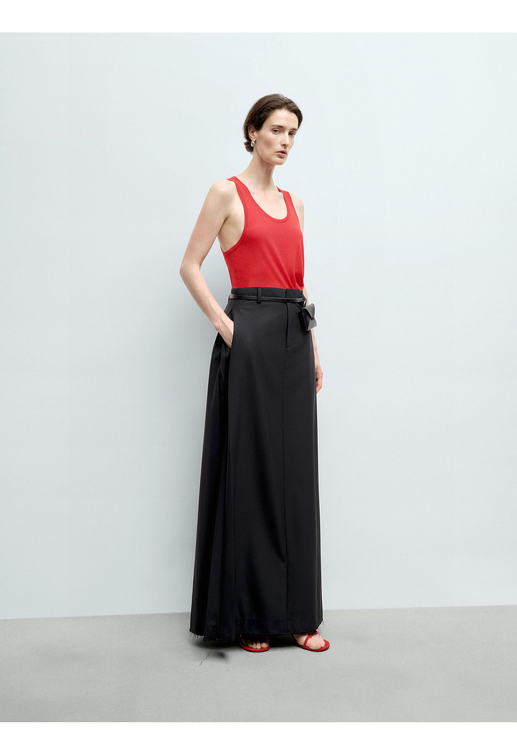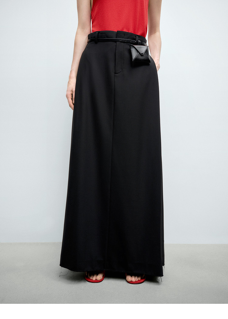 Edition Skirt for Women 2025 Spring New Long A-Line Frayed Wool Suit Skirt Ebe1Skt037