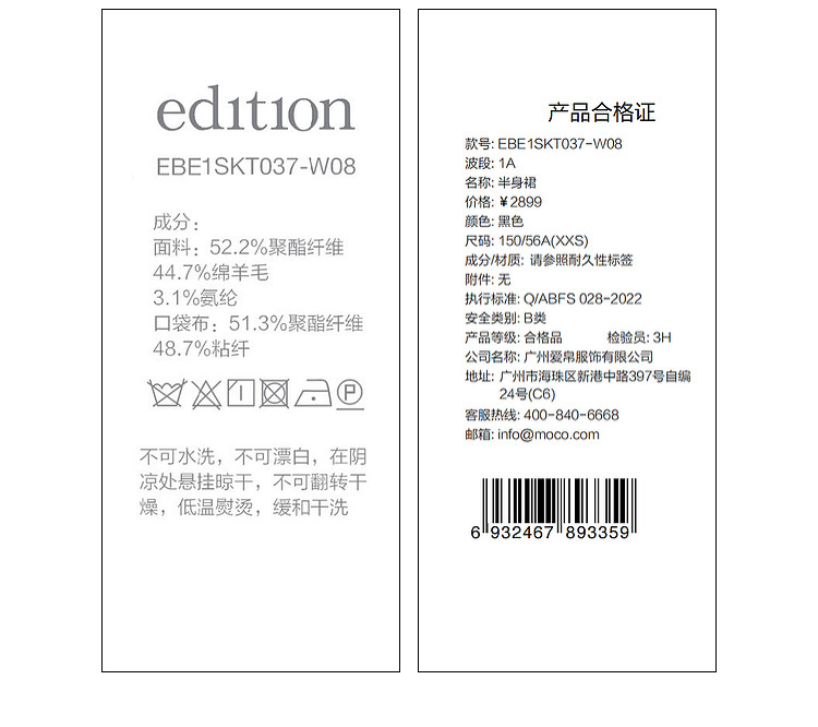 Material Composition Polyester 52.2% Sheep Wool 44.7% Polyurethane Elastic Fiber (Spandex) 3.1%