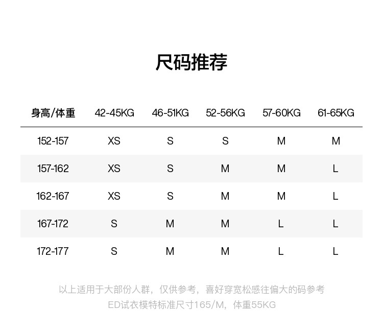 China (cm) 160-165/84-86 165-170 / 88-90 167-172 / 92-96 168-173 / 98-102 170-176 / 106-110