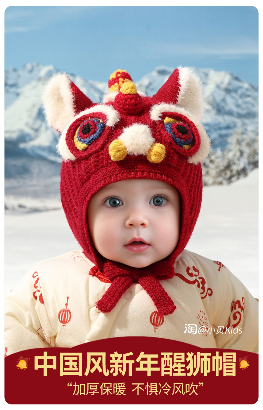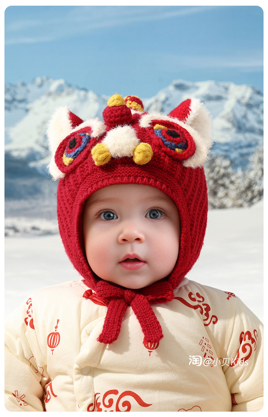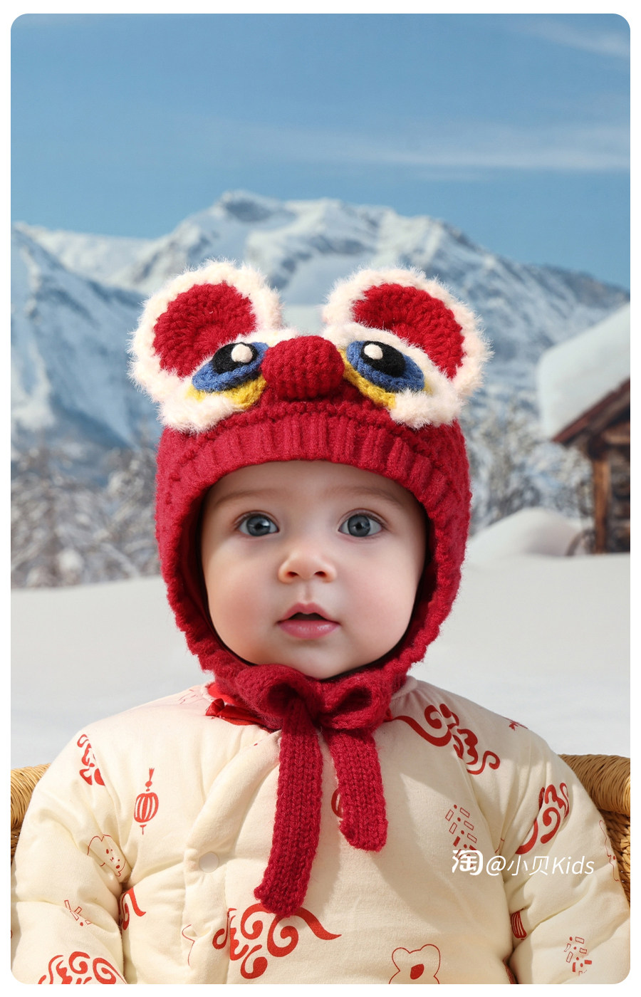 New Year's red baby hat baby autumn and winter national trend boys faucet hat girls woolen hat children's ear protection hat