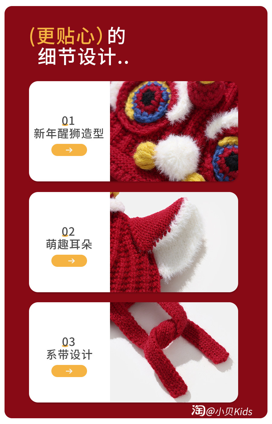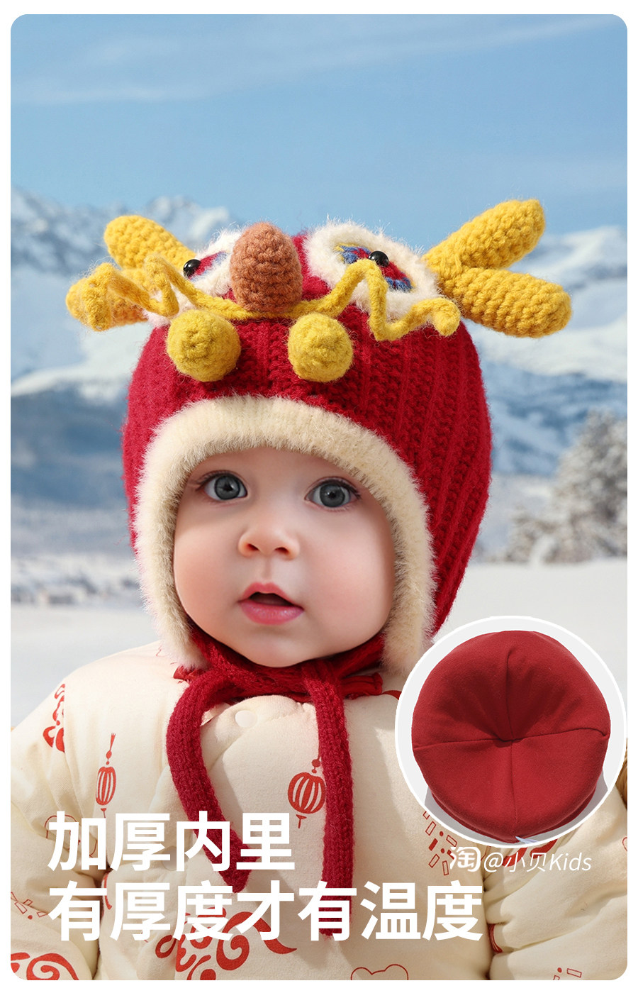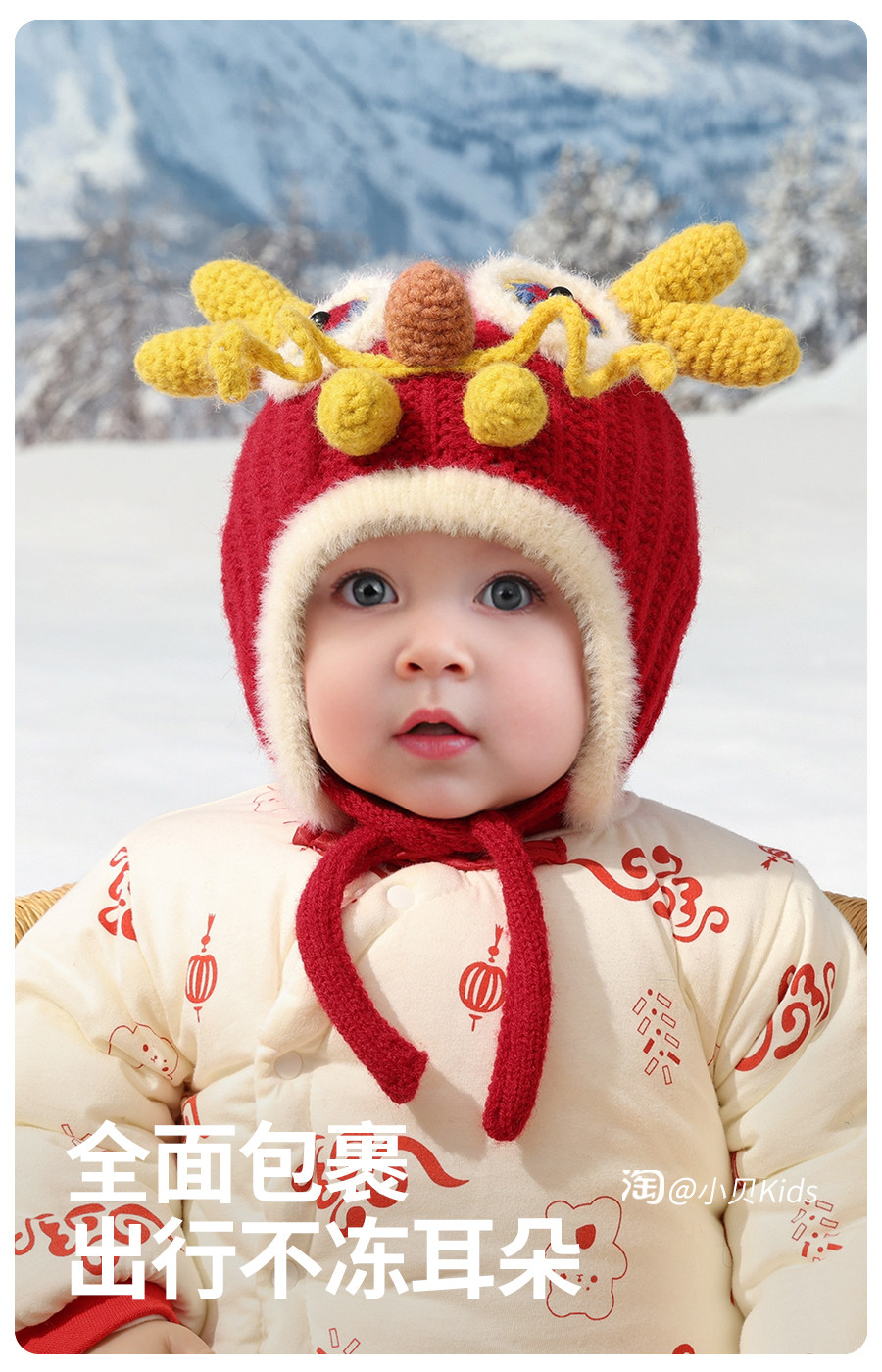 New Year's red baby hat baby autumn and winter national trend boys faucet hat girls woolen hat children's ear protection hat
