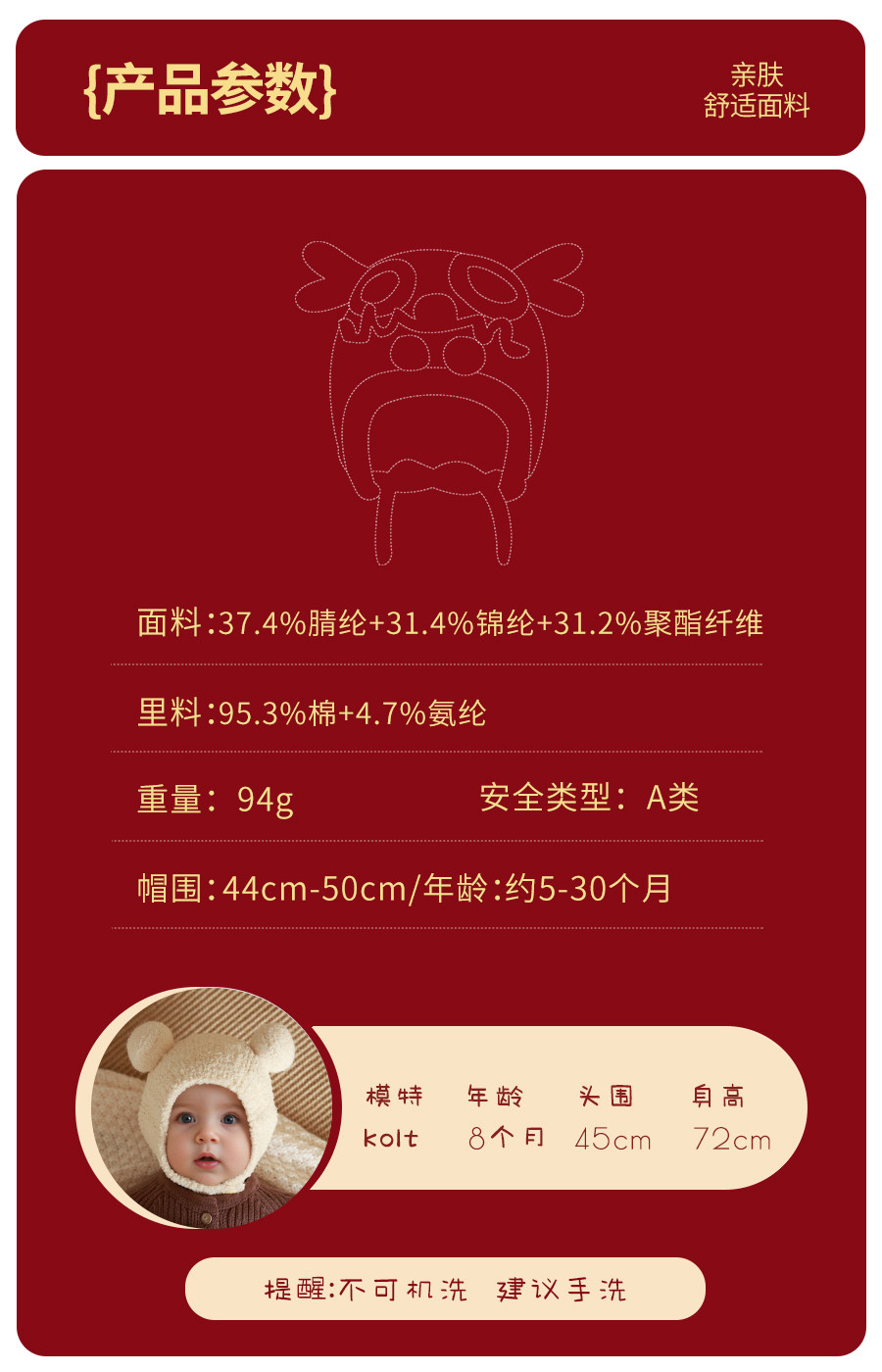 Hat Circle Size 50, recommended head circumference 44-50cm, about 5-30 months