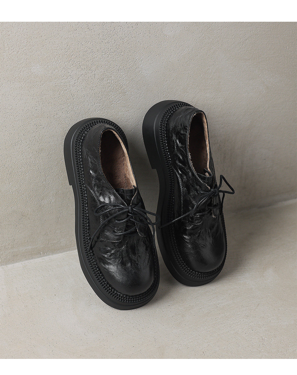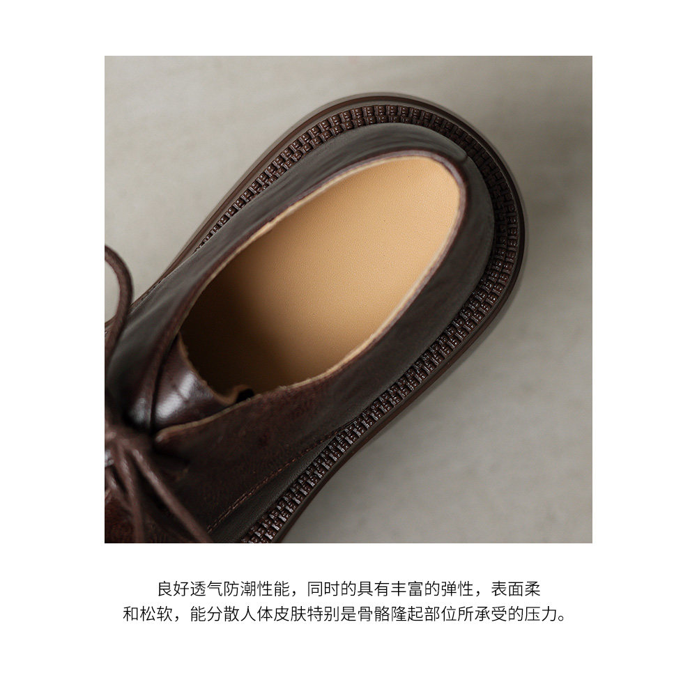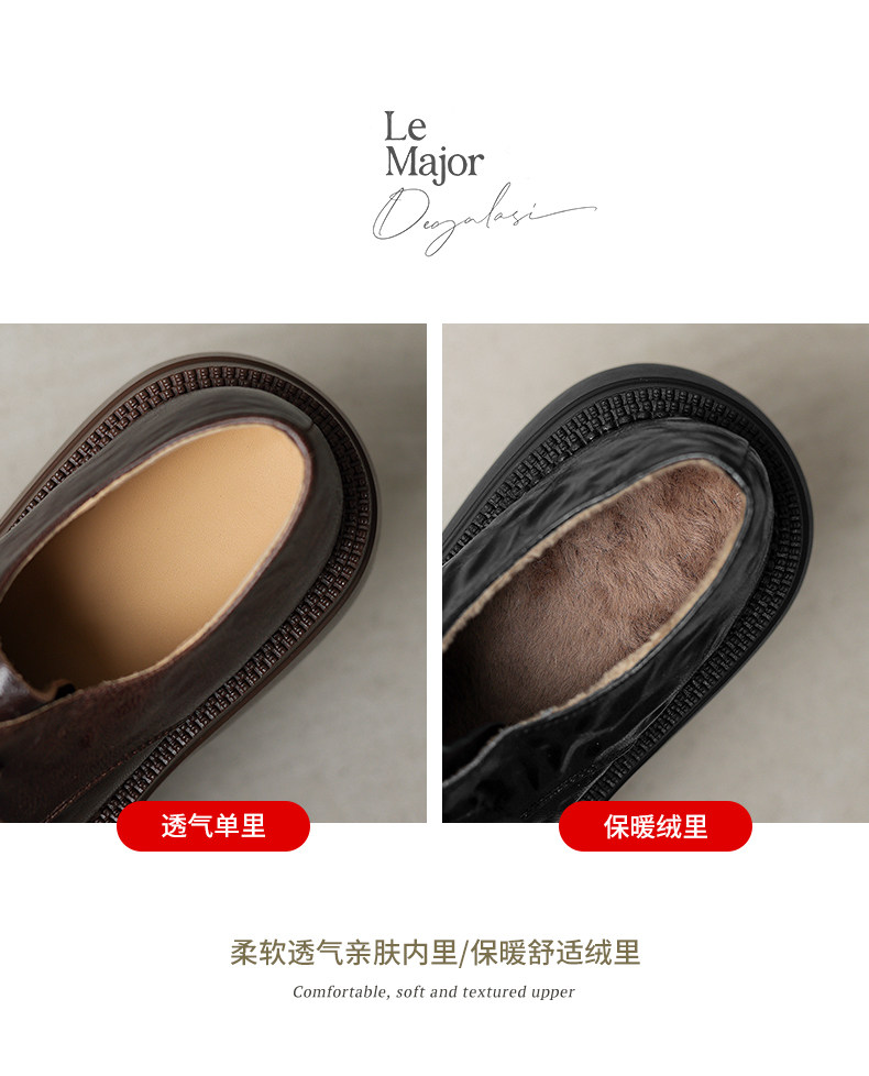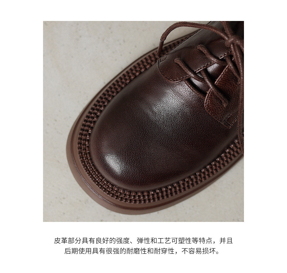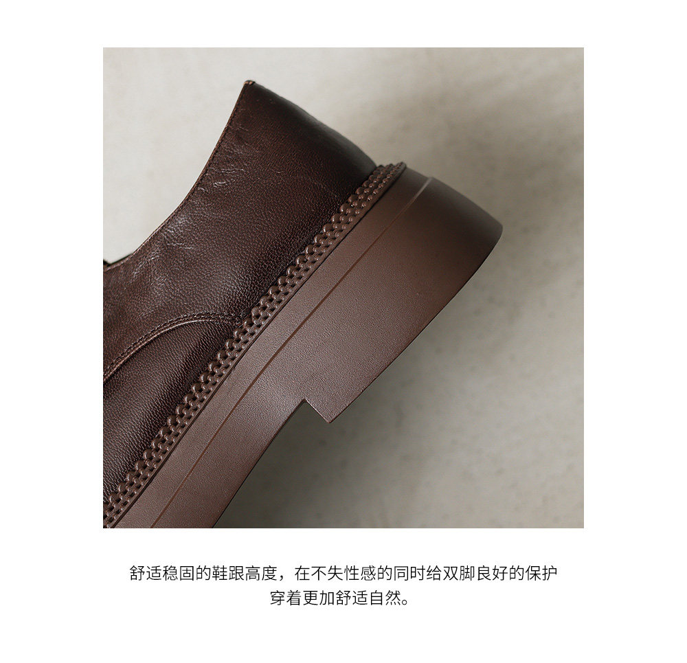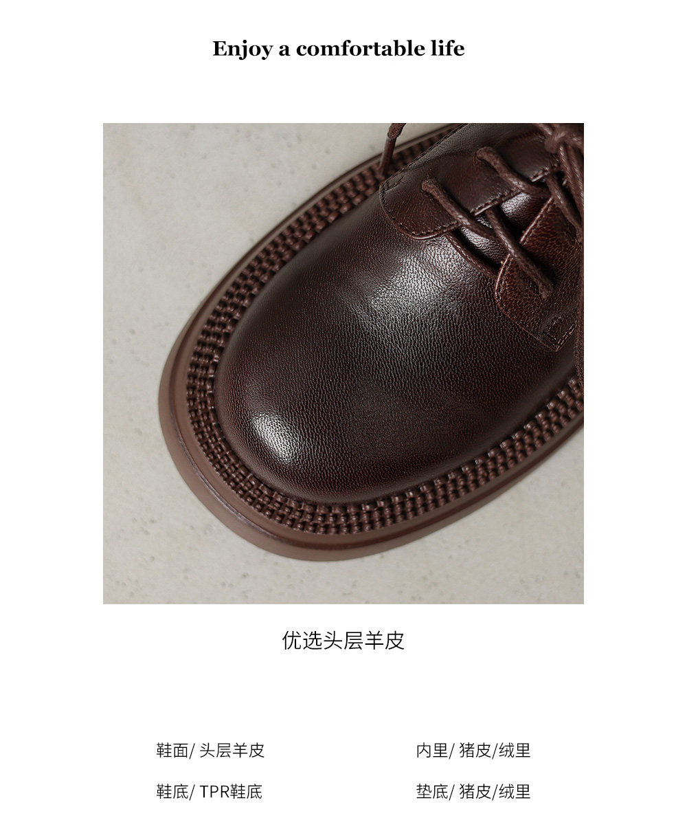 Morihejiao lambskin thick-soled plus velvet deep-mouth loafers for women 2025 autumn and winter new round-toe lace-up small leather shoes
