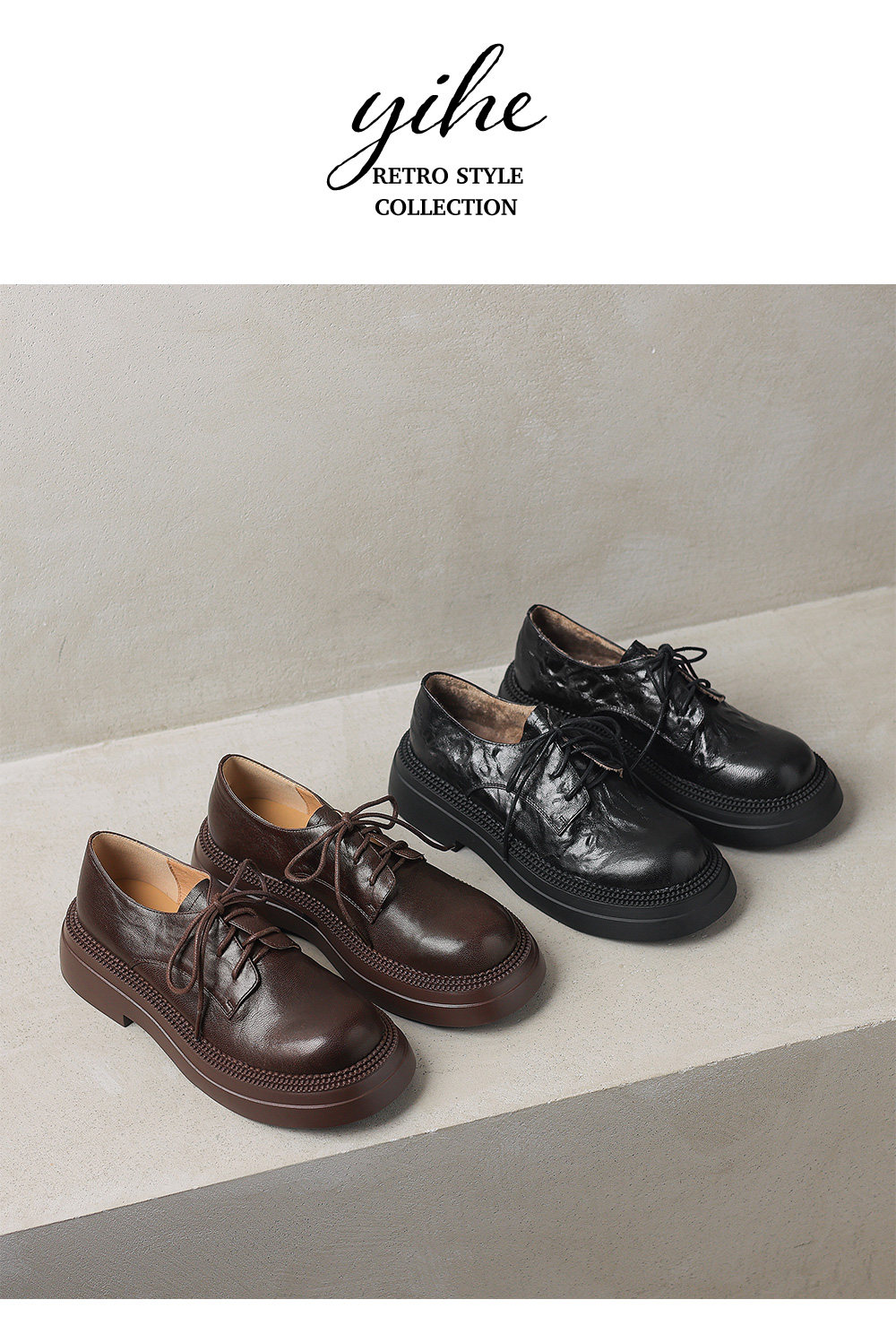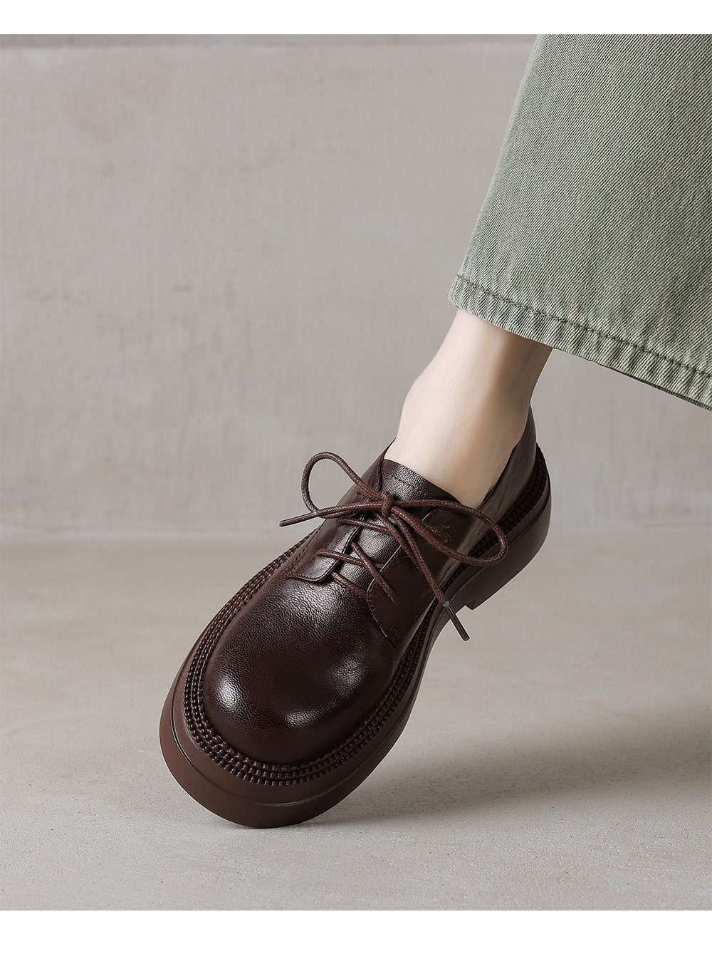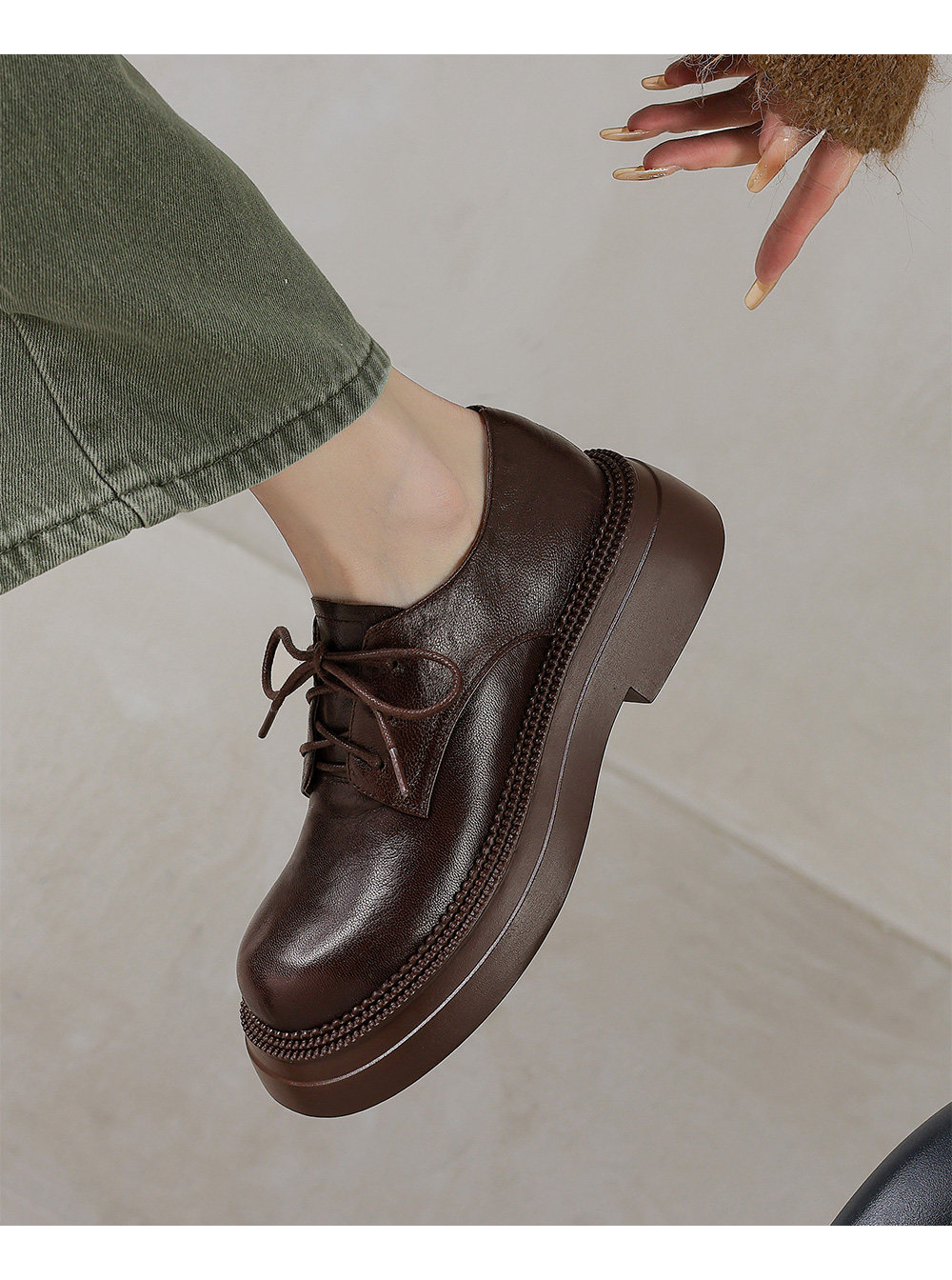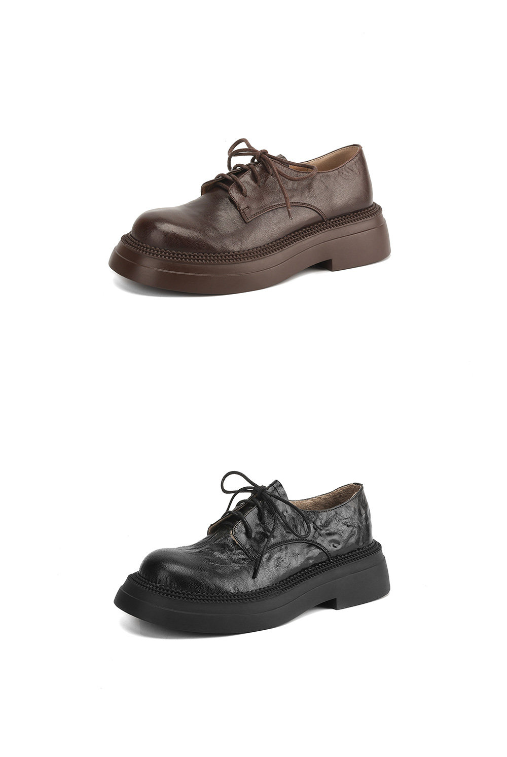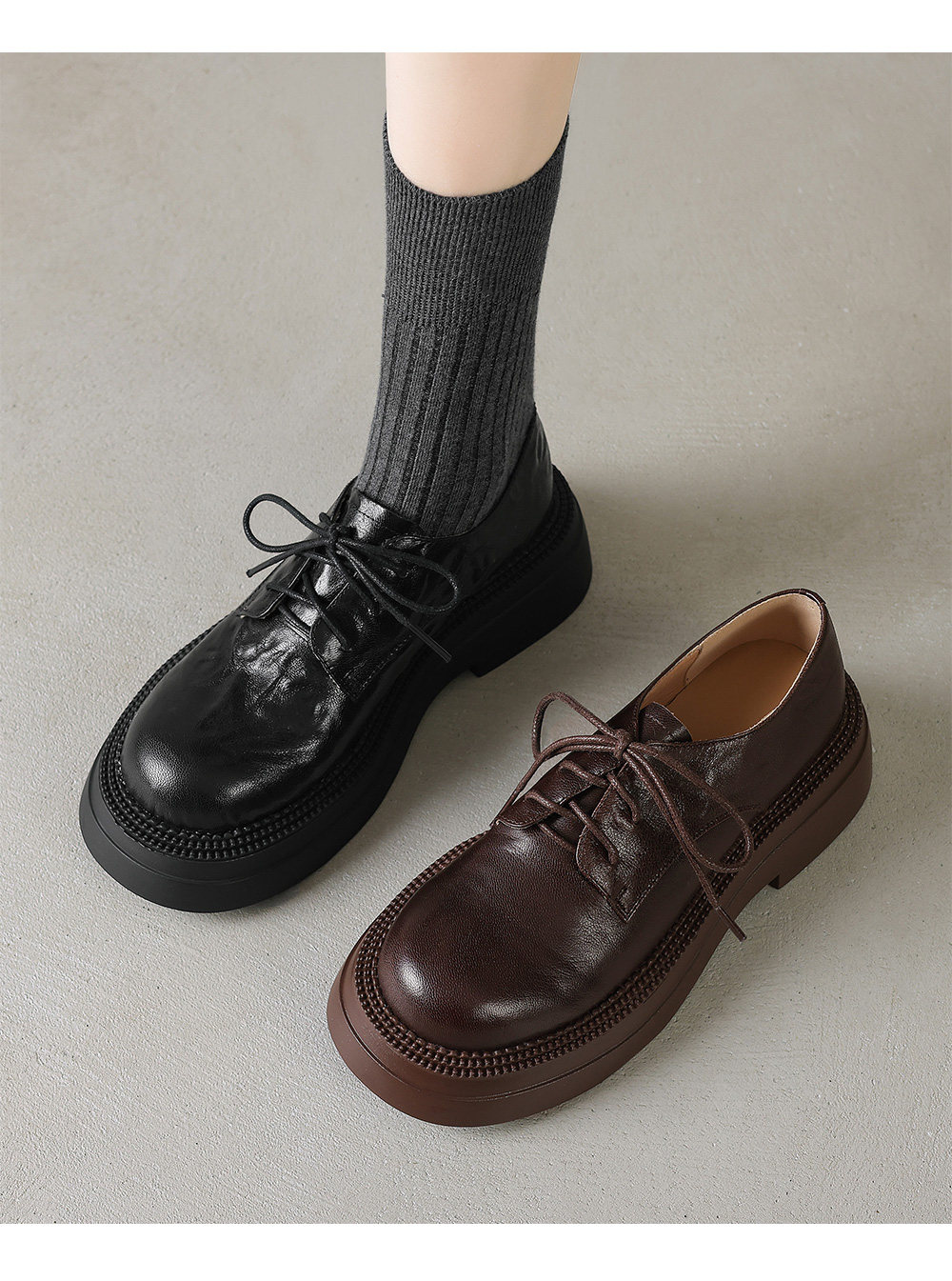 Morihejiao lambskin thick-soled plus velvet deep-mouth loafers for women 2025 autumn and winter new round-toe lace-up small leather shoes
