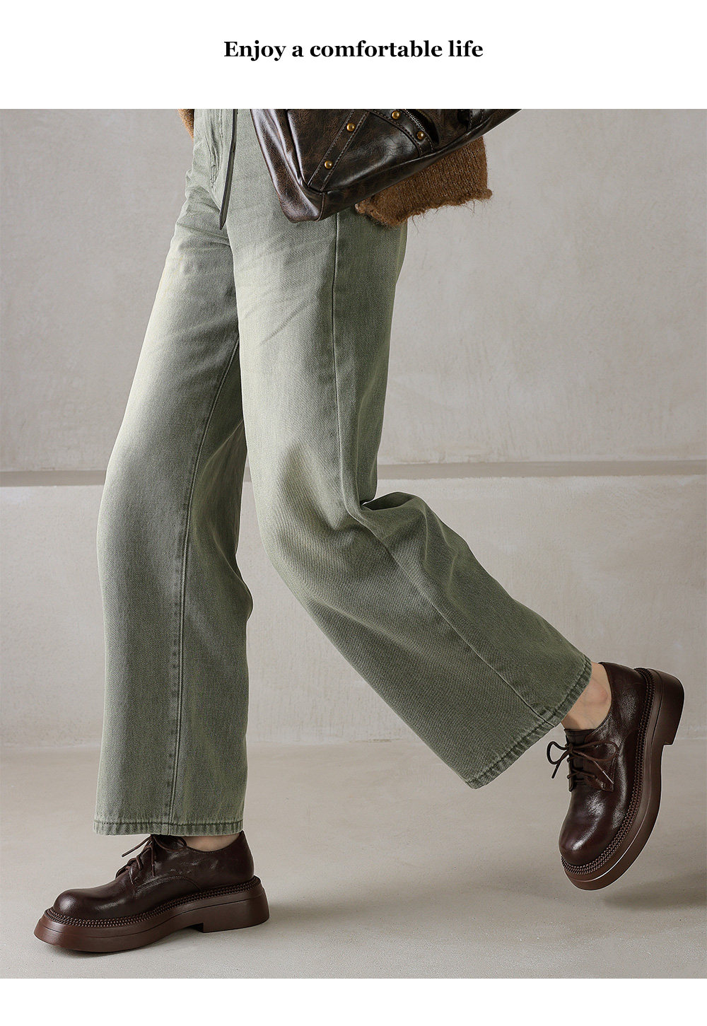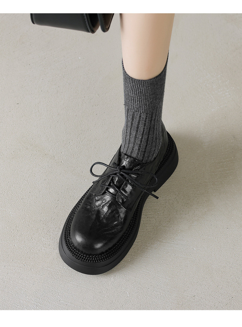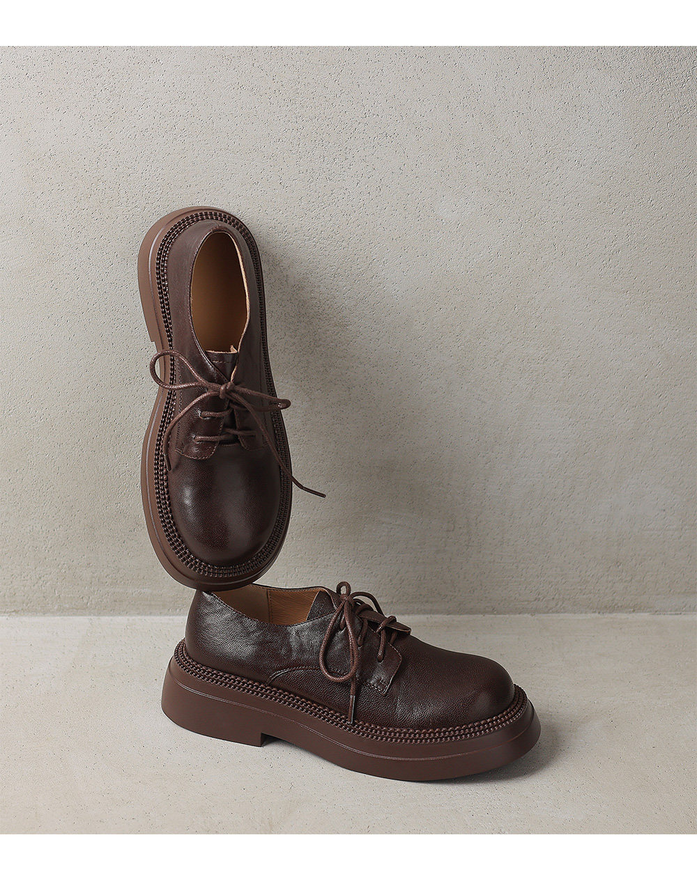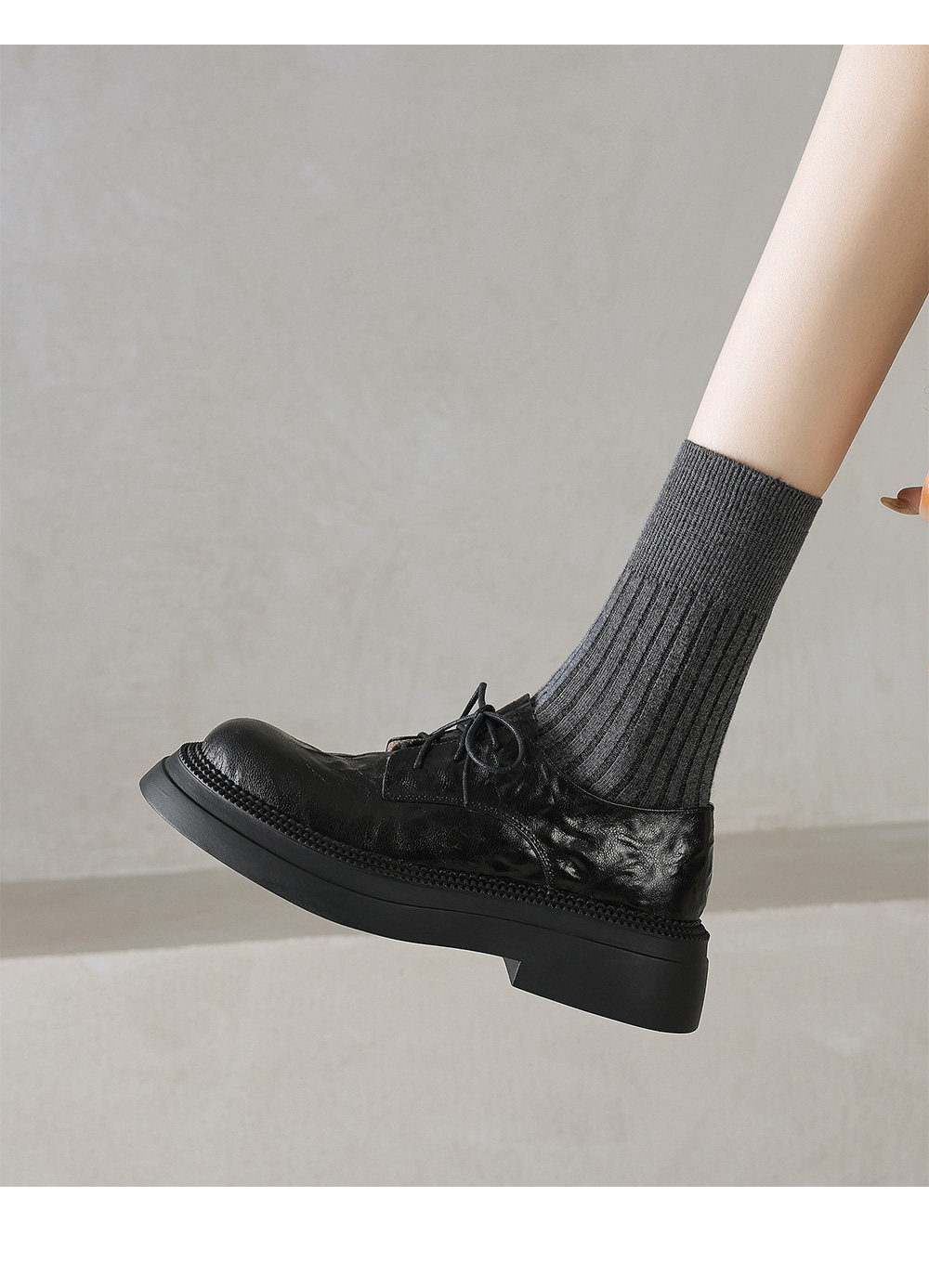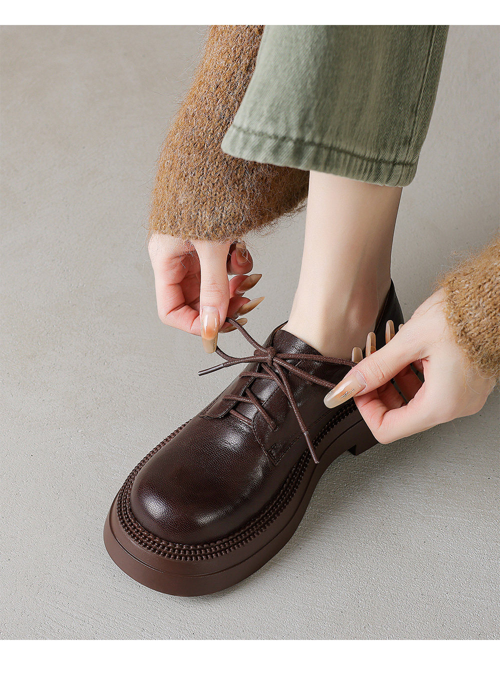 Morihejiao lambskin thick-soled plus velvet deep-mouth loafers for women 2025 autumn and winter new round-toe lace-up small leather shoes