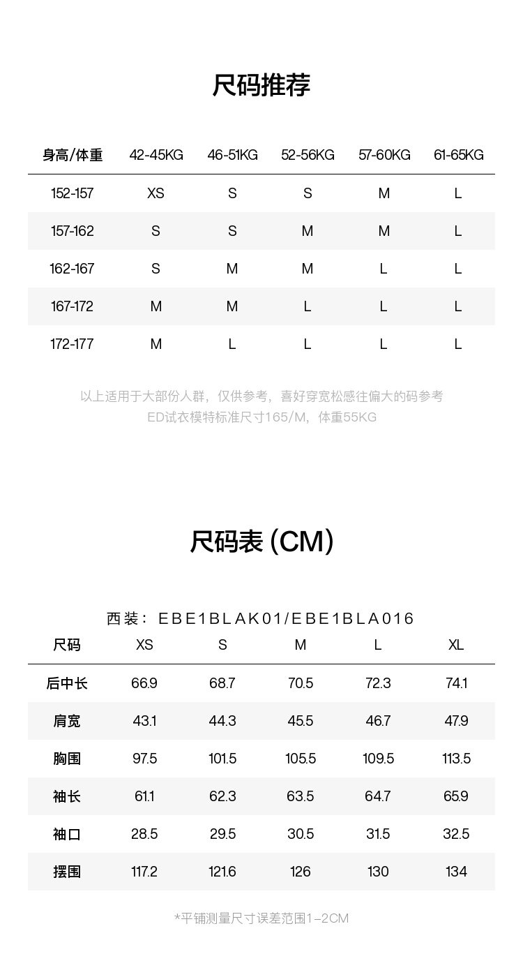 China (cm) 160-165/84-86 165-170 / 88-90 167-172 / 92-96 168-173 / 98-102 170-176 / 106-110