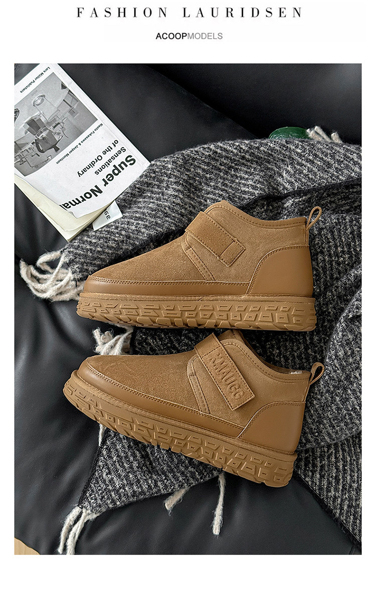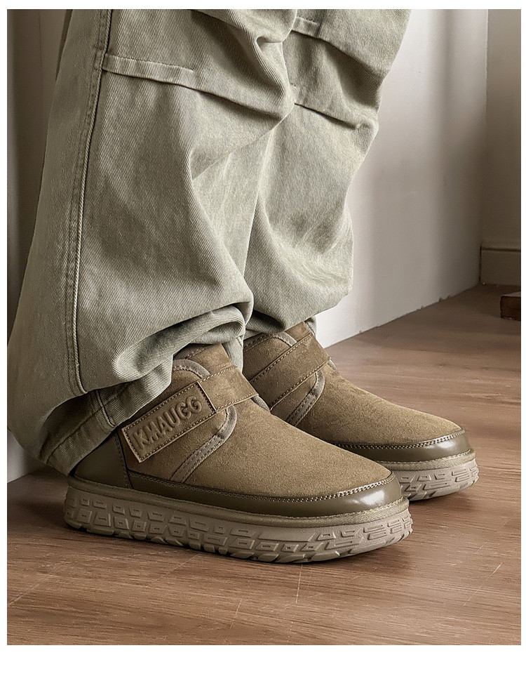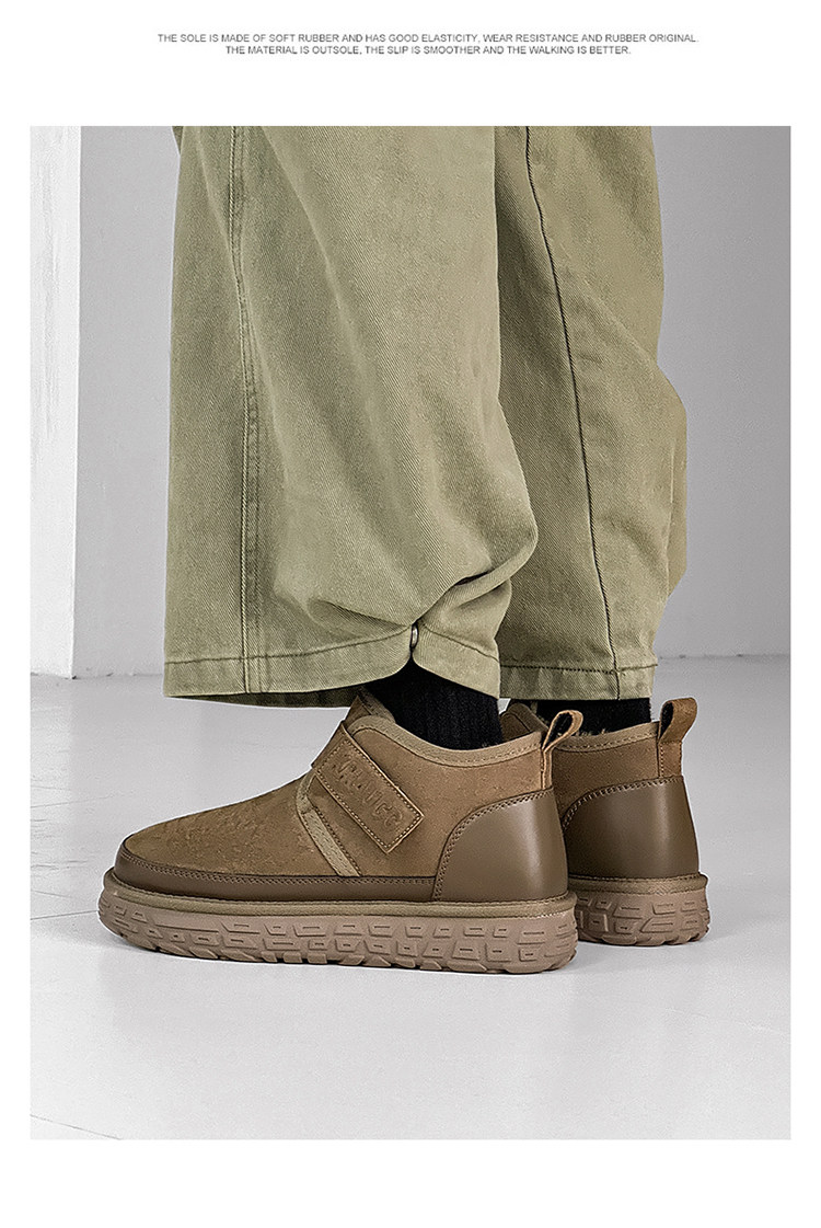 Men's Snow Boots, Northeast Cold-Resistant, Non-Slip Loafers, Genuine Leather Casual Cotton Boots, Winter Fleece-Lined, Thickened, Warm Large Cotton Shoes
