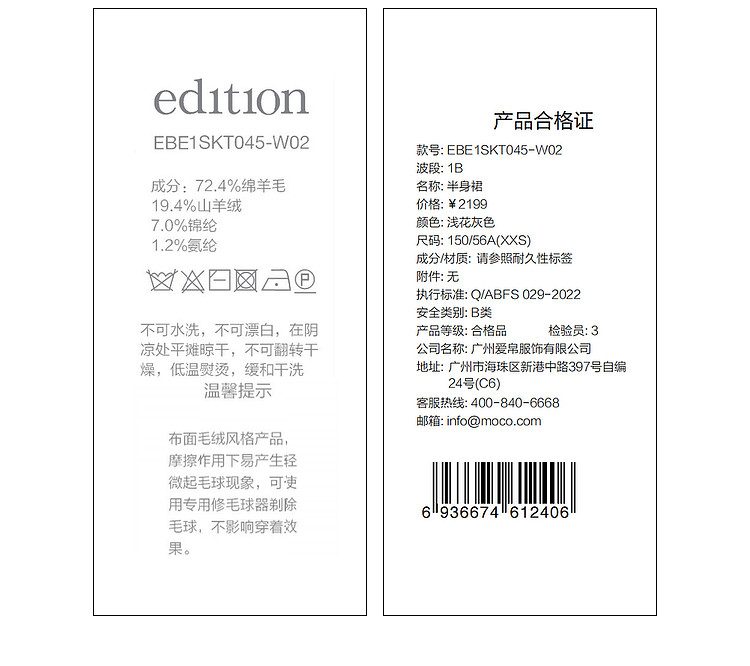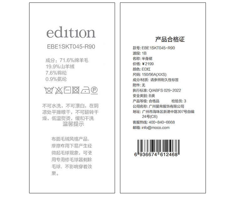 Material ingredients Sheep wool 71.6%, cashmere (cashmere) 19.9%, polyamide fiber (nylon) 7.6%, polyurethane elastic fiber (spandex) 0.9%
