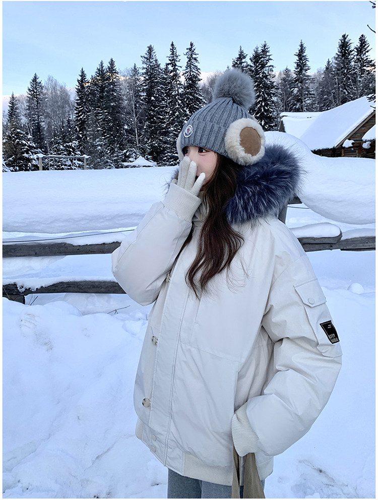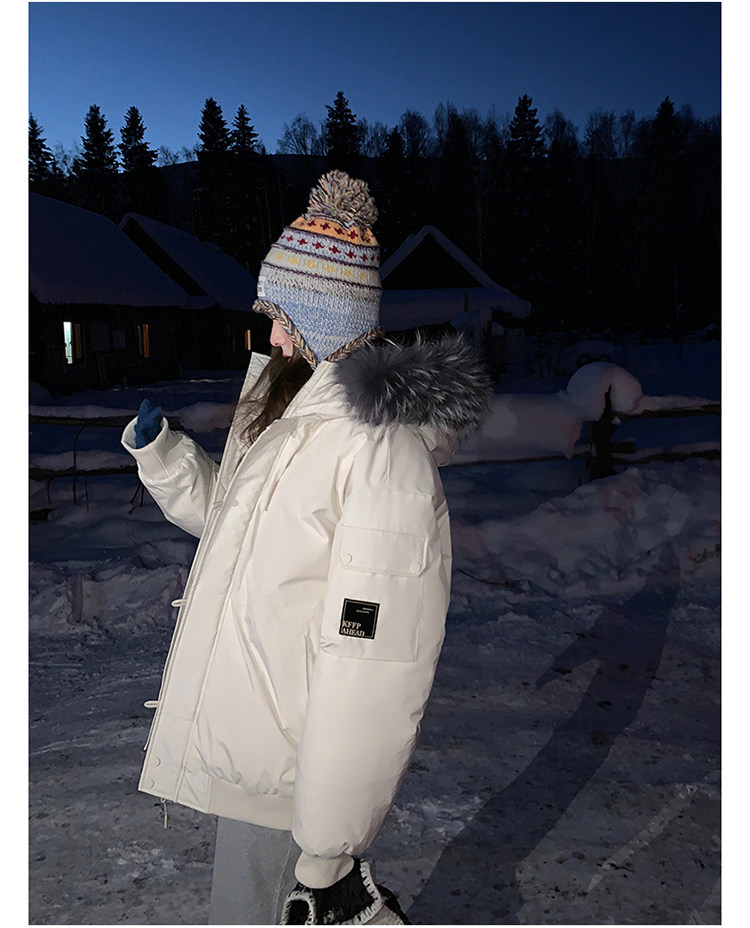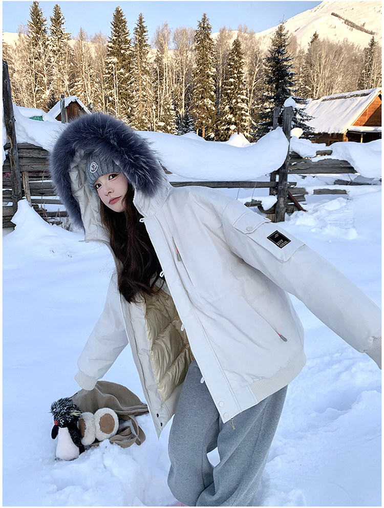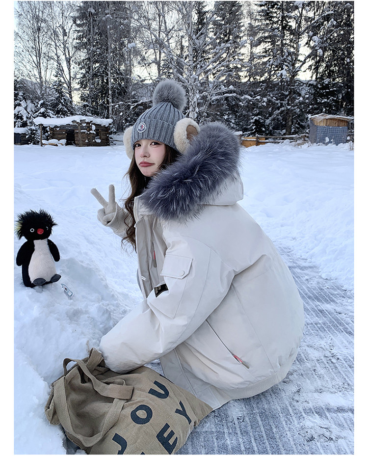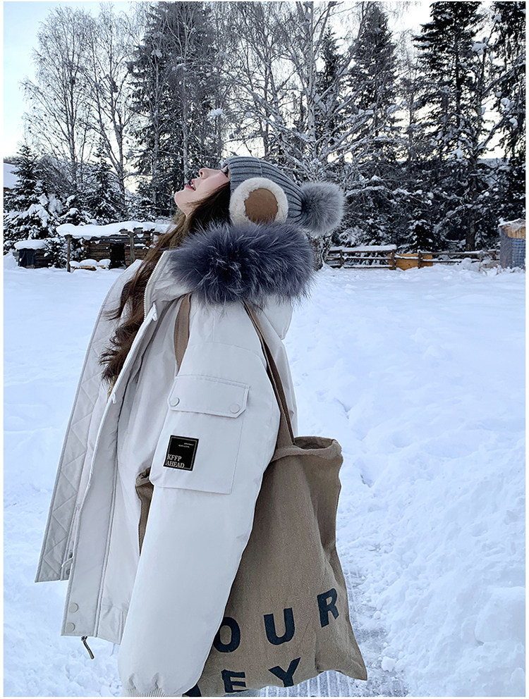Off-White Parka down Jacket for Women, Thickened with Large Fur Collar, 2025 Winter New Style, Hooded, Trendy Workwear, Outdoor Goose down Jacket