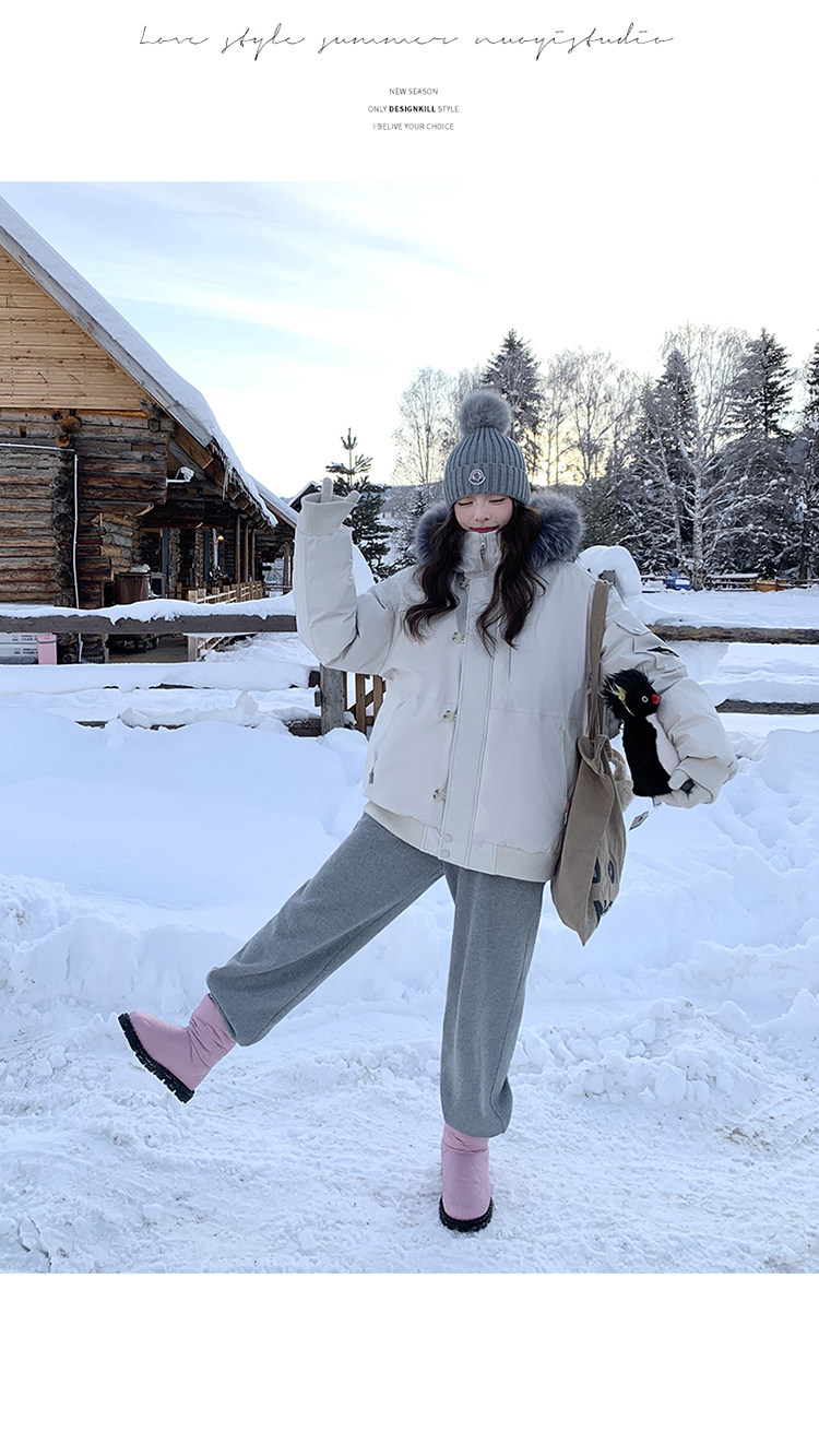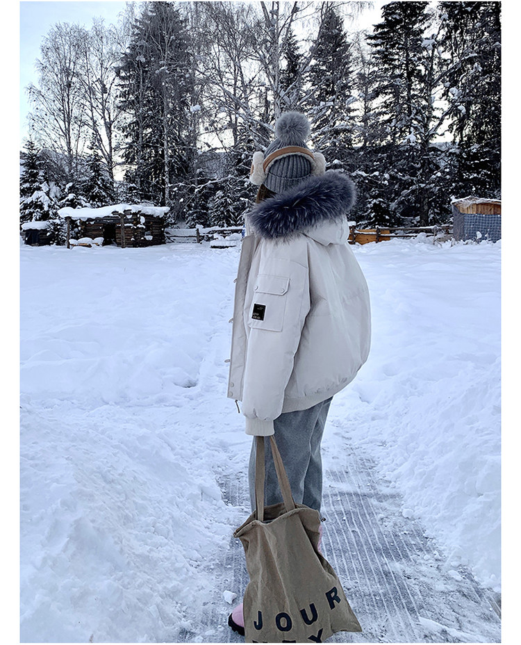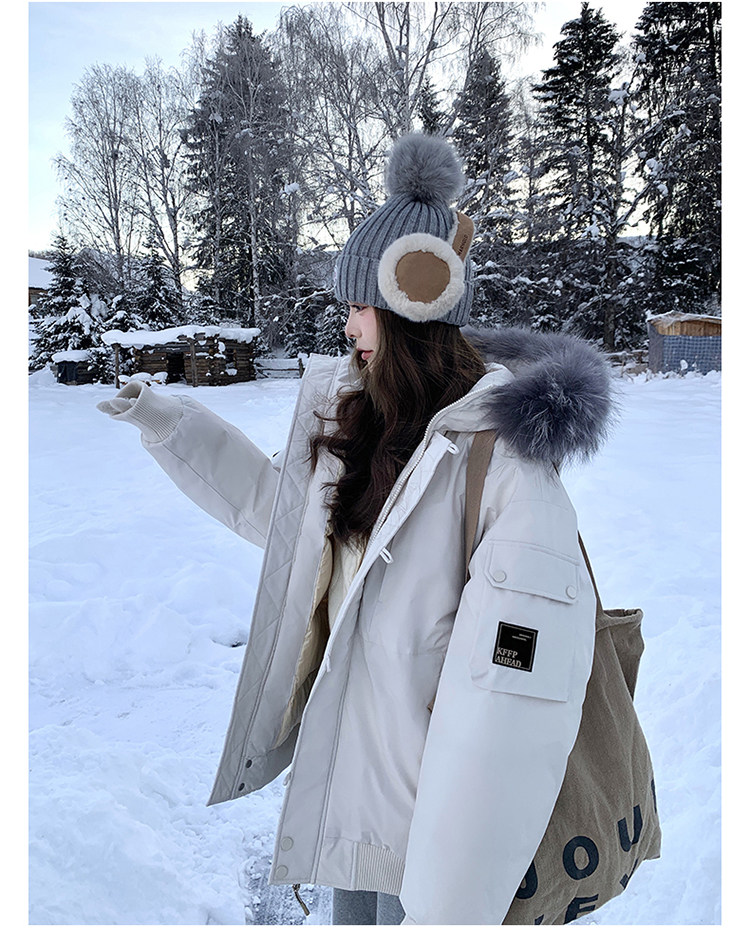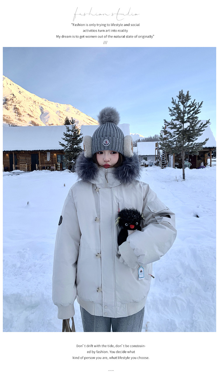 Off-White Parka down Jacket for Women, Thickened with Large Fur Collar, 2025 Winter New Style, Hooded, Trendy Workwear, Outdoor Goose down Jacket