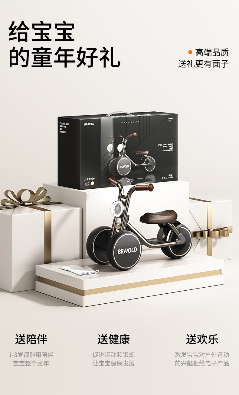 柏沃宝宝平衡车1岁儿童到3岁滑步滑行婴儿玩具满一周岁礼物学步车