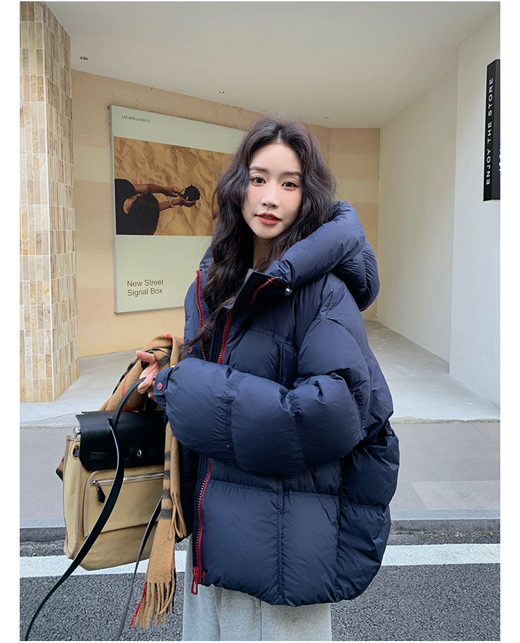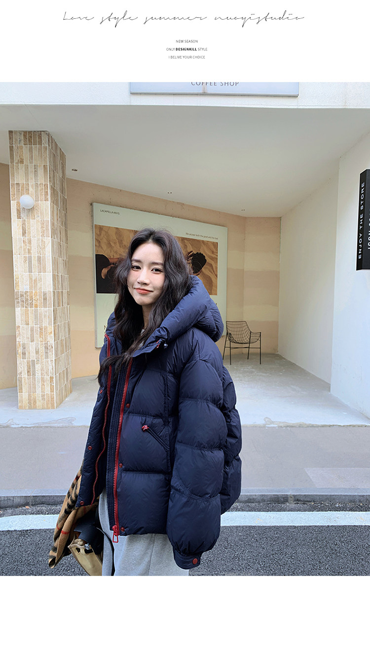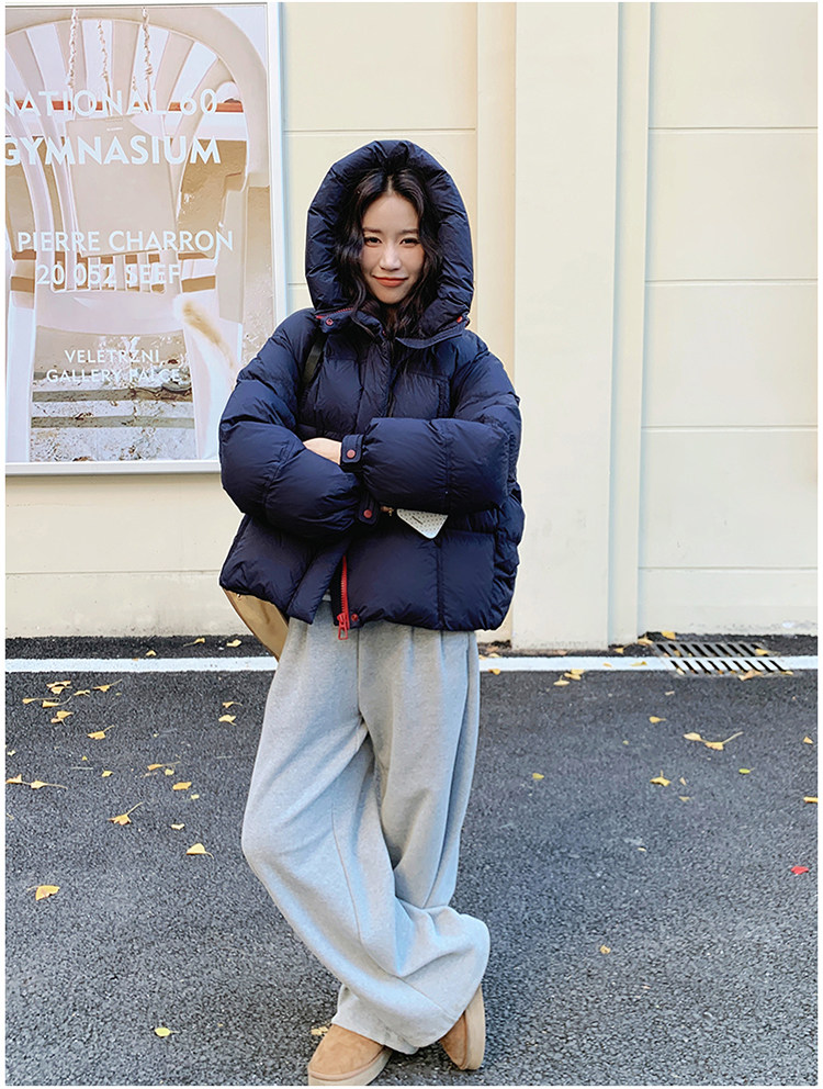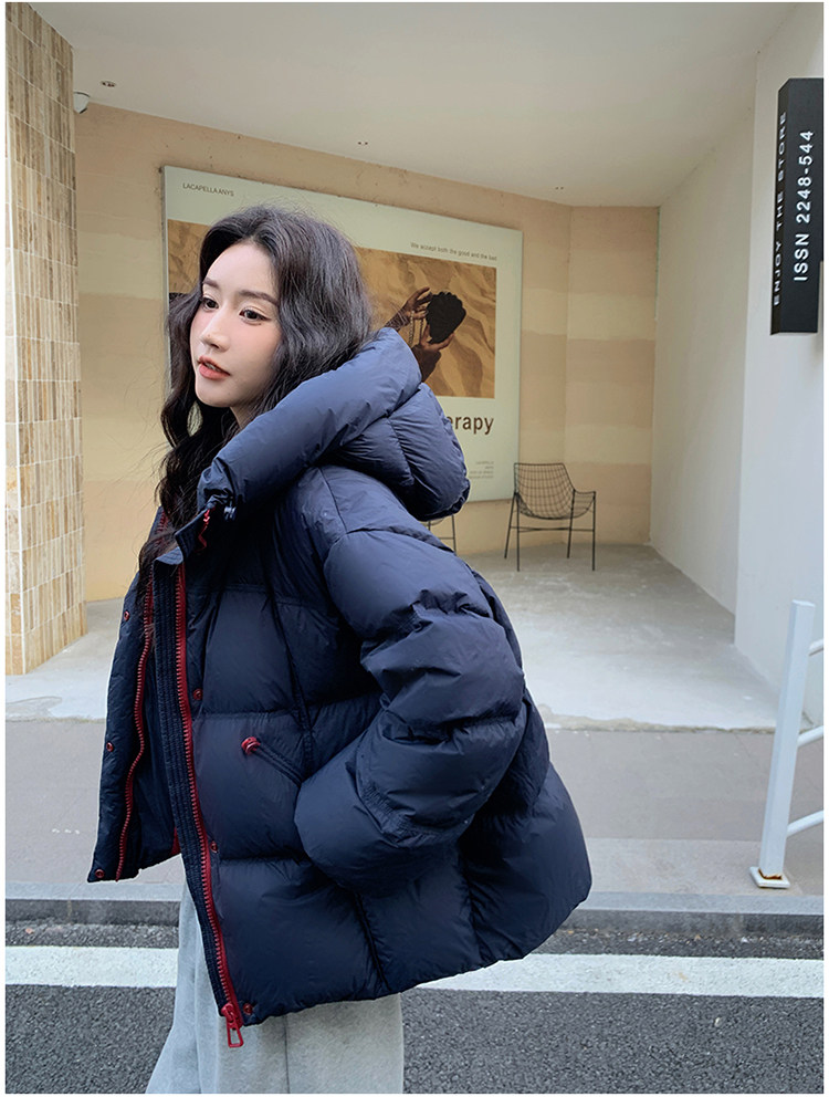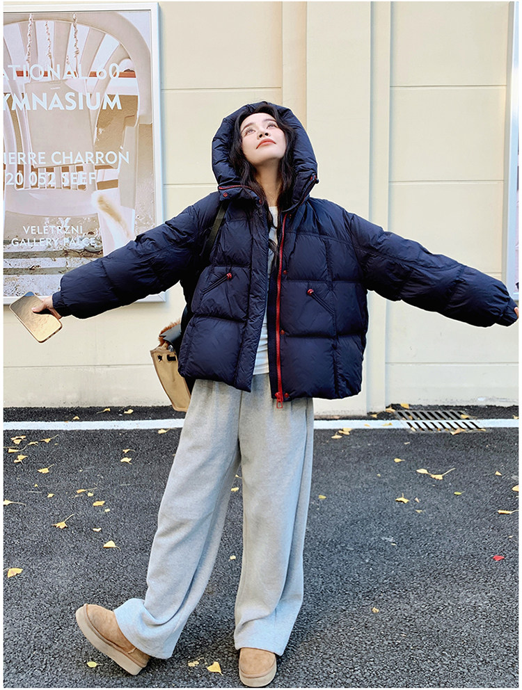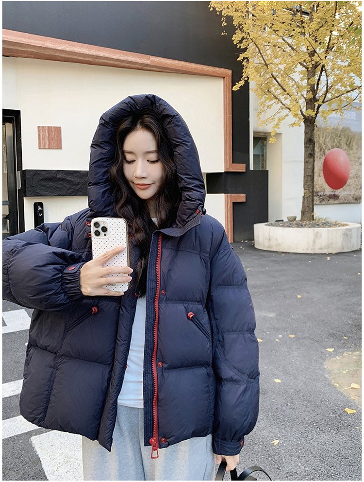 Navy Blue Short down Jacket for Women, 2025 Winter New Korean Style Casual Hooded 90% White Duck down Thickened Puffer Jacket
