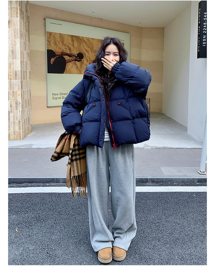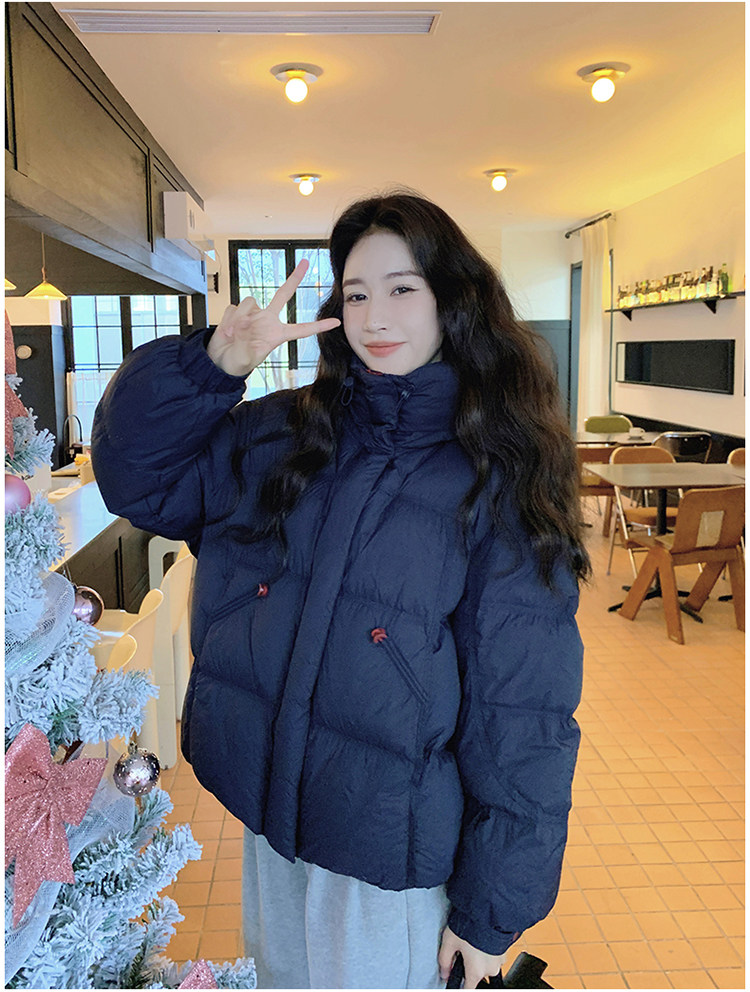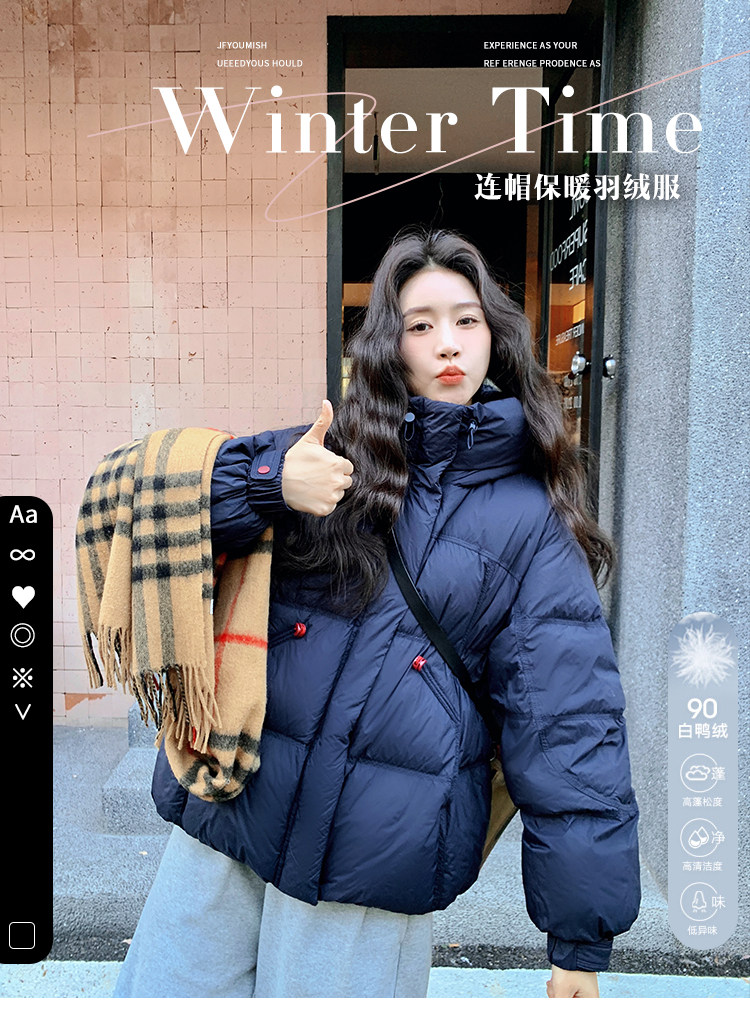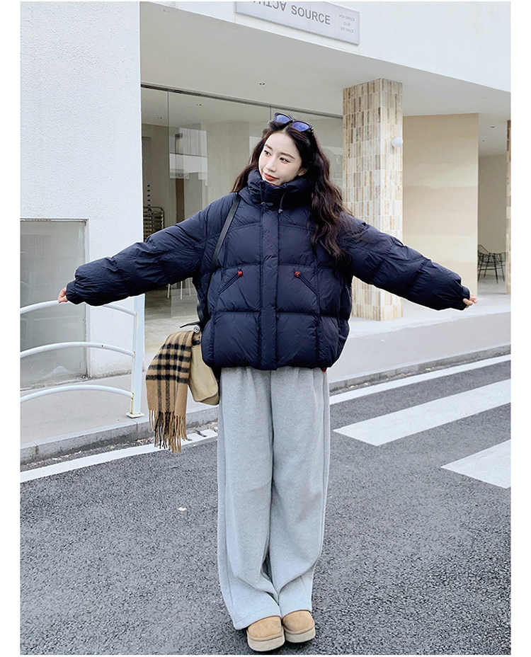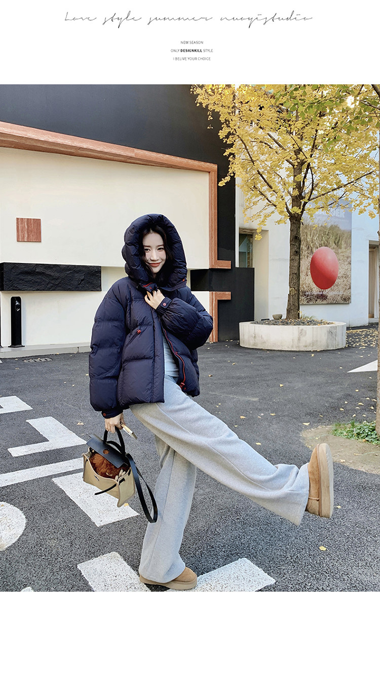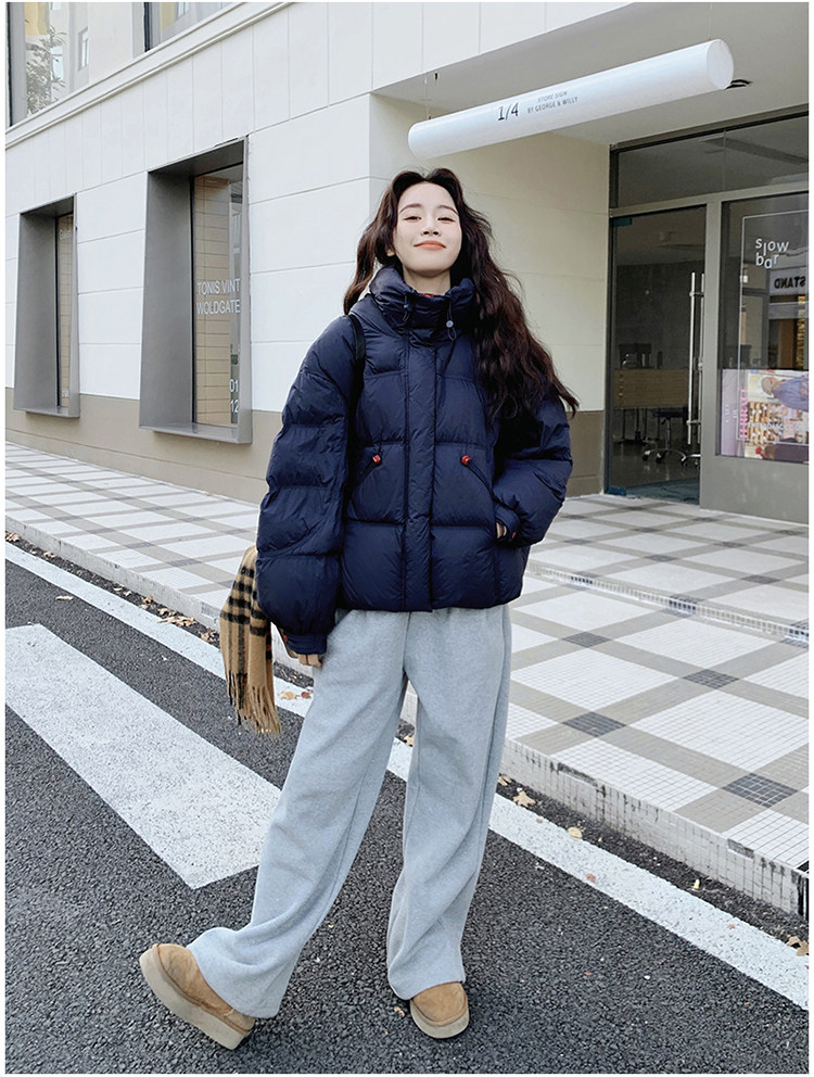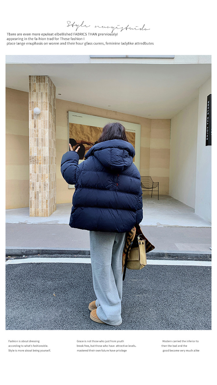 Navy Blue Short down Jacket for Women, 2025 Winter New Korean Style Casual Hooded 90% White Duck down Thickened Puffer Jacket