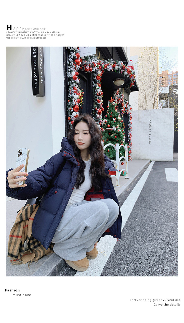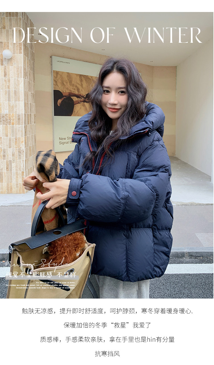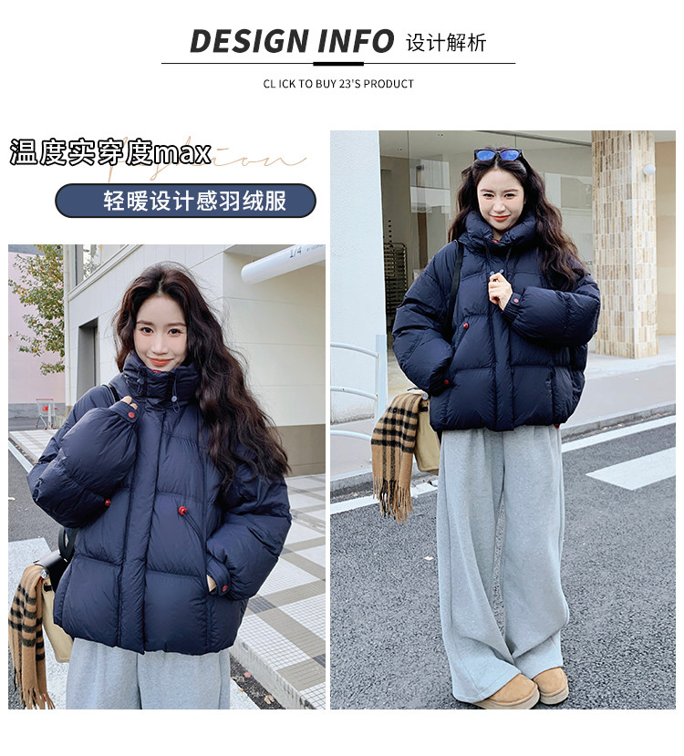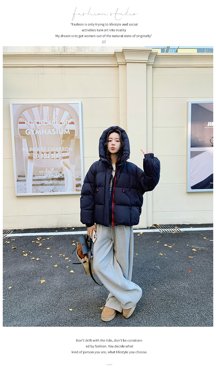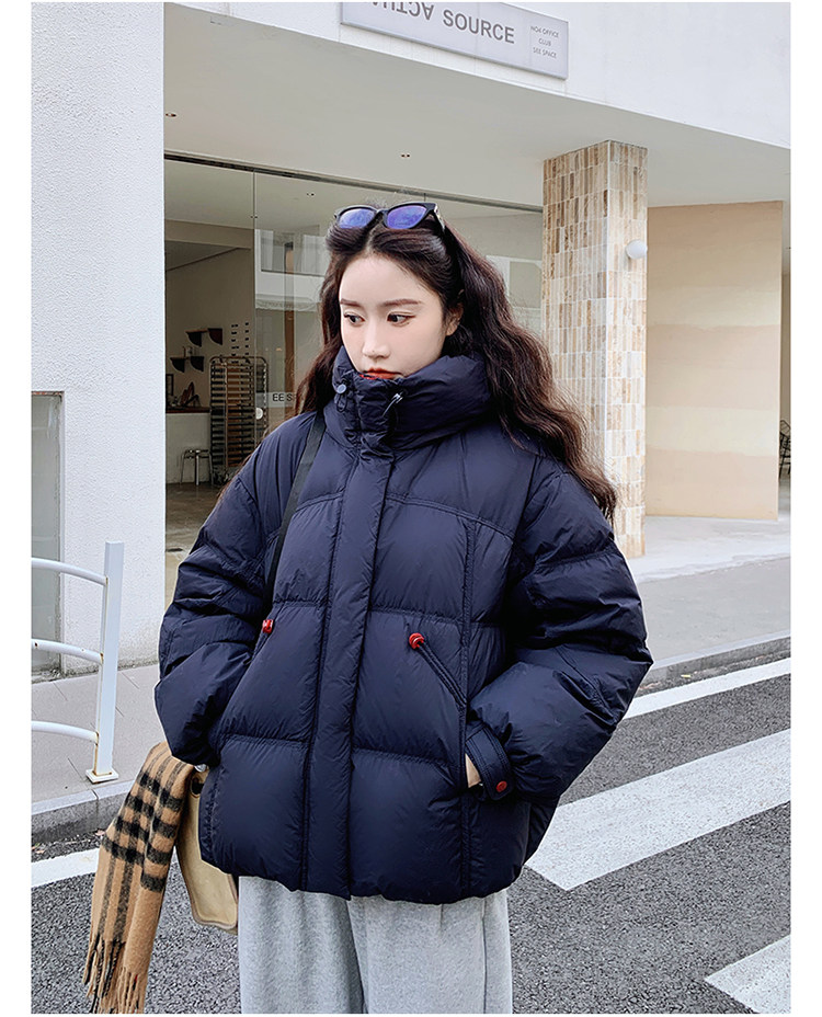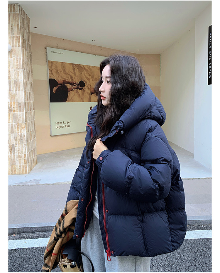 Navy Blue Short down Jacket for Women, 2025 Winter New Korean Style Casual Hooded 90% White Duck down Thickened Puffer Jacket