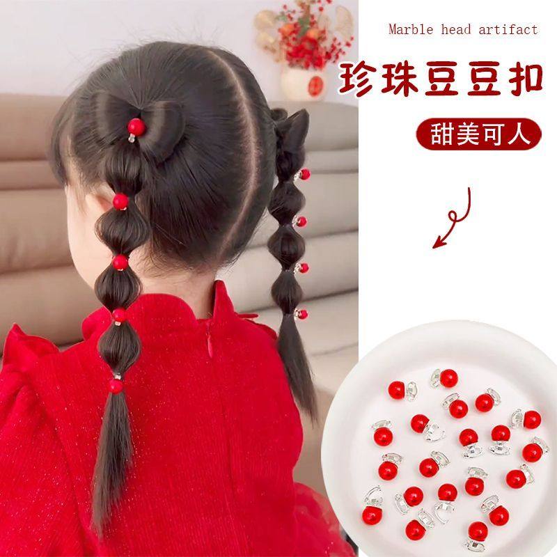 Детские мини-заколки для волос с жемчугом и дизайном в виде красных бобов, нежные к волосам, заколки для косичек, красные аксессуары для волос для маленьких девочек.