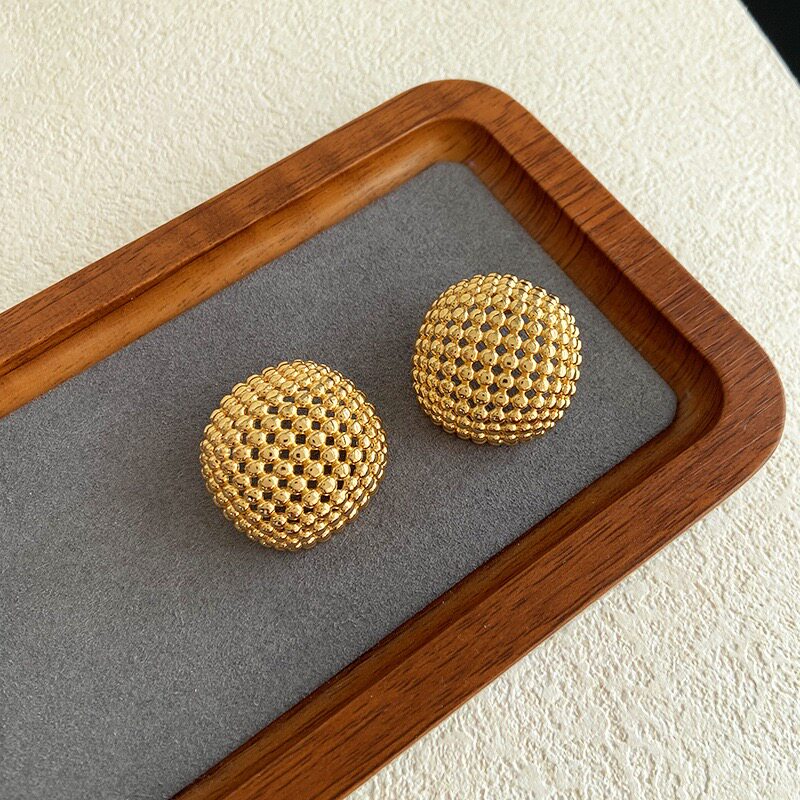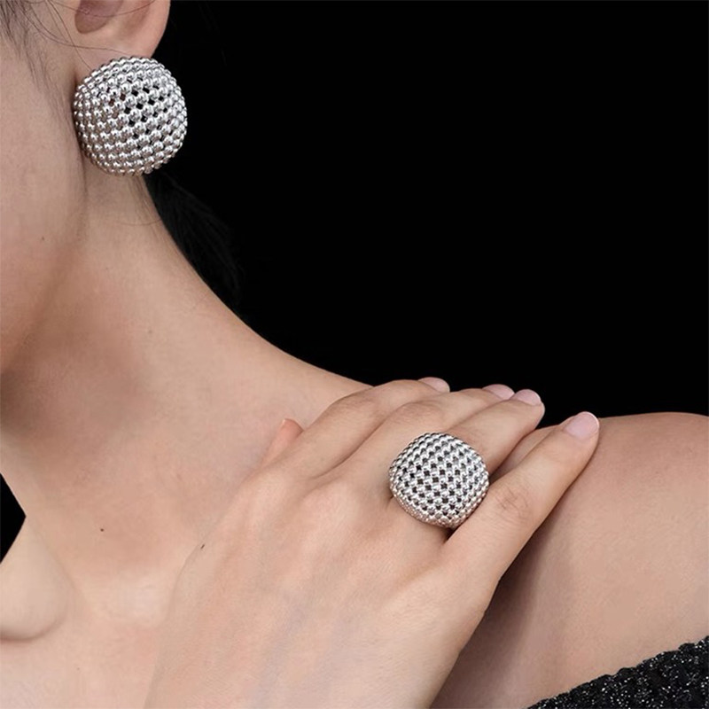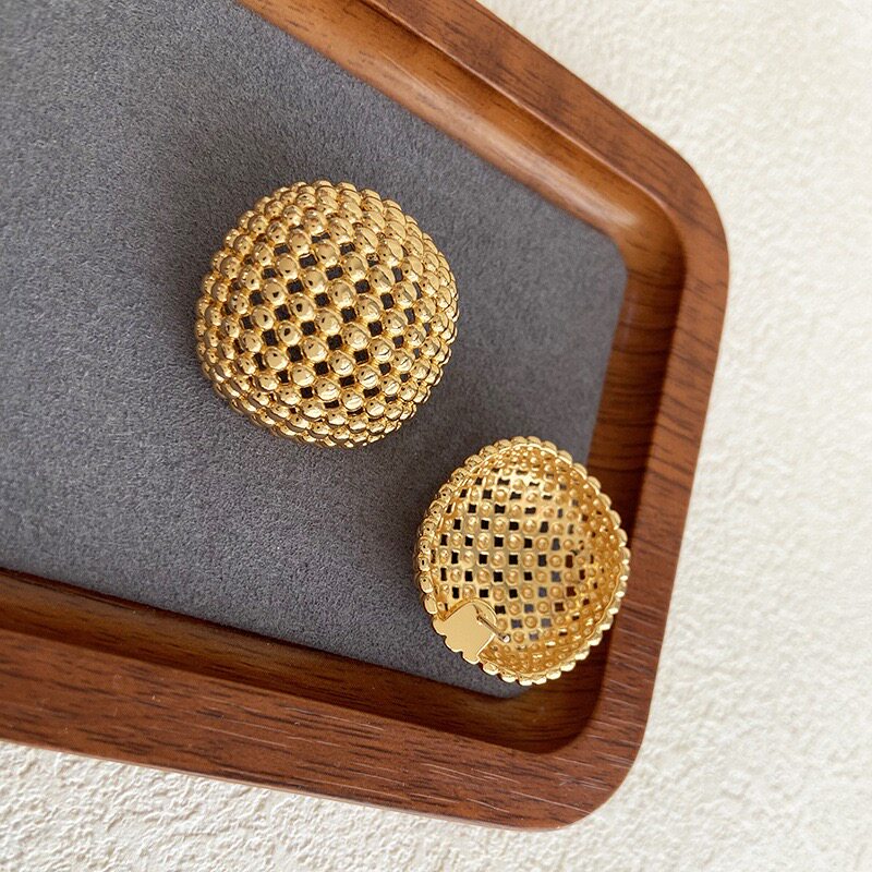 Bring Your Own Aura: Zhang Yue'Er's Same Style Hollow Round Bead Earrings for Women, European and American Exaggerated High-End Vintage Earrings/Ear Clips