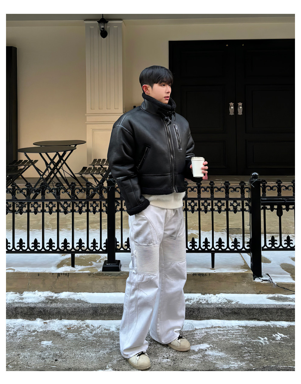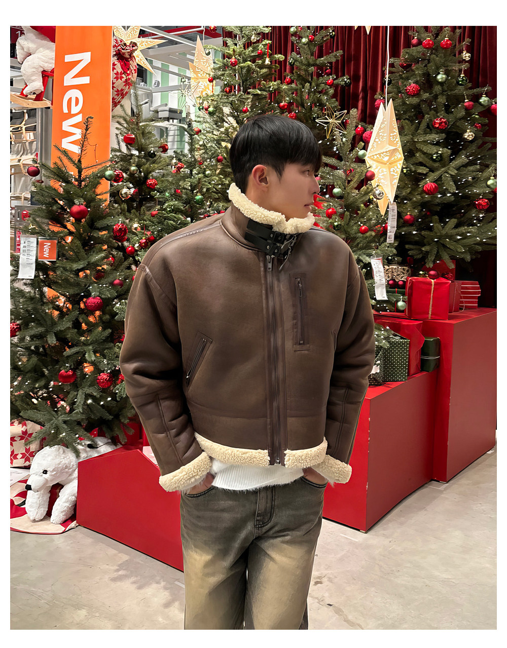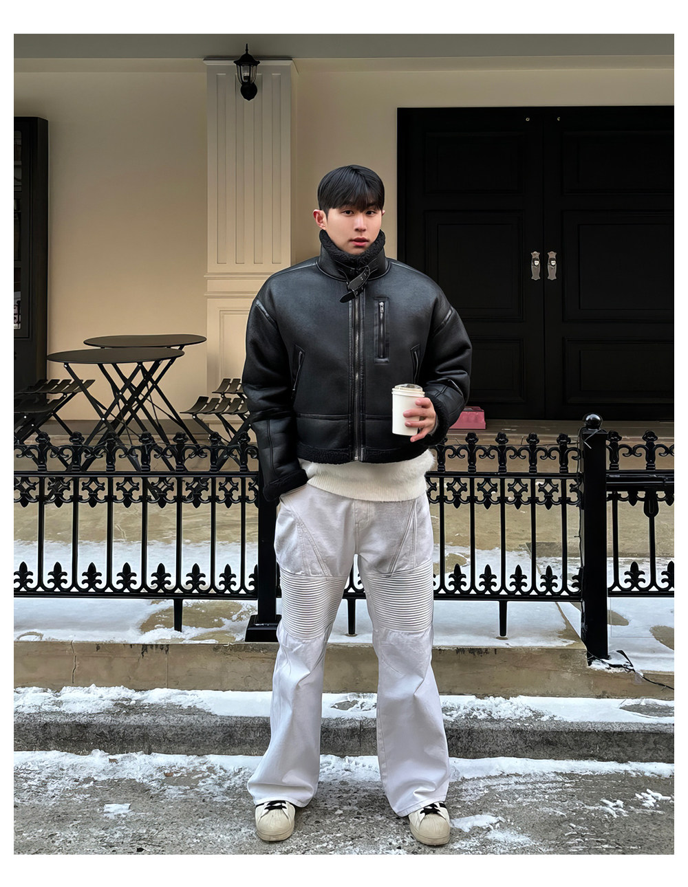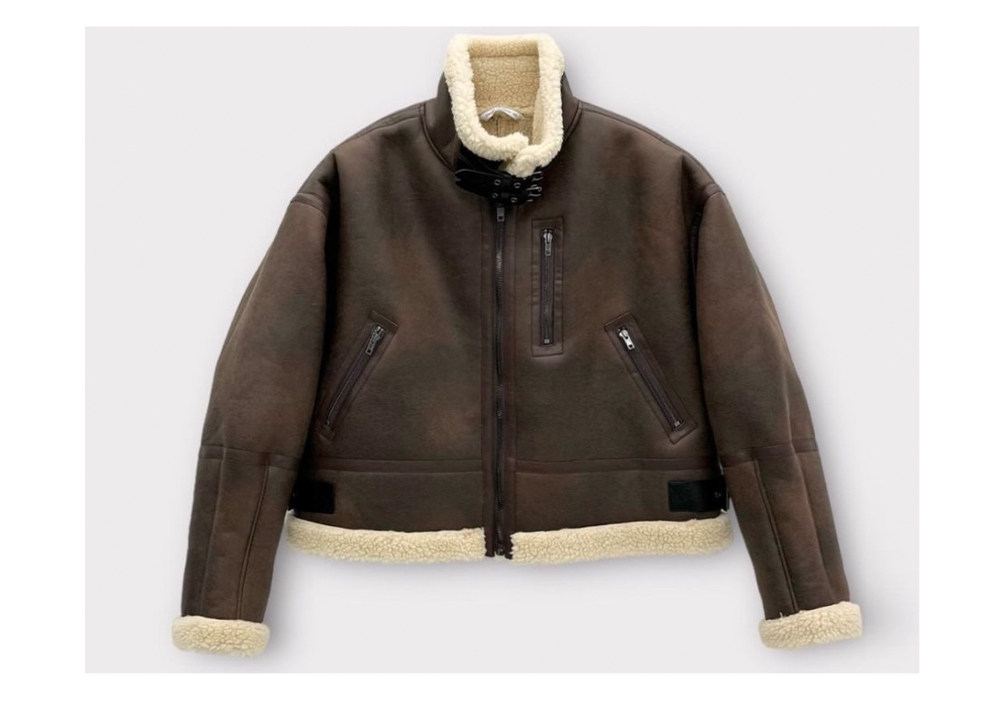 Black Stand-Up Collar Cotton Jacket for Men, Winter Thickened Faux Shearling Jacket, American Style Cool Leather and Fur Integrated Jacket, Trendy