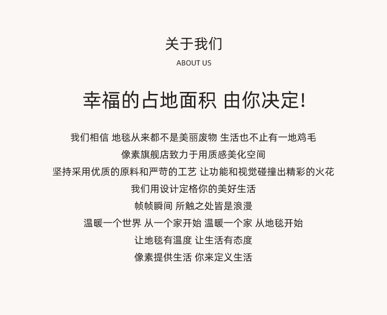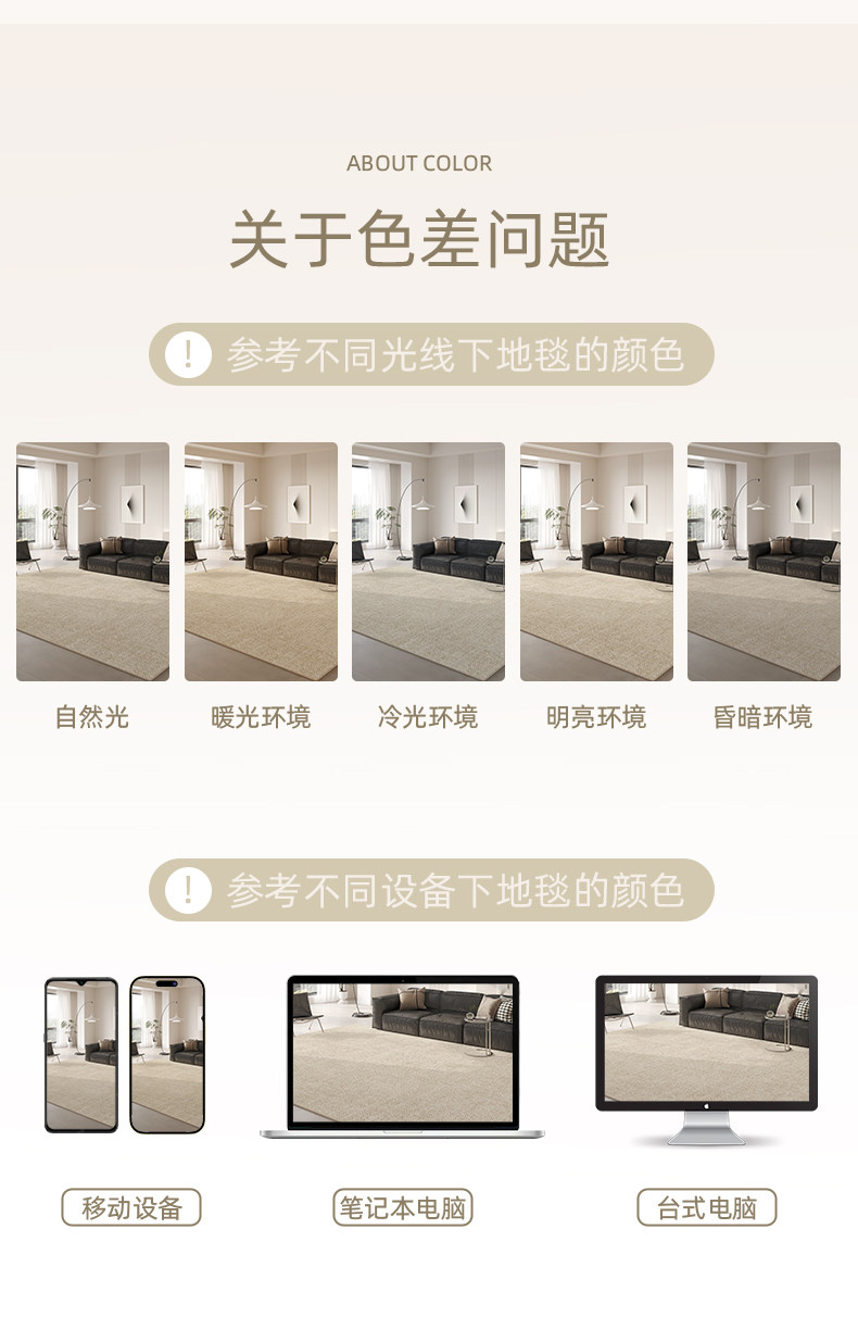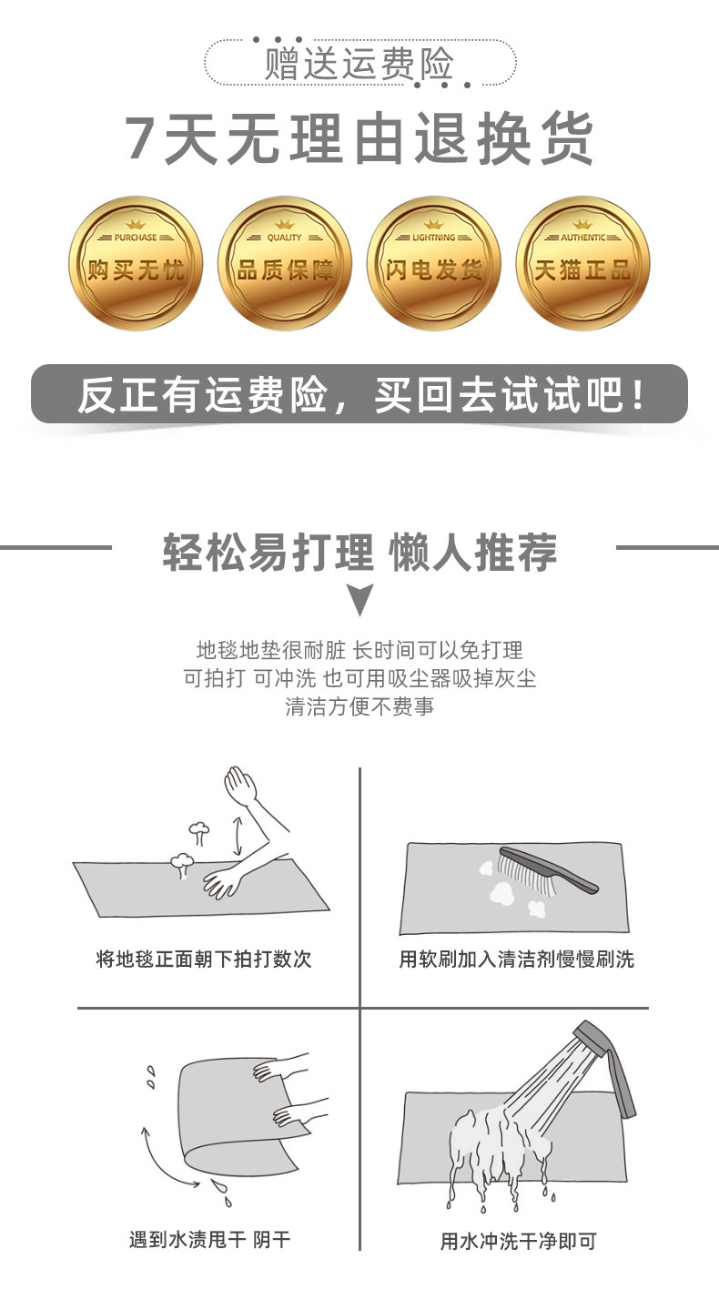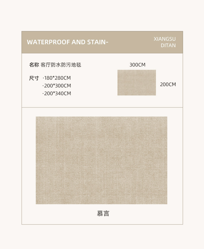 地毯尺寸 140*200cm(适合2-3人小沙发),160cm*230cm【适用2-3人沙发】,180cm*250cm【适用中小户型客厅】,180cm*280cm【适用3人或L型沙发】,200cm*300cm【适用3人或L型沙发】,200cm*340cm【适用4人或L型沙发】,240cm*360cm【适用4人或L型沙发】,240cm*400cm【适用U型沙发 】,300cm*400cm【适用4人或L型沙发】,300cm*450cm【适用U型沙发 定制不退不换】