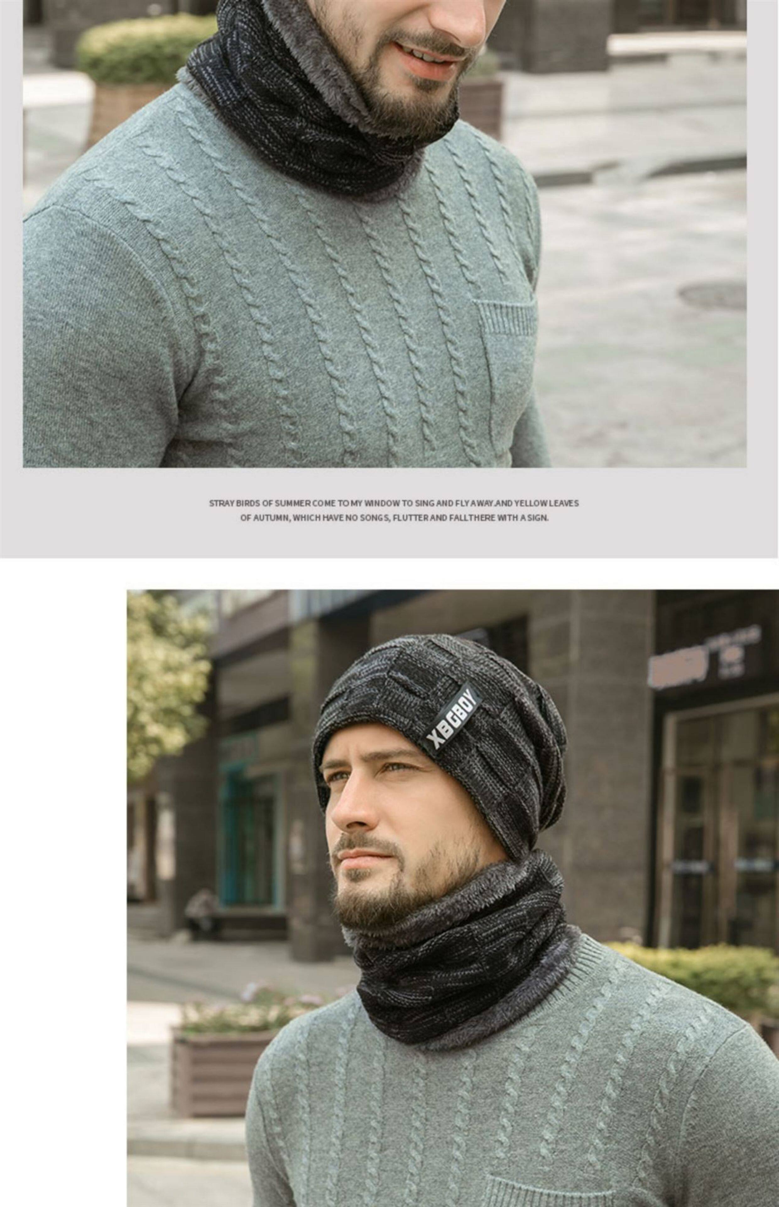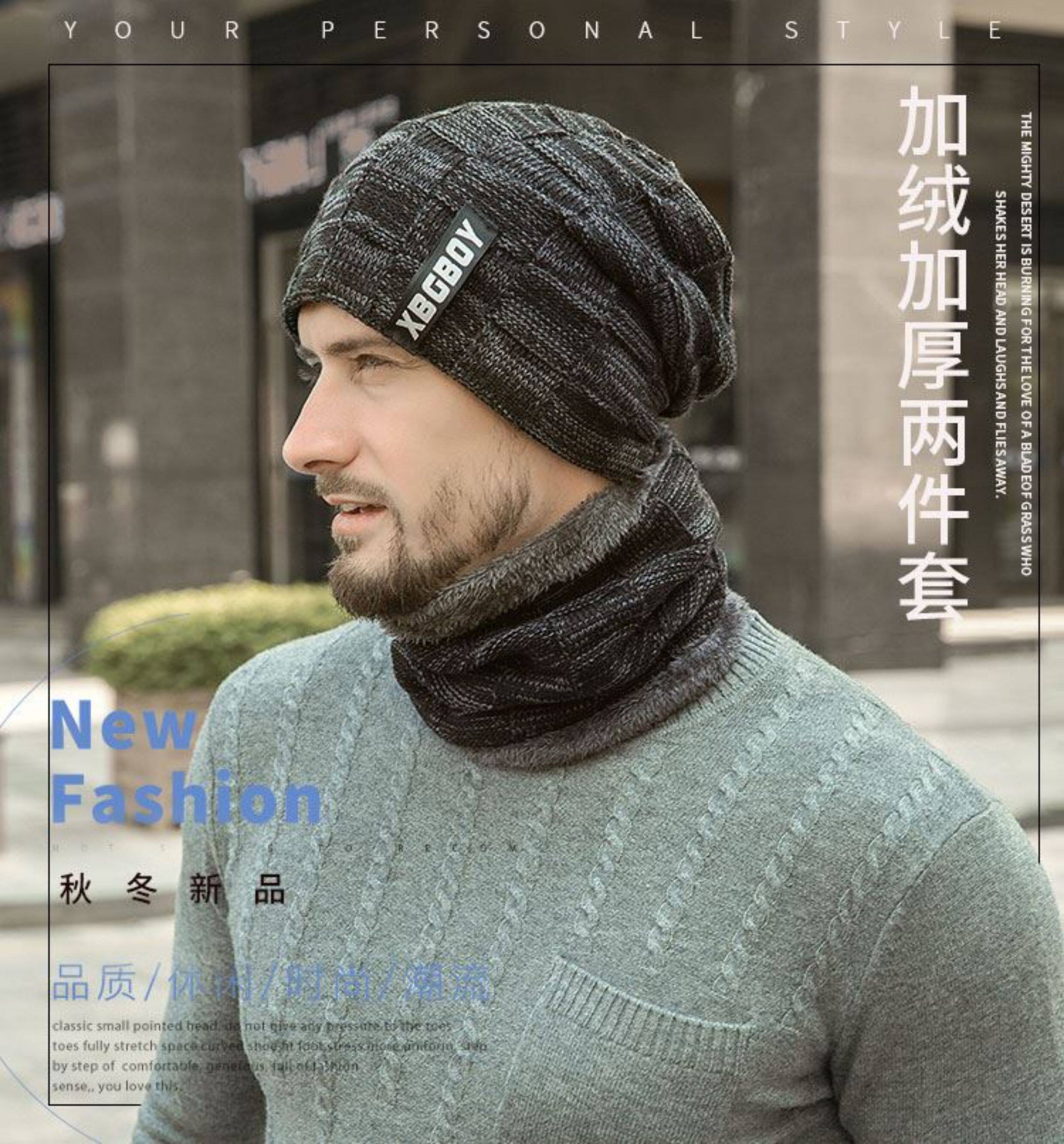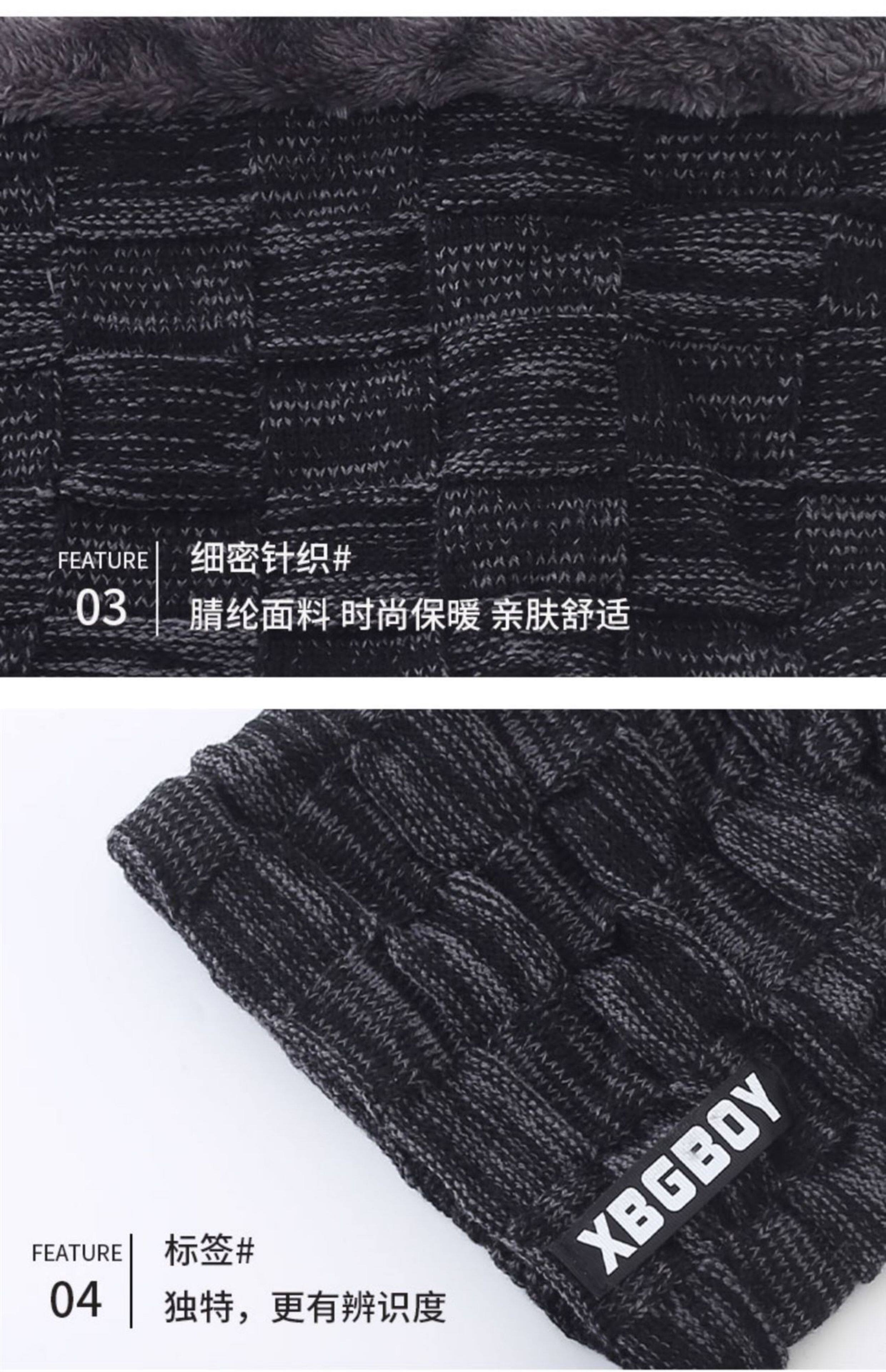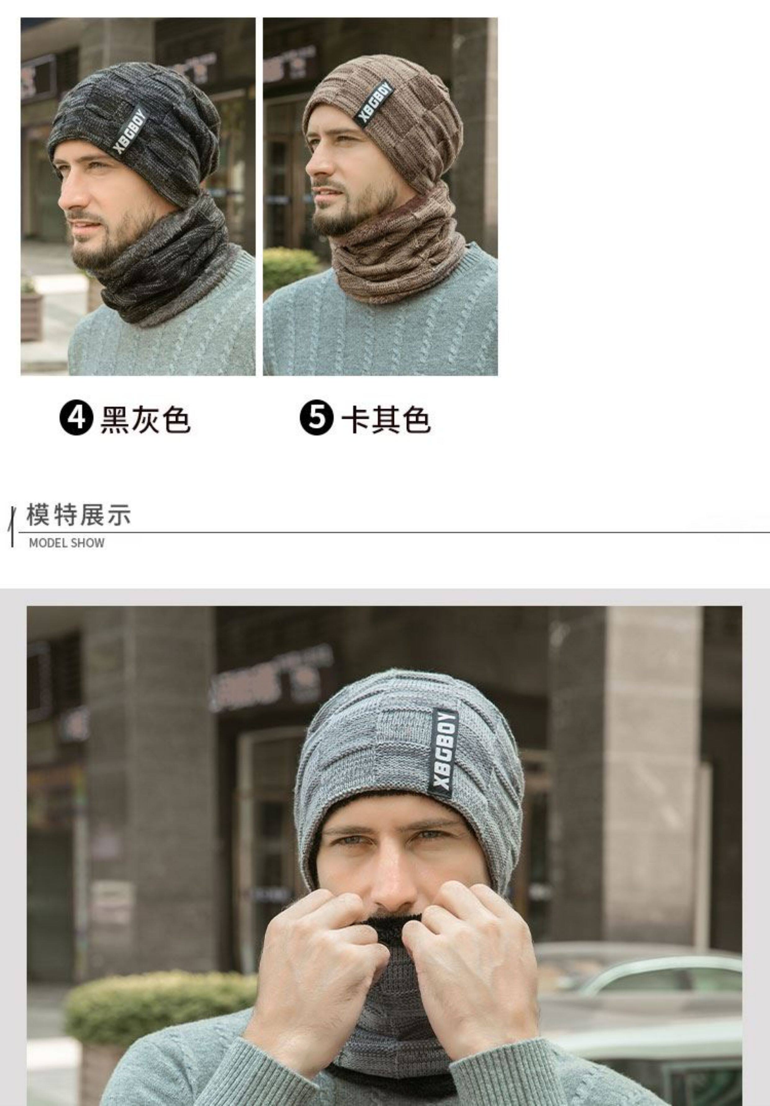 Japanese hat men's winter all-match plus plush woolen hat autumn and winter cycling windproof warm knitted hat scarf cotton hat