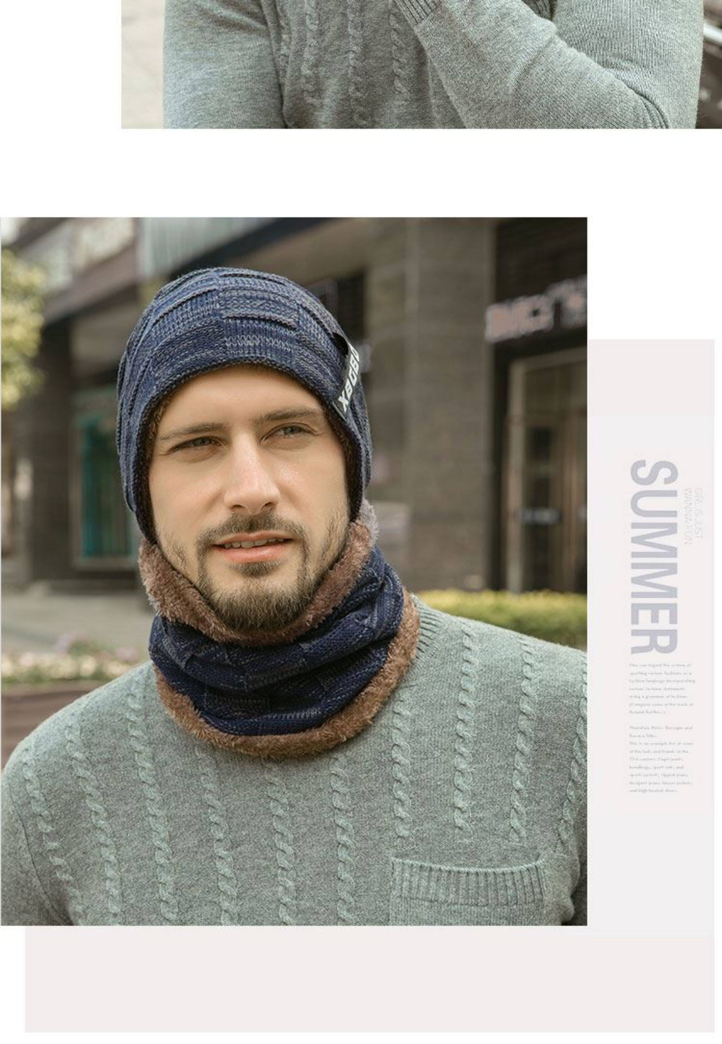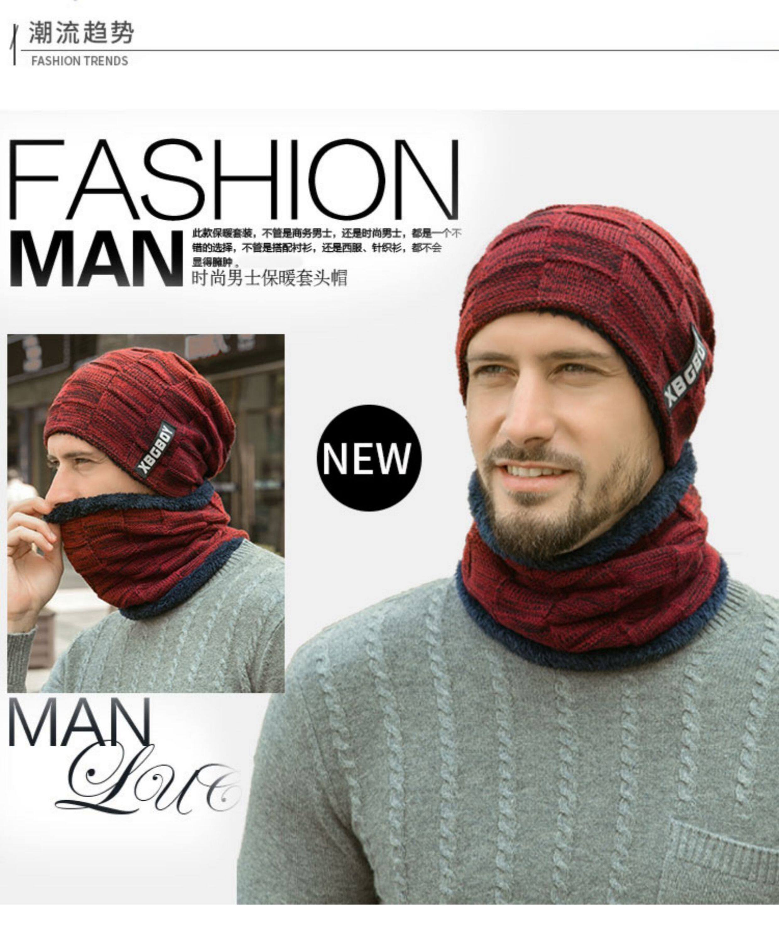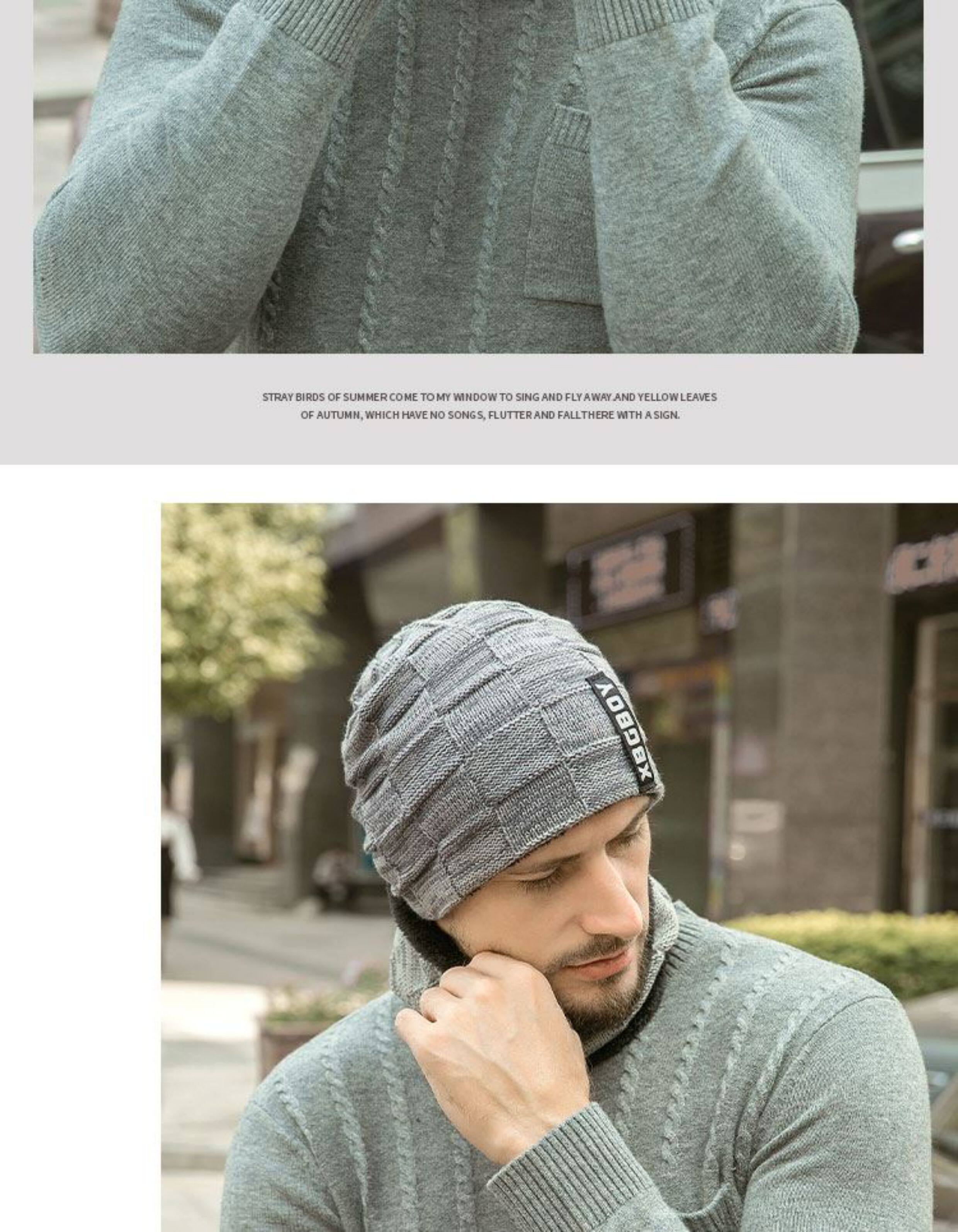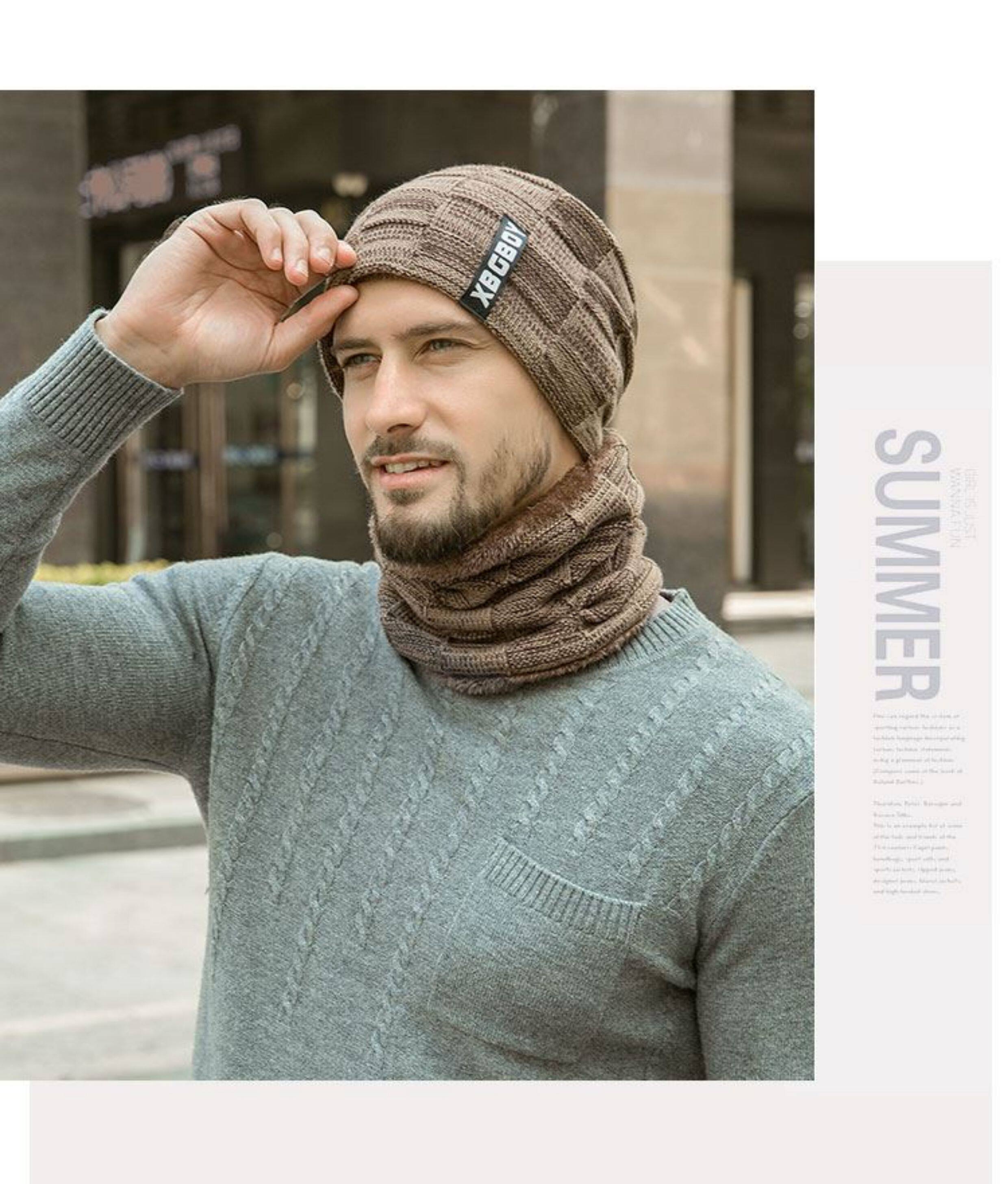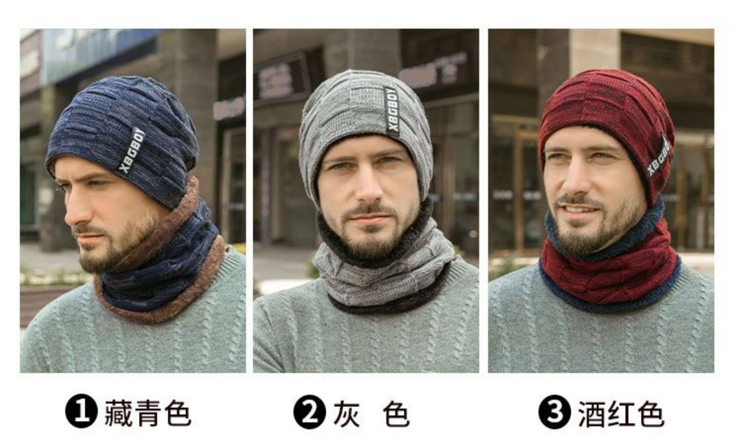 Japanese hat men's winter all-match plus plush woolen hat autumn and winter cycling windproof warm knitted hat scarf cotton hat