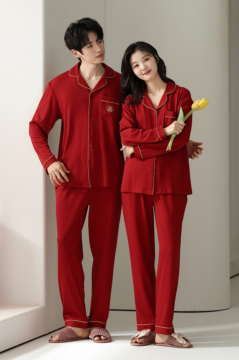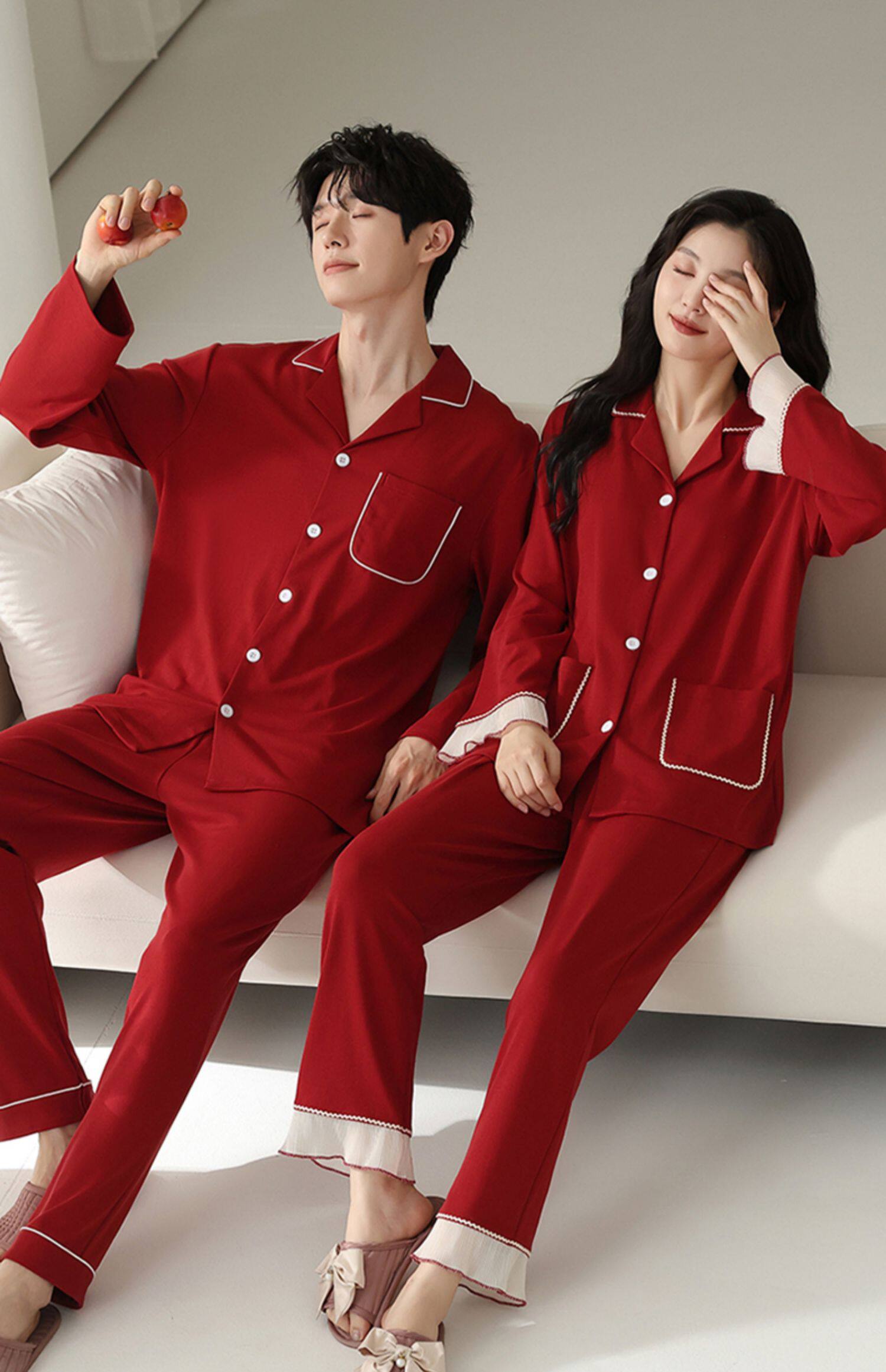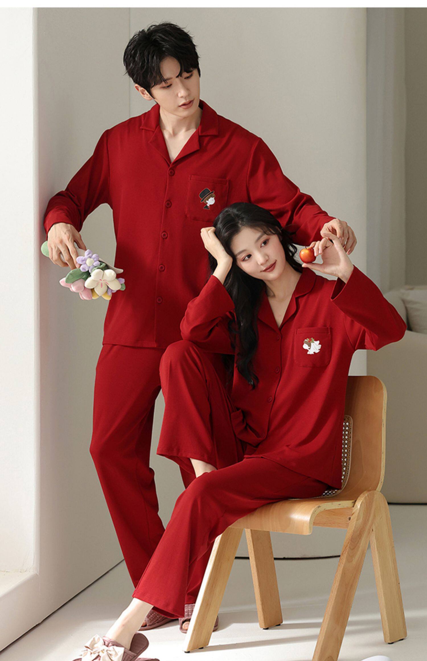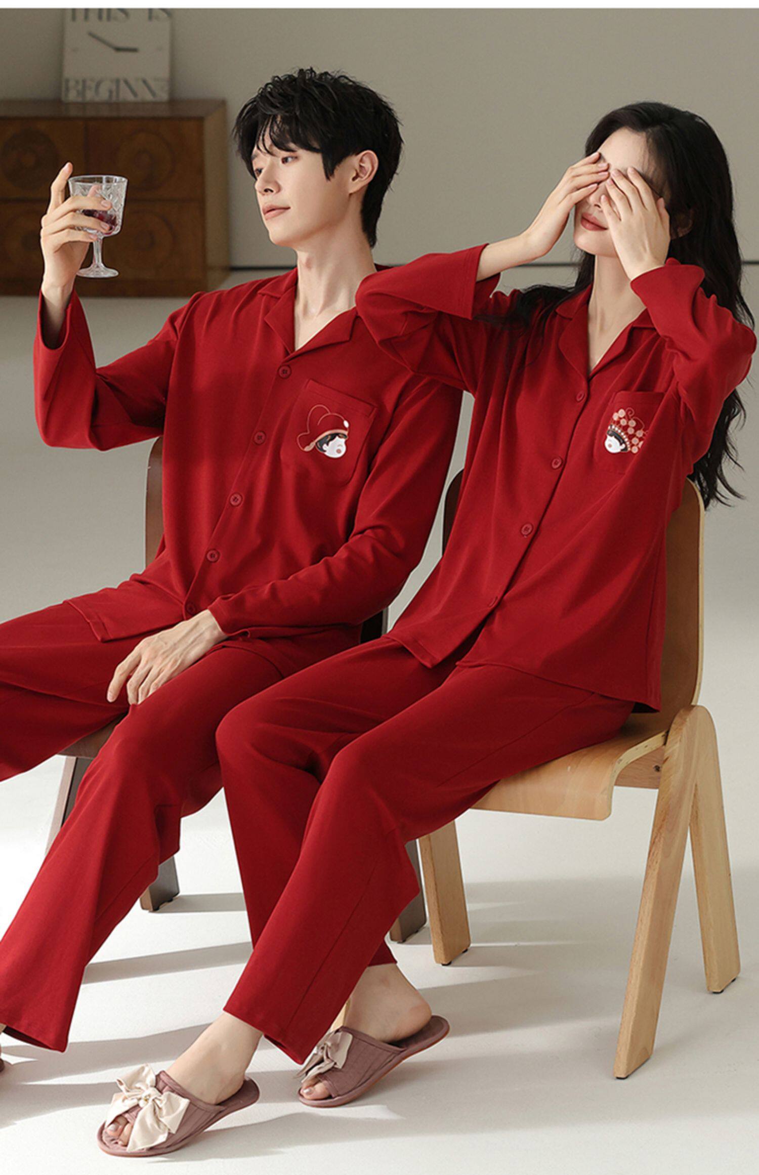 Catman Pajamas Wedding Newlywed Couple Set Red Cotton Autumn and Winter Long Sleeve Love Couple Outfit One Man and One Woman