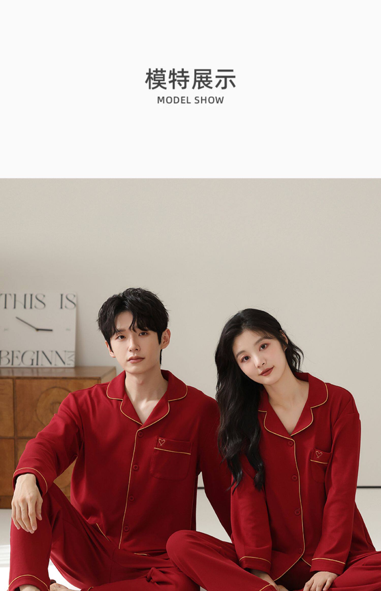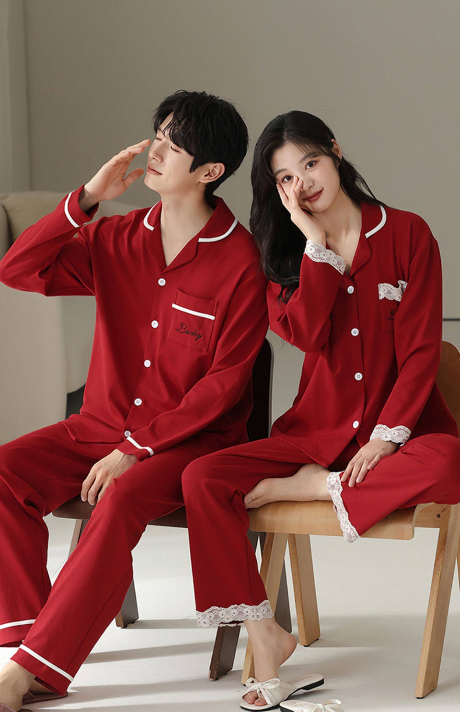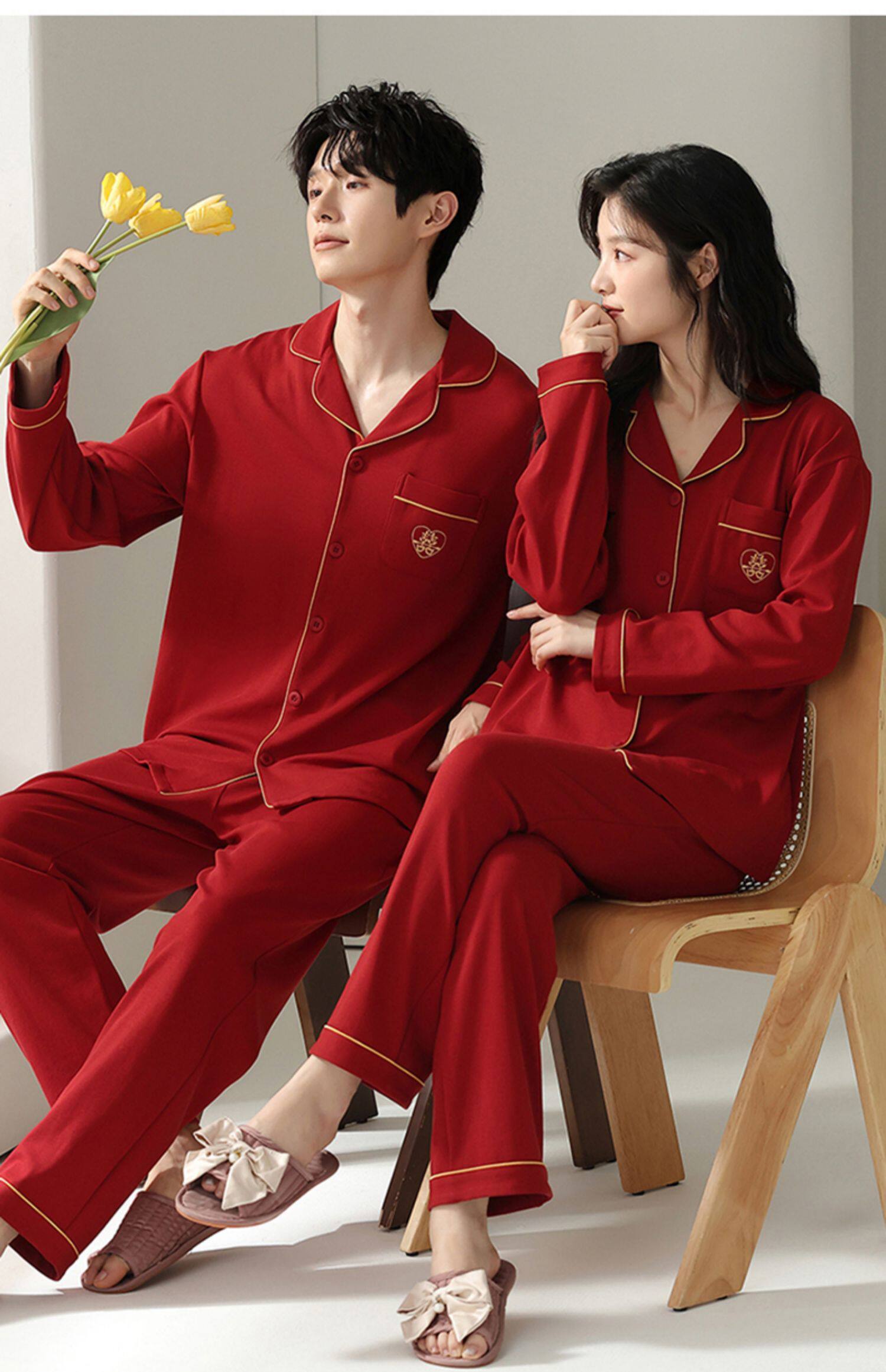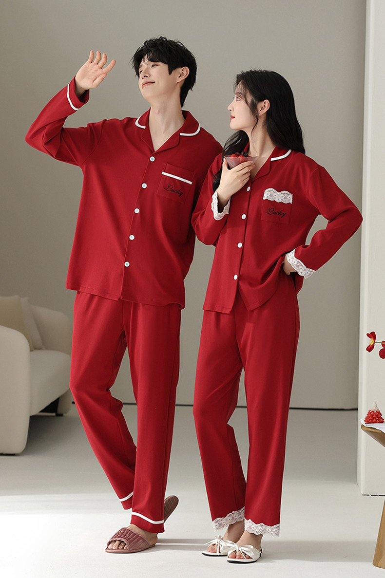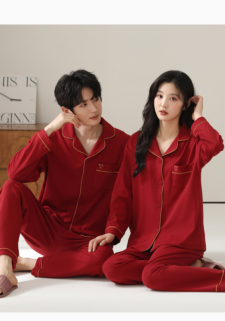 Catman Pajamas Wedding Newlywed Couple Set Red Cotton Autumn and Winter Long Sleeve Love Couple Outfit One Man and One Woman