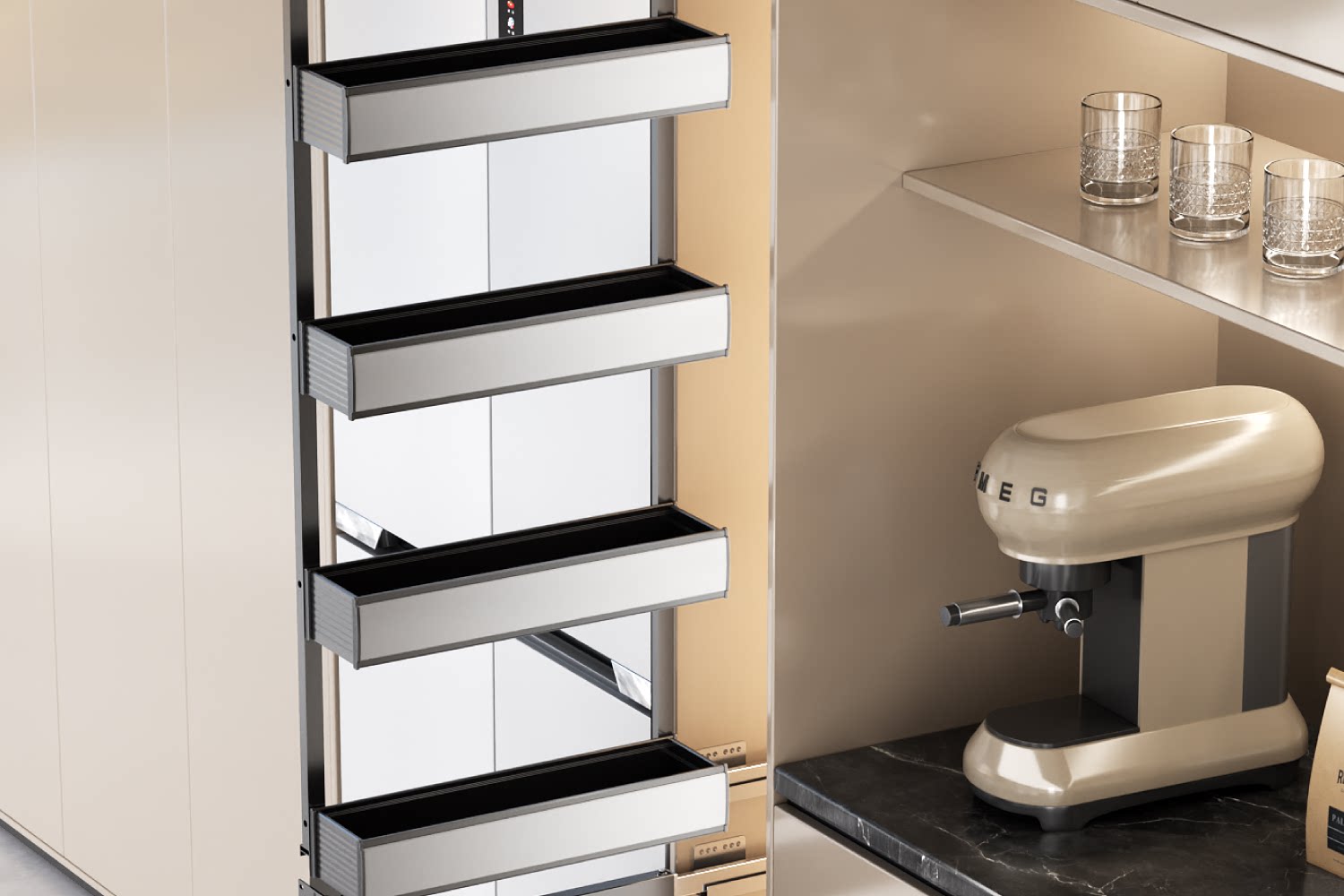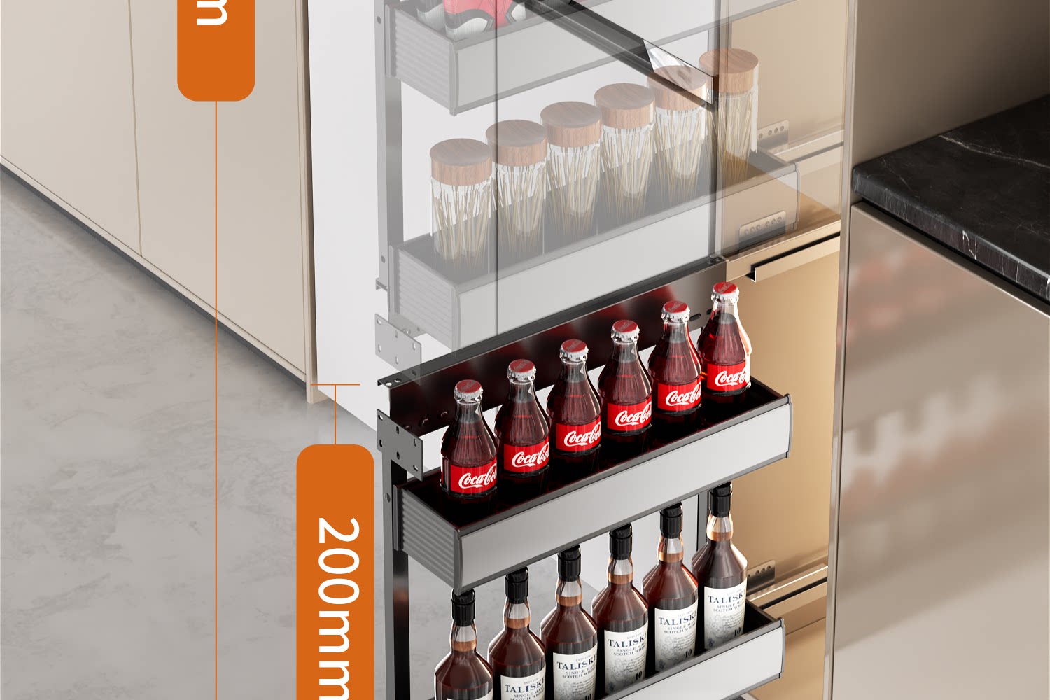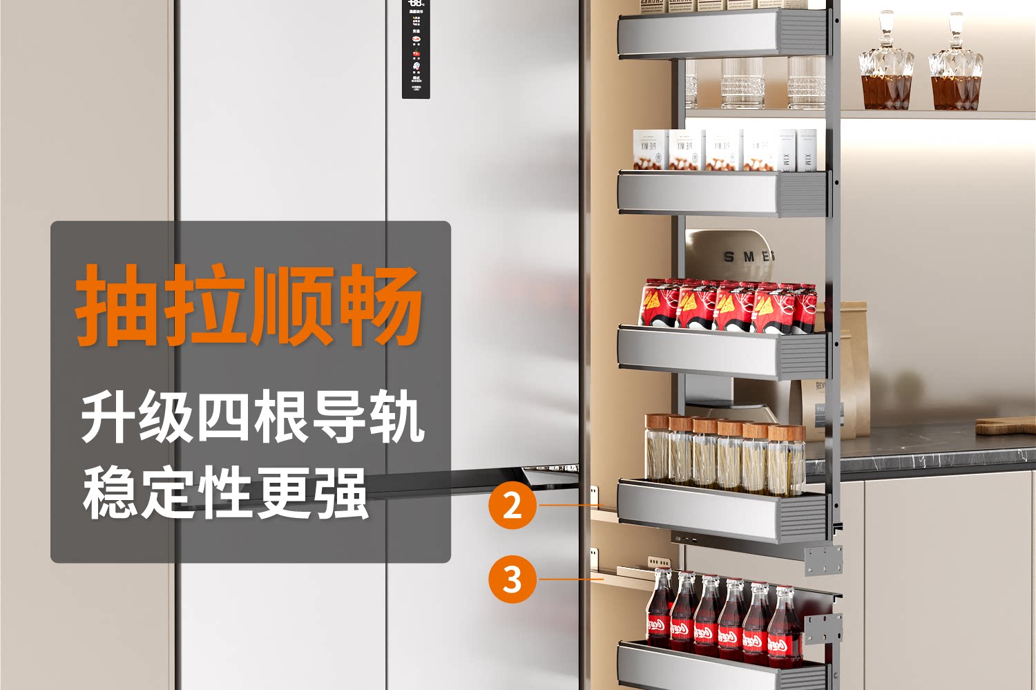 Kabei's new pull basket kitchen cabinet big monster snack cabinet sandwiched deep drawer type narrow side refrigerator pull basket