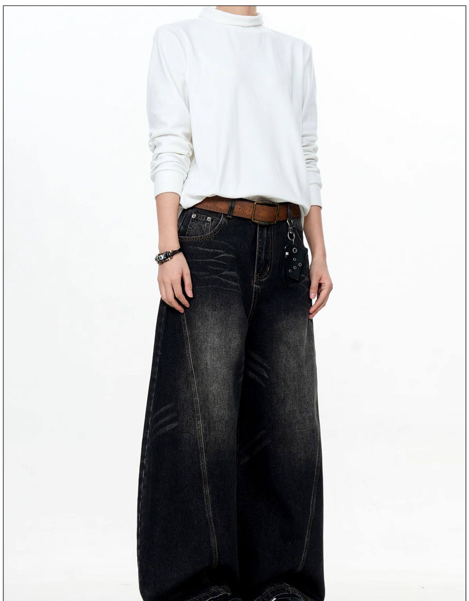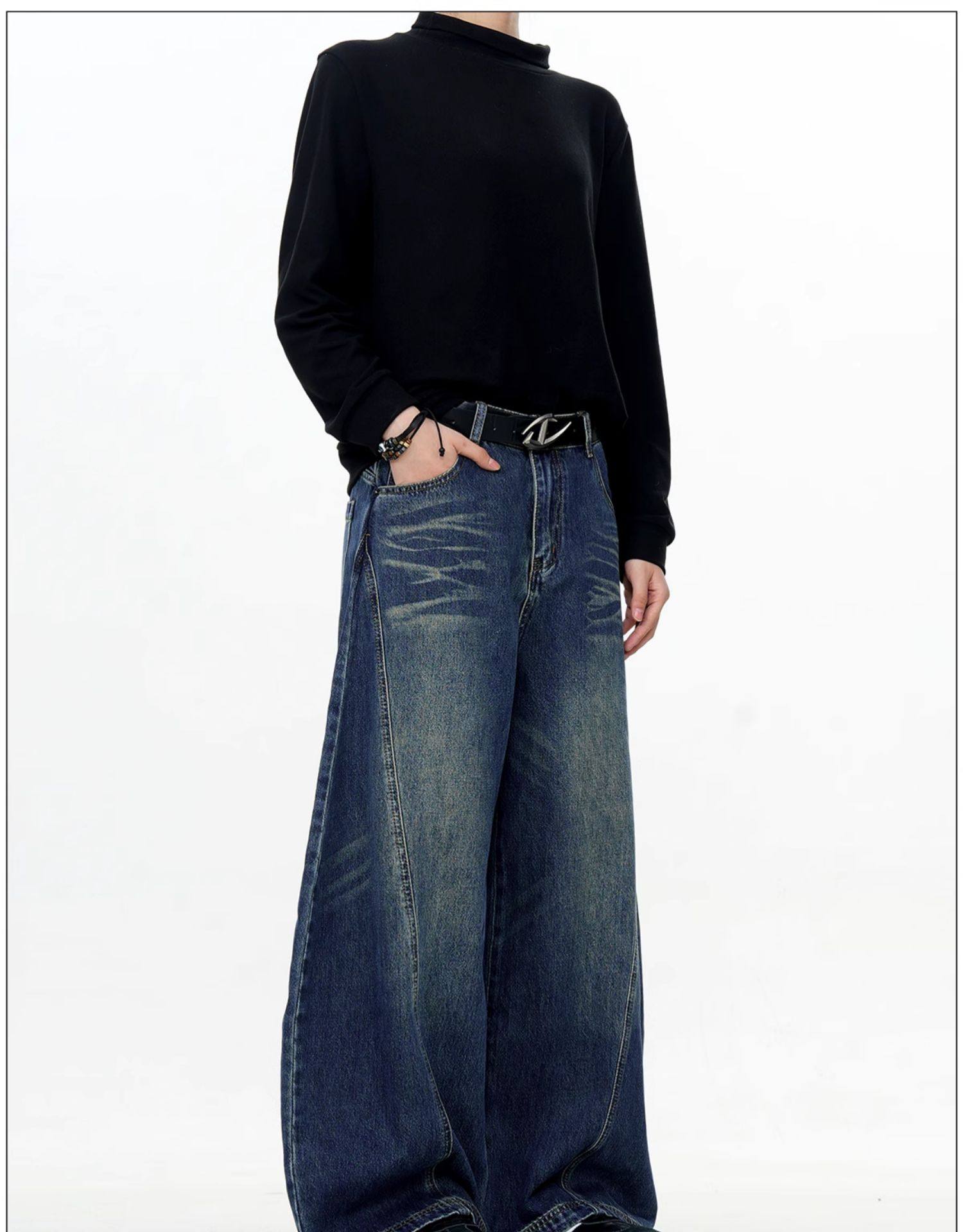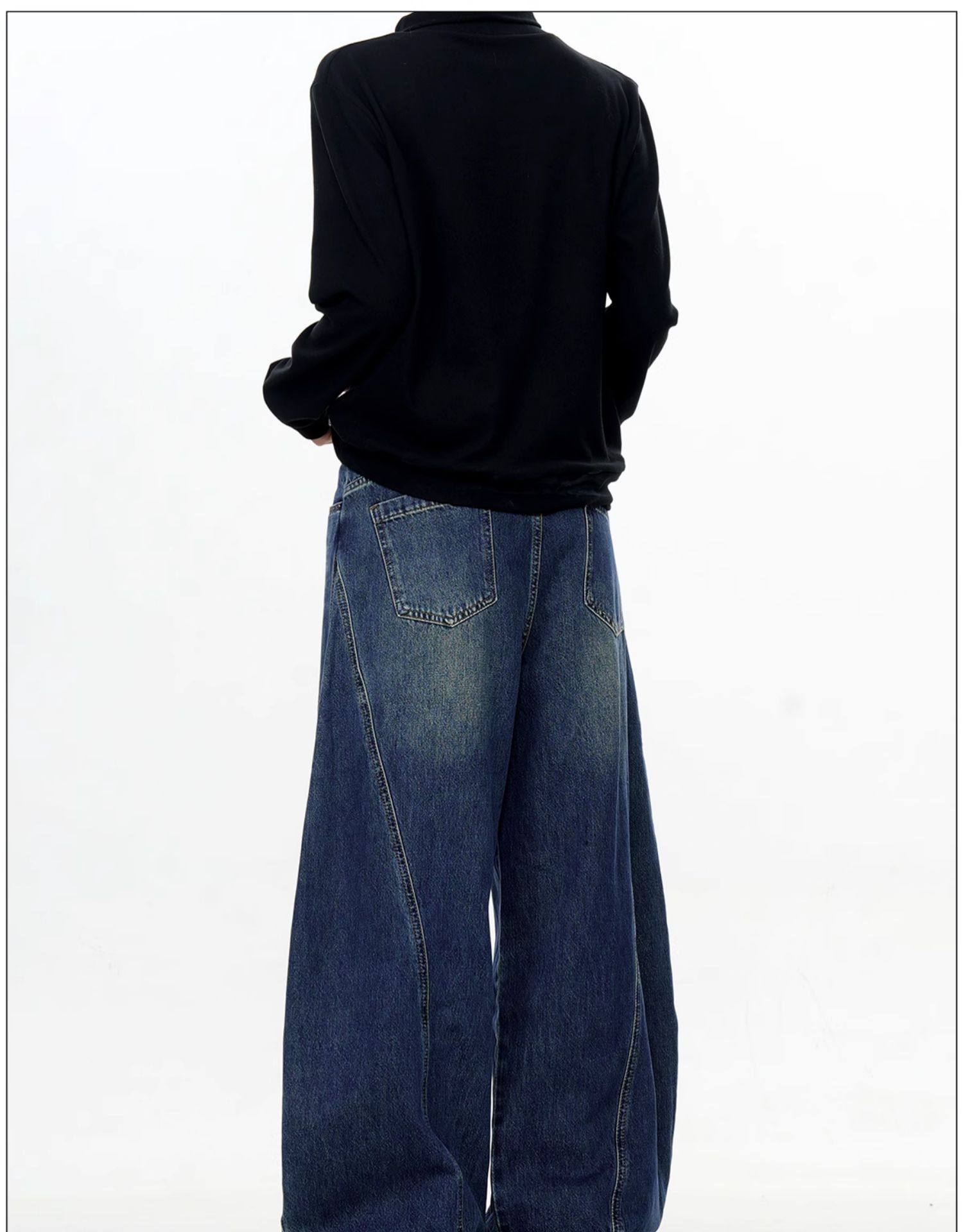 Verborgen American Retro Design Scimitar Sickle Jeans Vintage Trendy Brand Washed Deconstructed Trousers