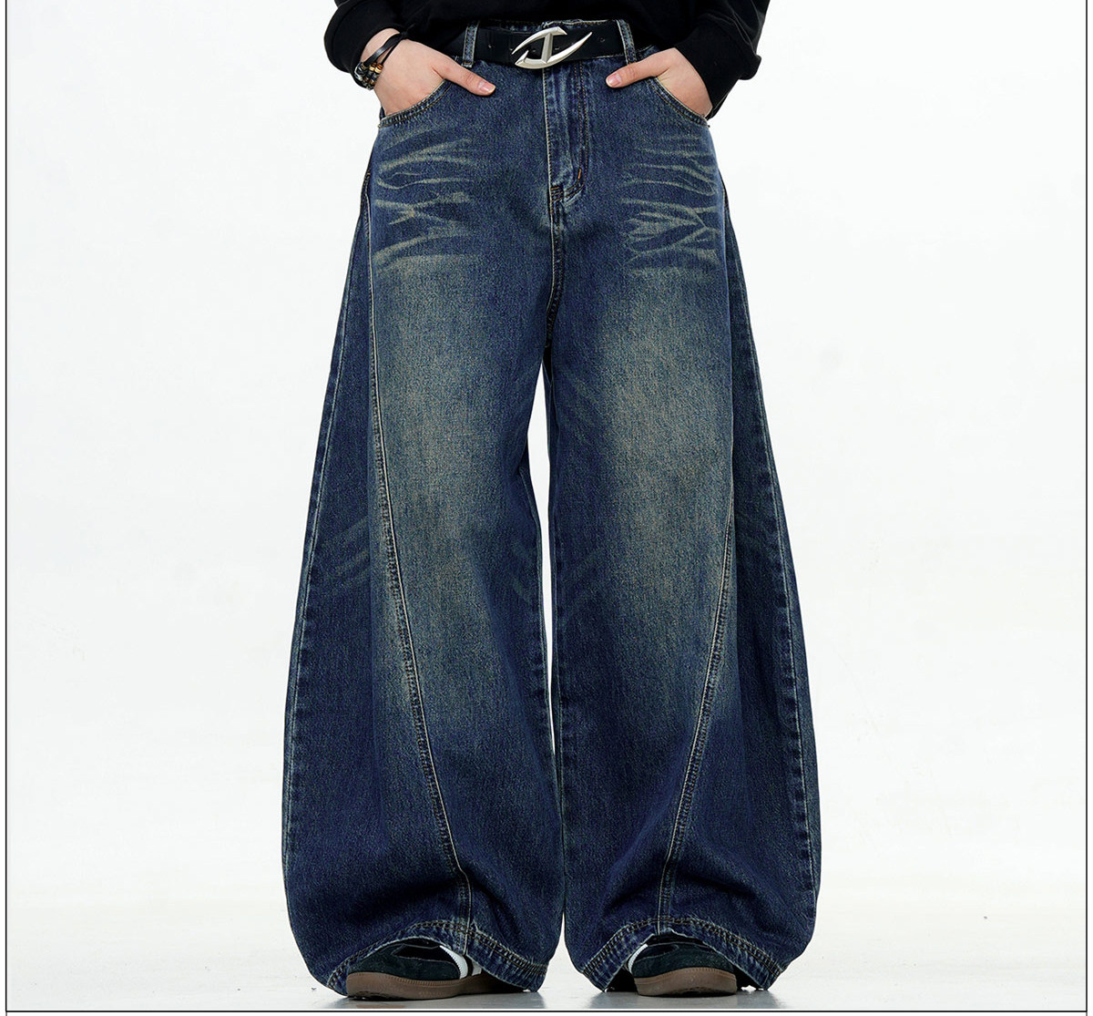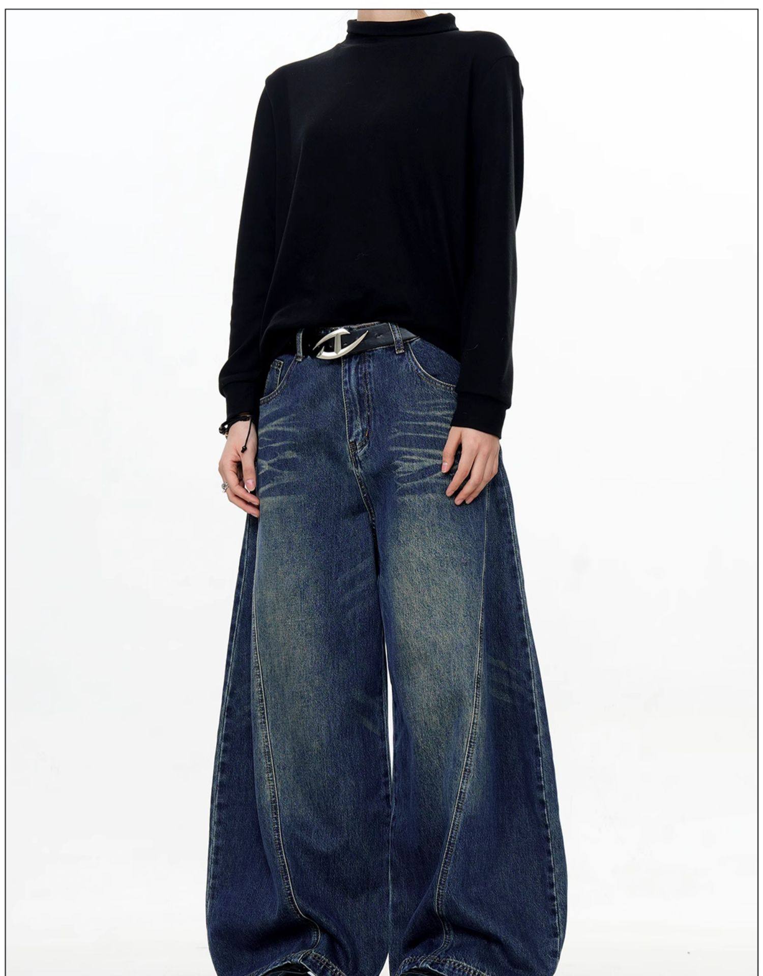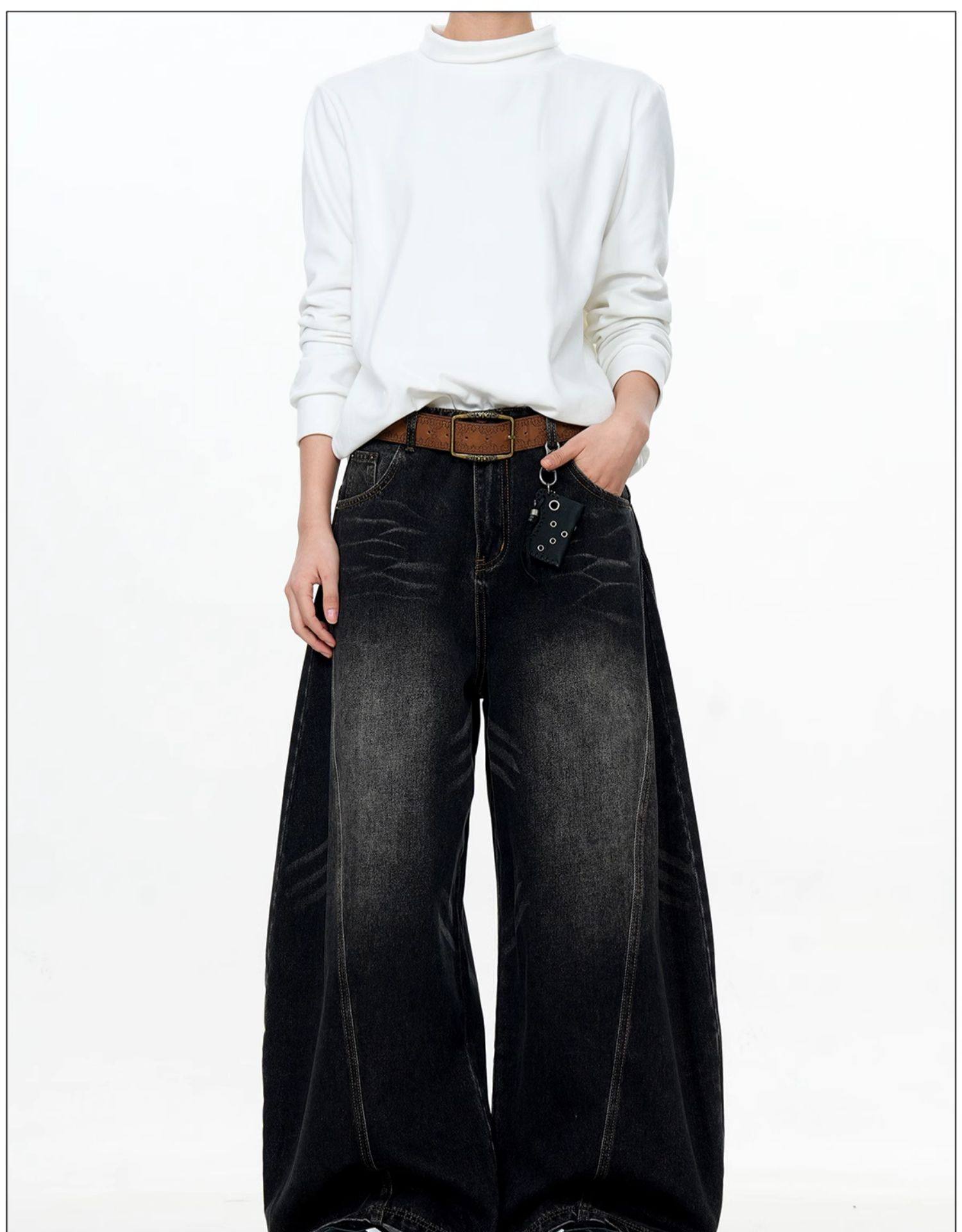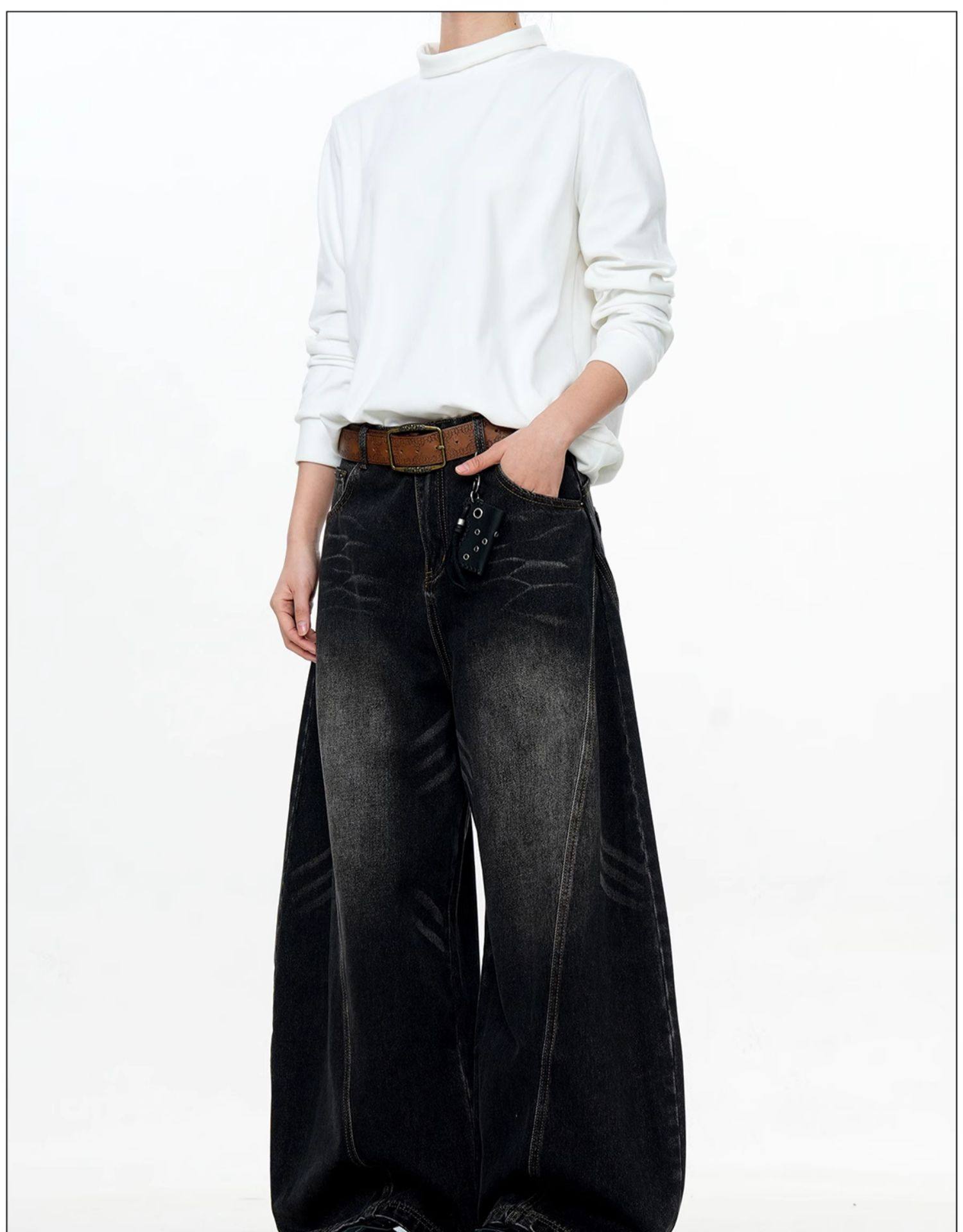 Verborgen American Retro Design Scimitar Sickle Jeans Vintage Trendy Brand Washed Deconstructed Trousers