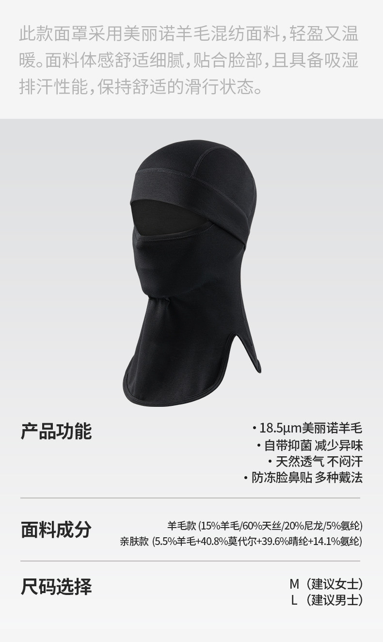 Nanend Nanen's New Merino Warm Ski Quick-Drying Face Protection Moisture-Wicking and Sweat-Wicking Mask for Men and Women Nk25