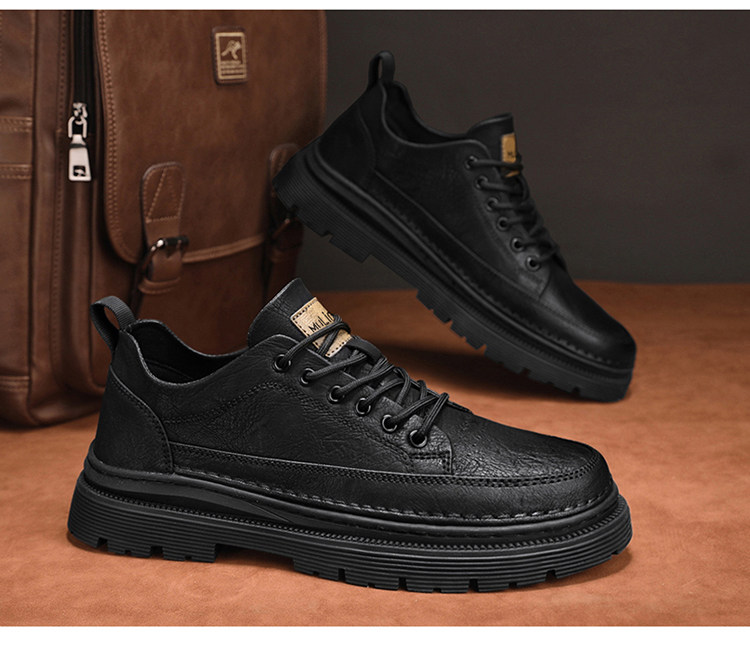 Mulinsen men's shoes 2026 new spring and autumn business low-top Martin boots men's British style workwear black casual leather shoes