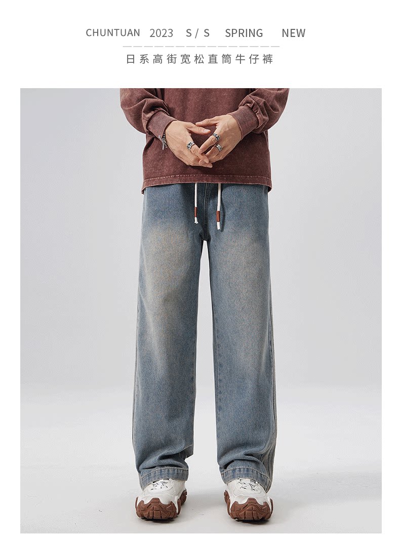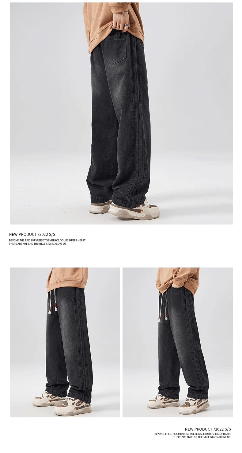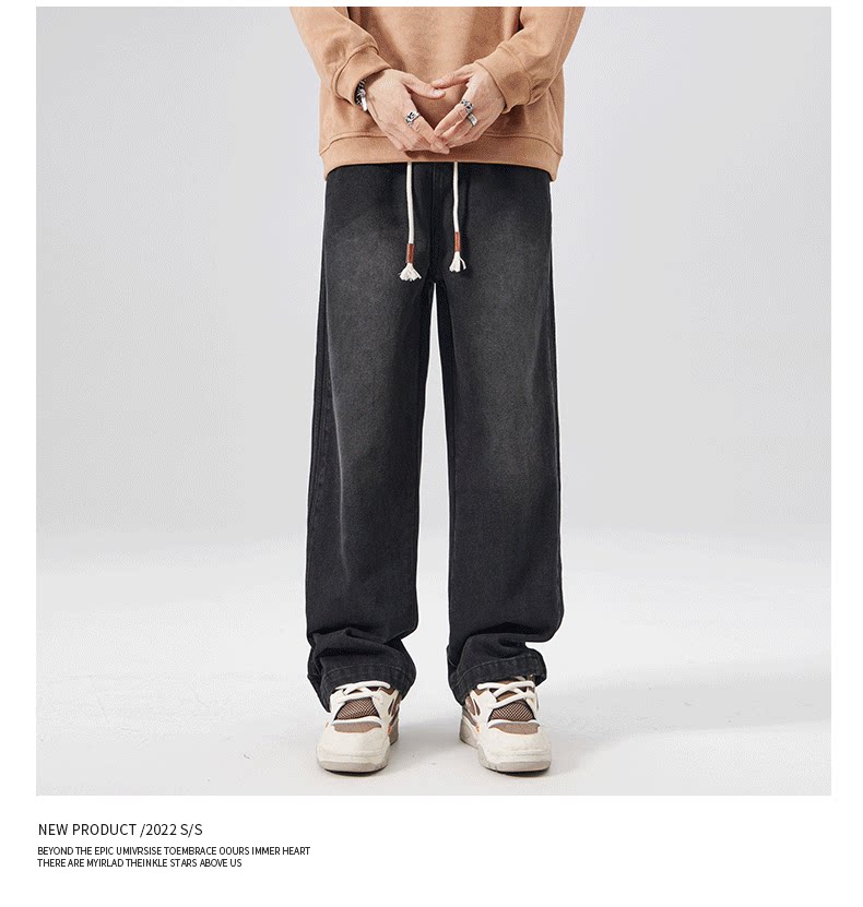 Black Jeans for Men, Spring and Autumn 2025 New Style, Loose Fit, Straight-Leg Pants for Teenagers, High Street American Style Trendy Brand Cargo Pants