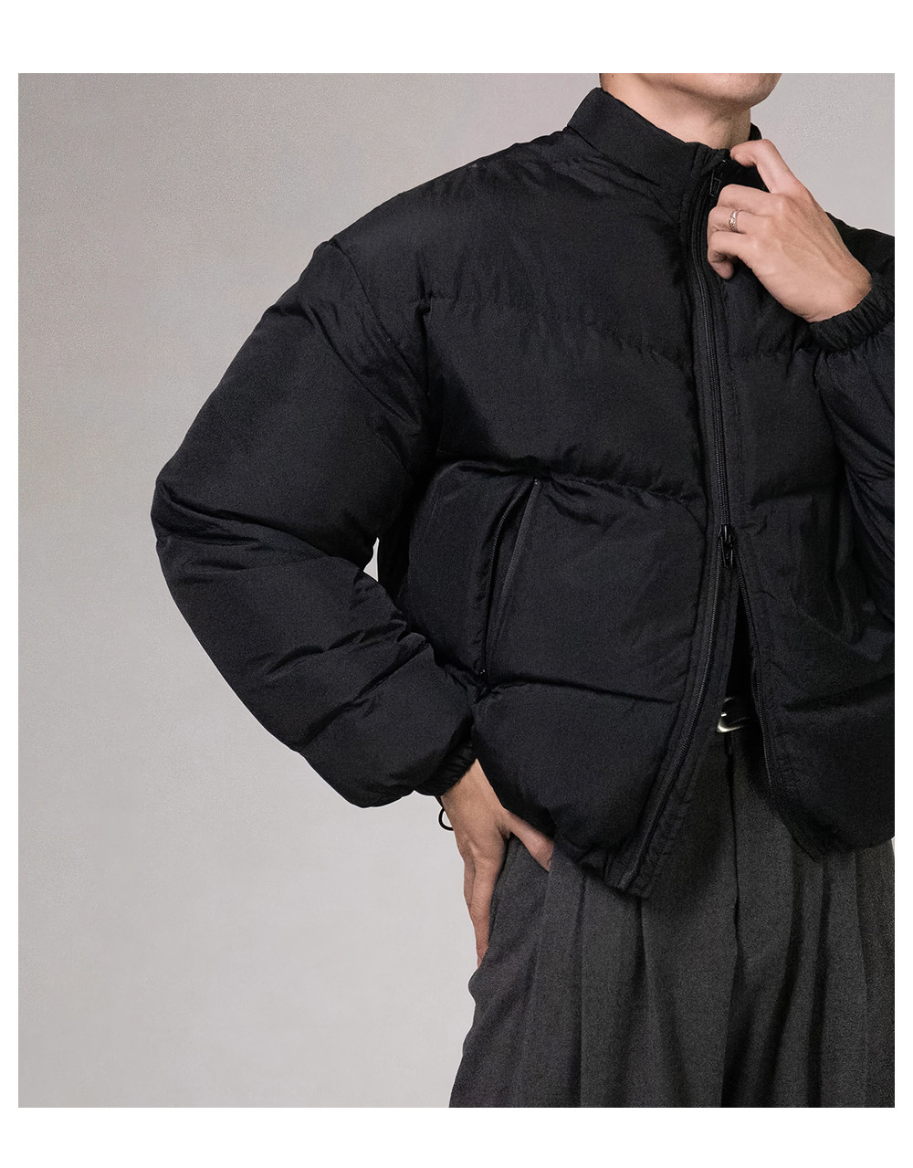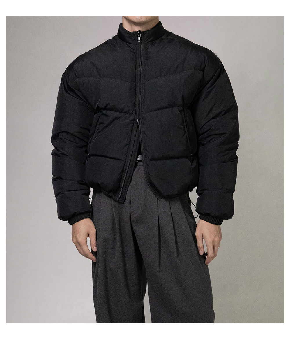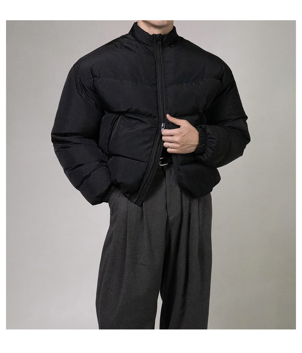 Black short stand-collar cotton jacket for men in fall and winter, American style high-end niche design thickened warm cotton jacket