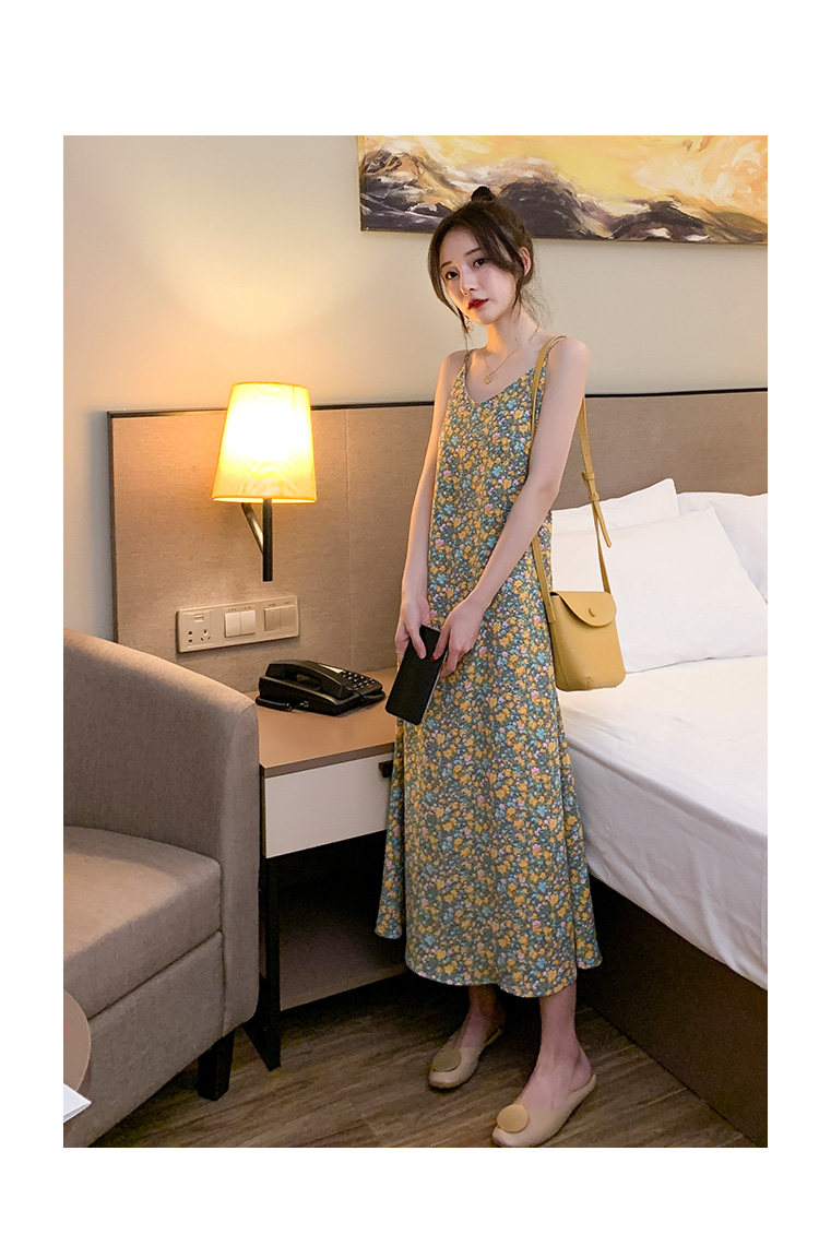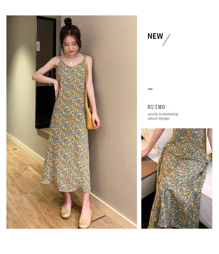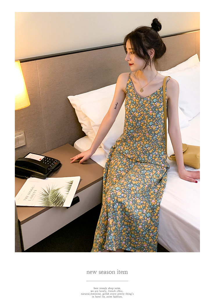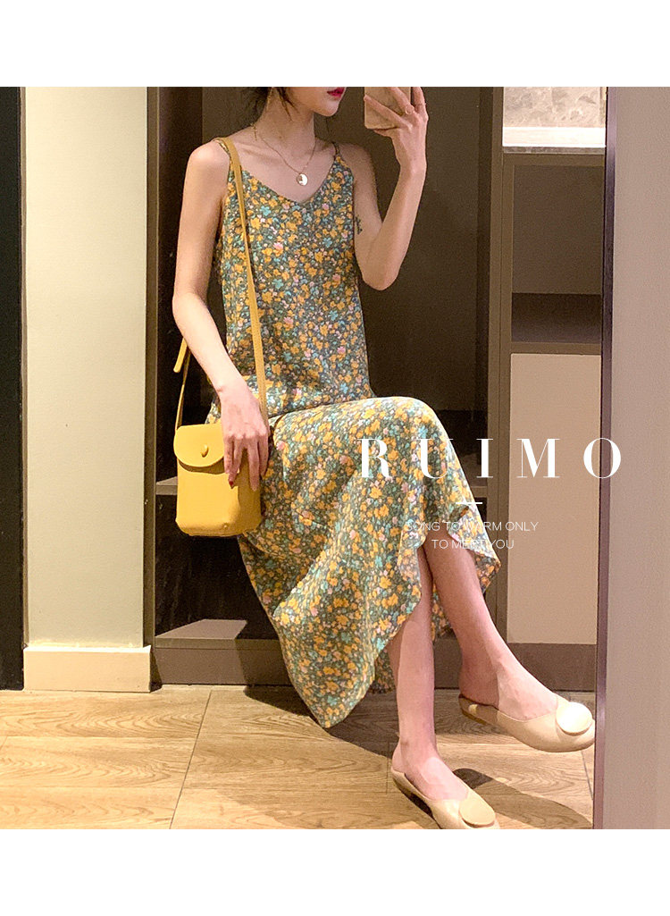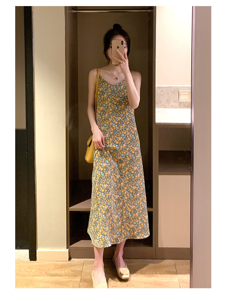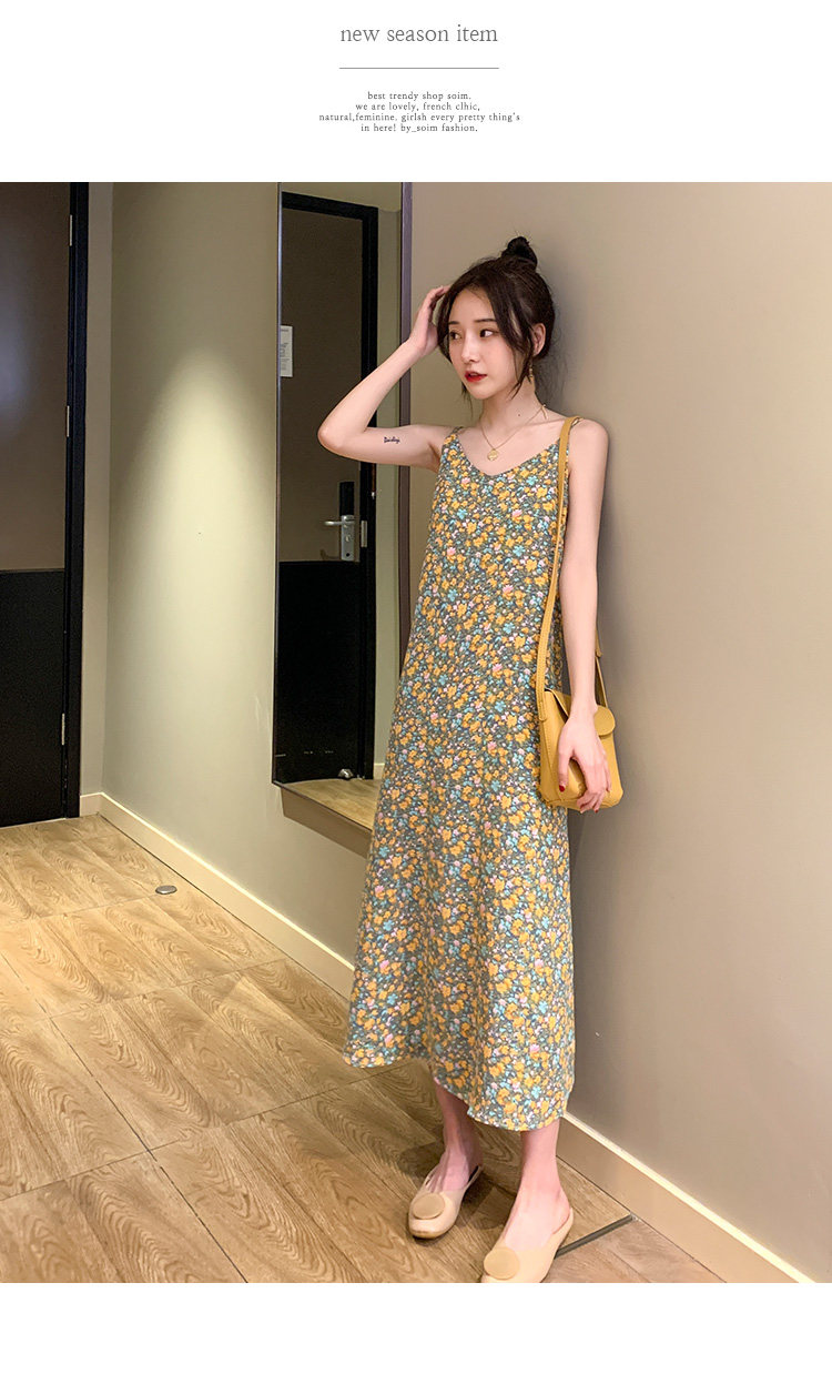 Gentle Floral Suspender Dress for Women, Spring and Summer New Style, Small Daisy V-Neck Slimming Inner Chiffon Long Dress
