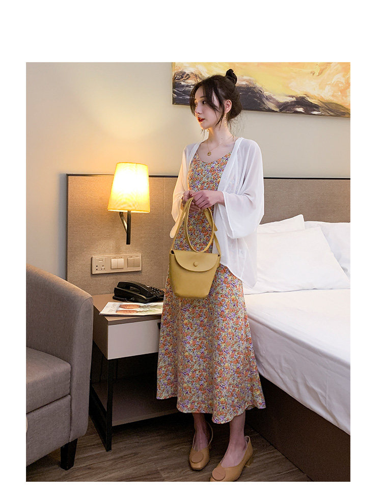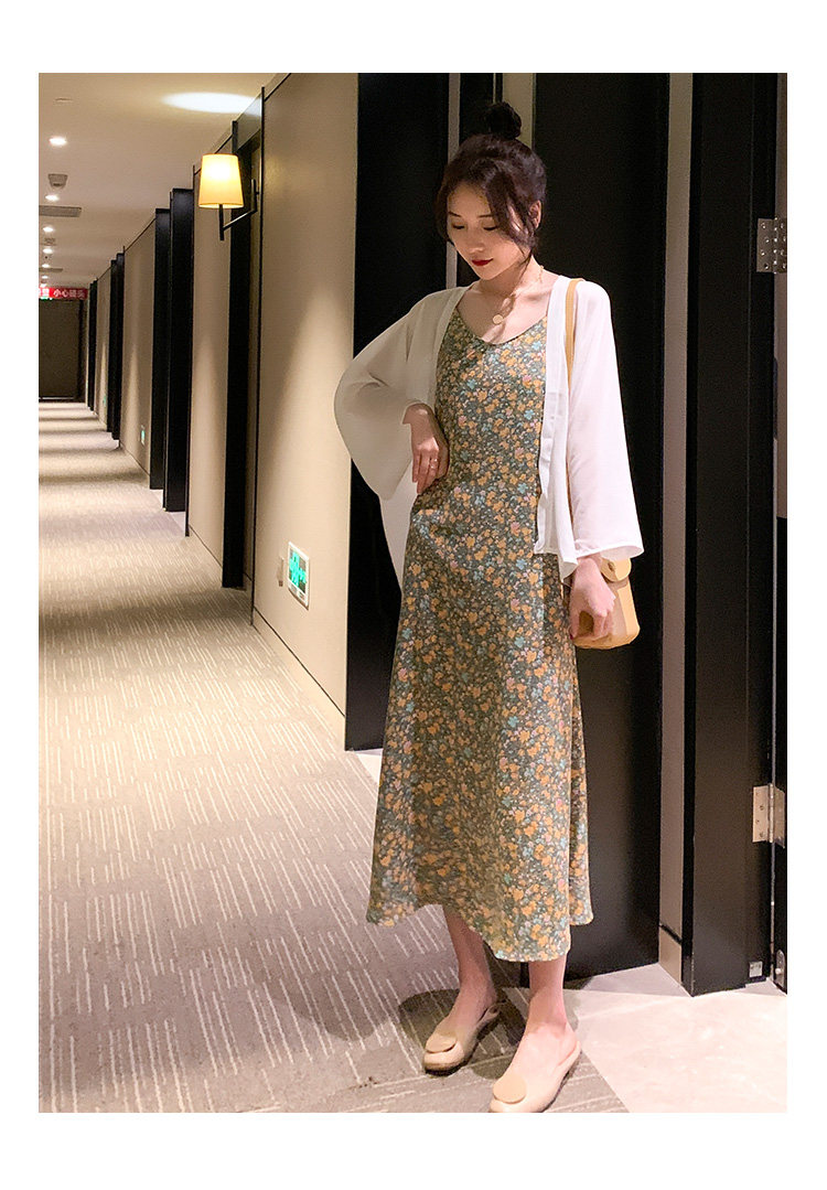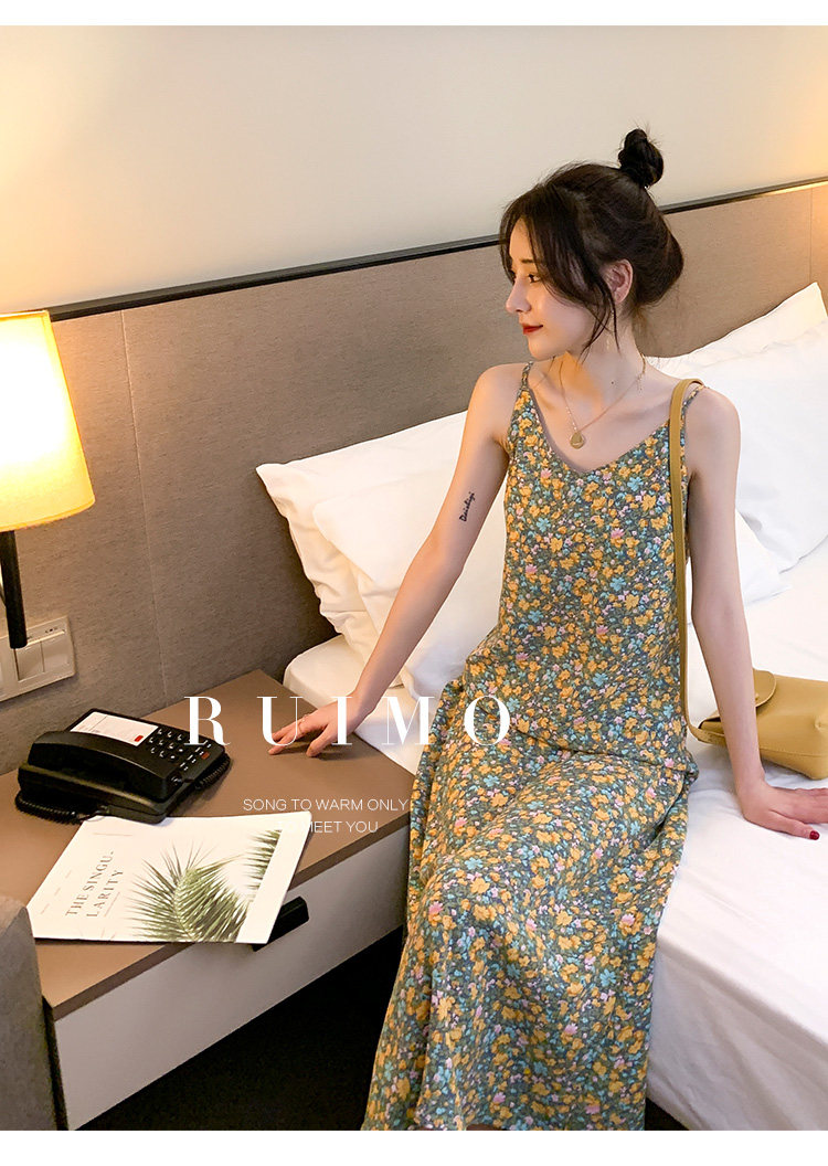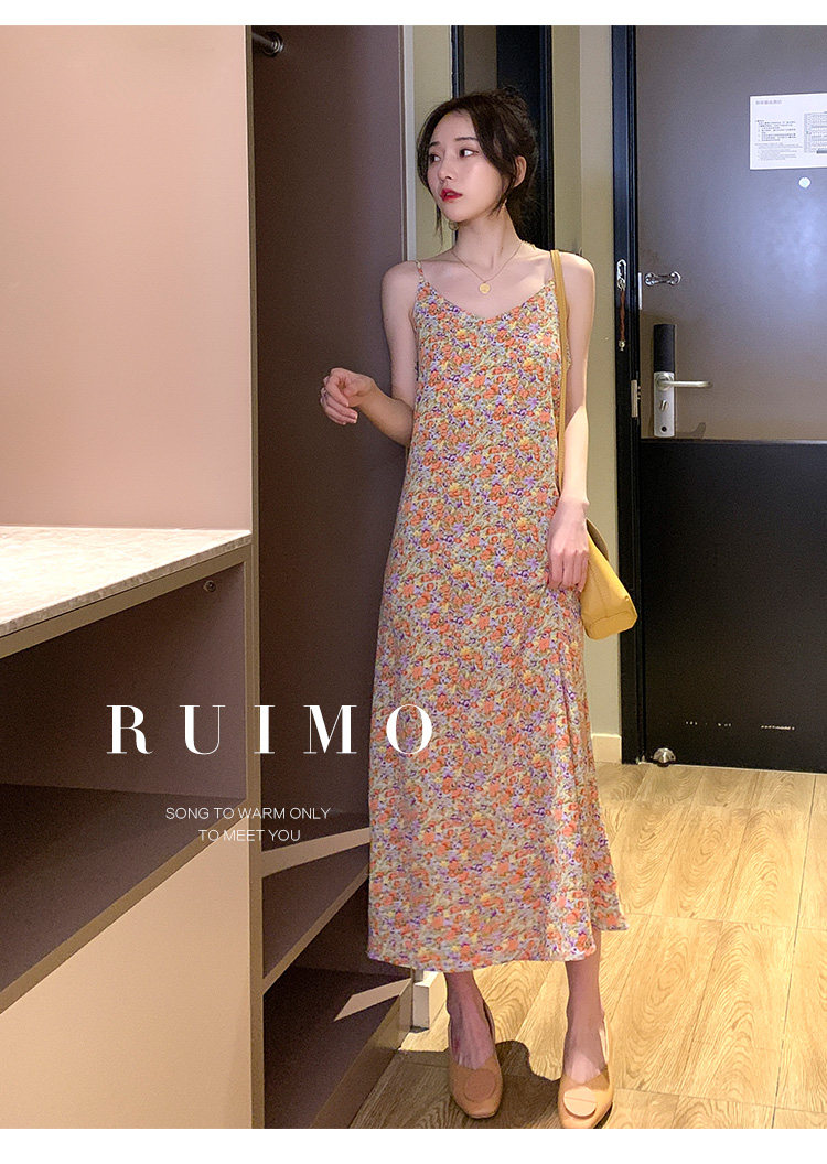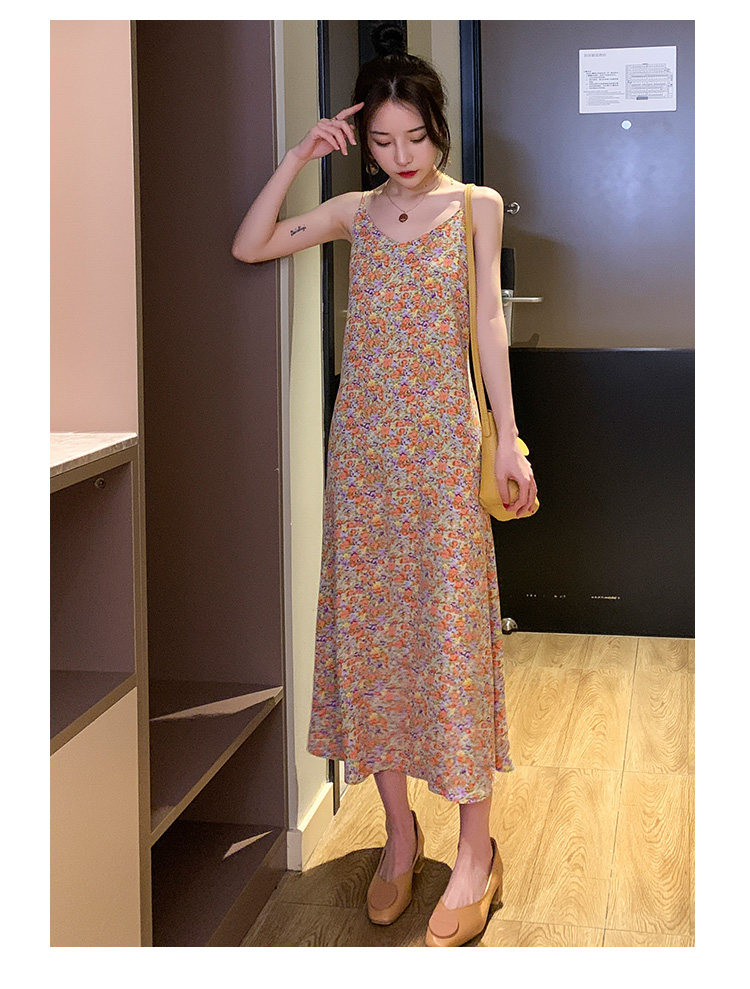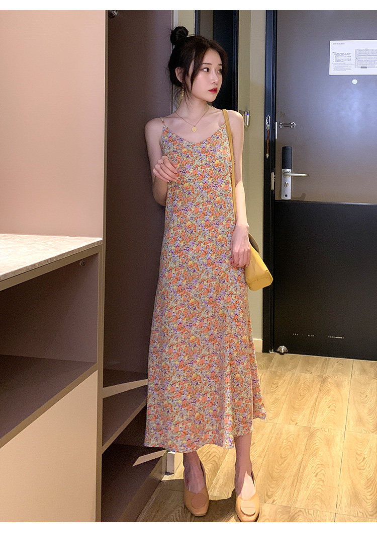 Gentle Floral Suspender Dress for Women, Spring and Summer New Style, Small Daisy V-Neck Slimming Inner Chiffon Long Dress