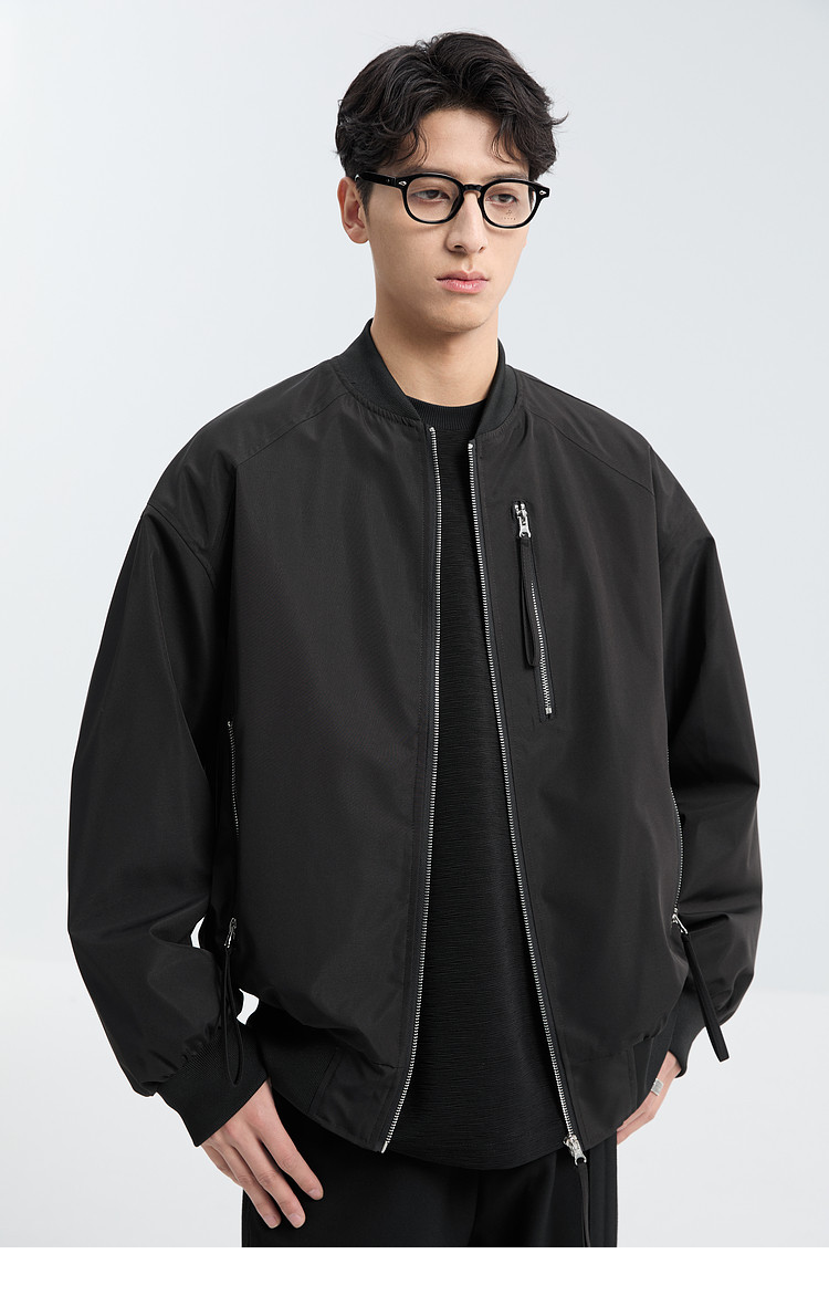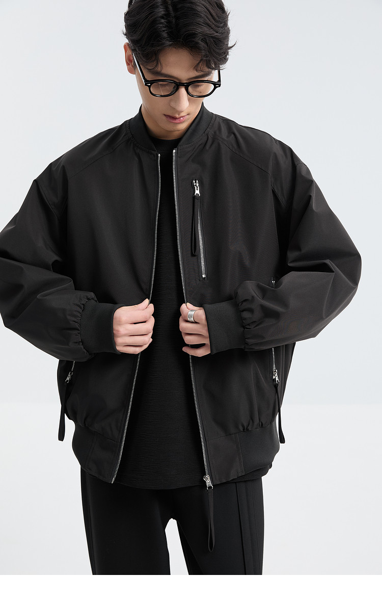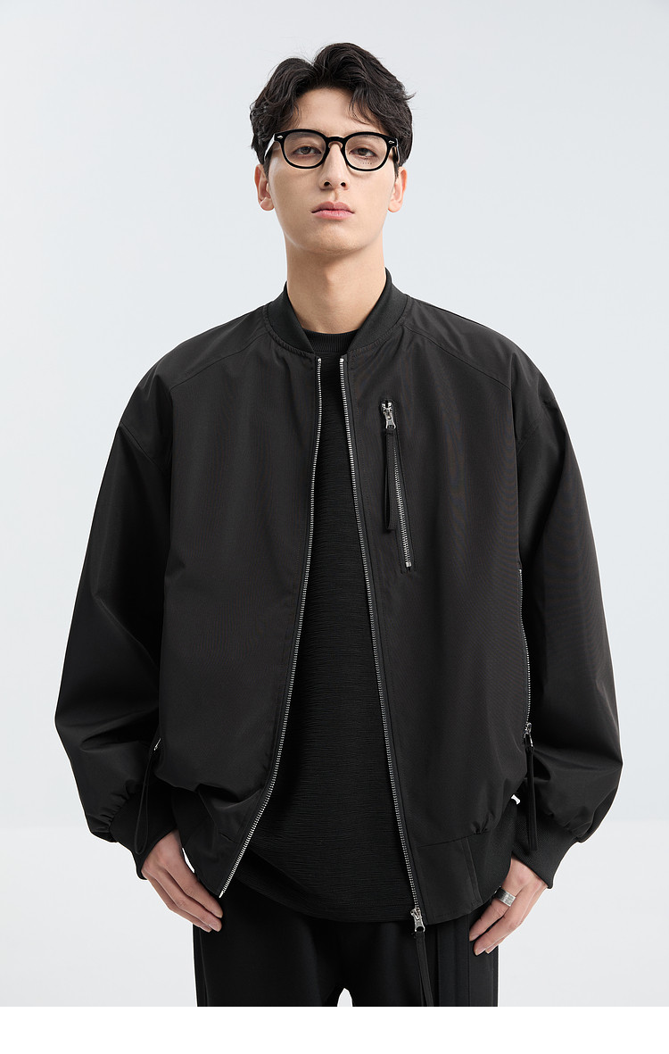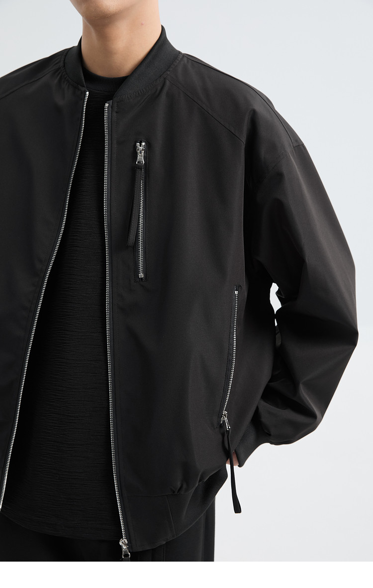 Black Ming Zipper Design Baseball Collar Jacket Men's 25 Spring and Autumn Korean Style Fashion Casual Versatile Loose Jacket
