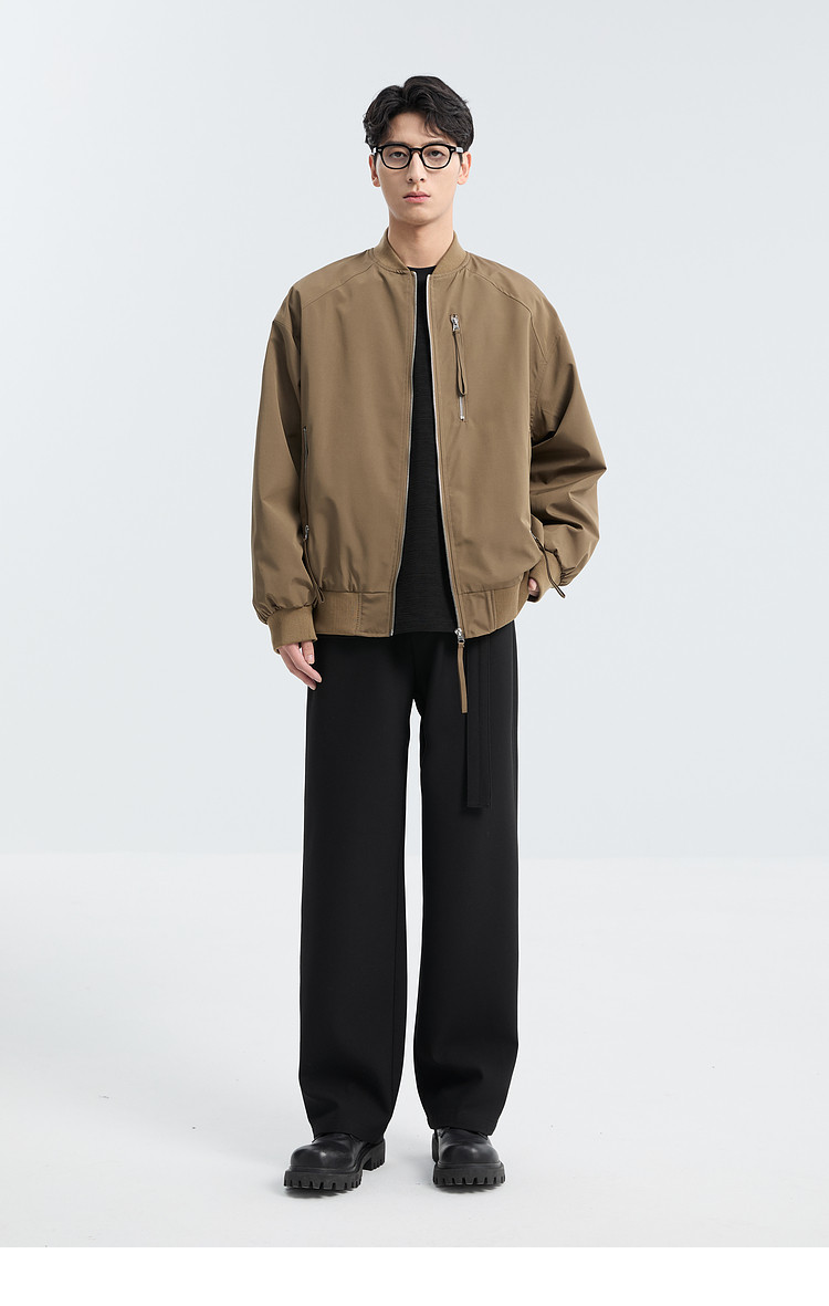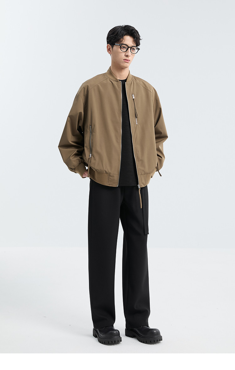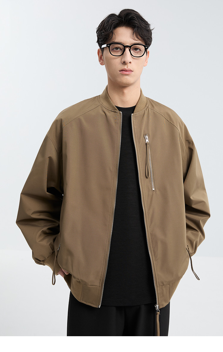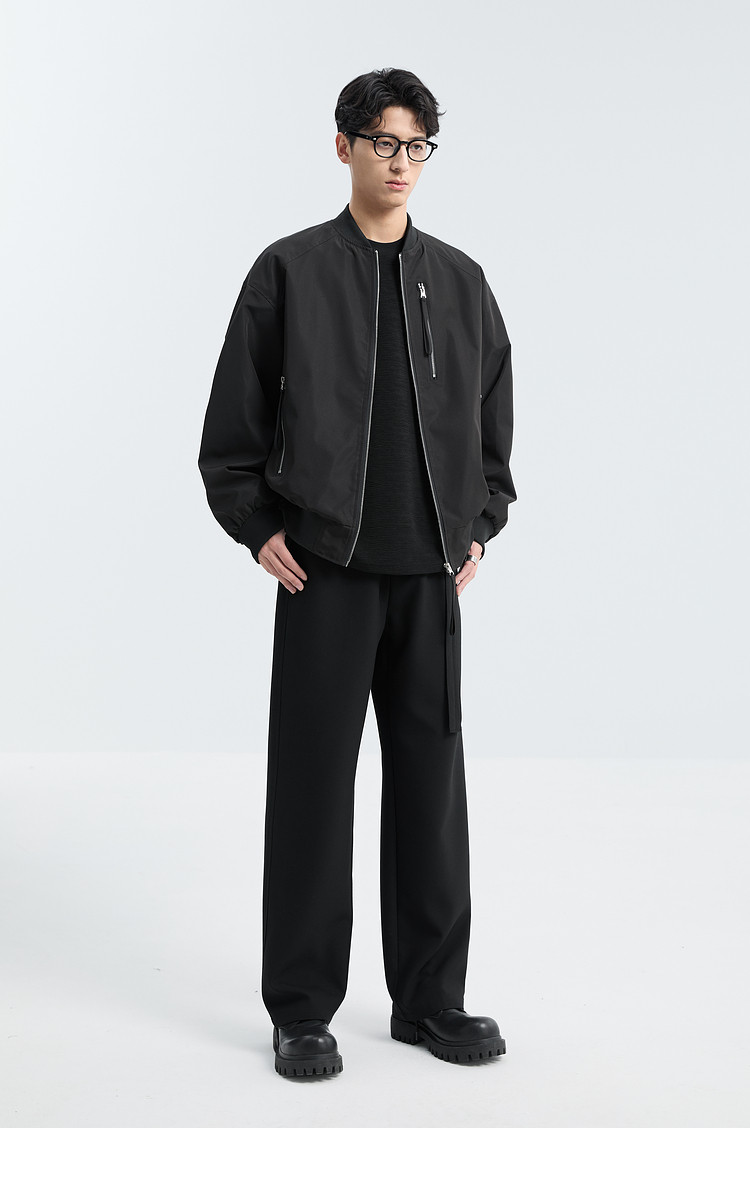 Black Ming Zipper Design Baseball Collar Jacket Men's 25 Spring and Autumn Korean Style Fashion Casual Versatile Loose Jacket