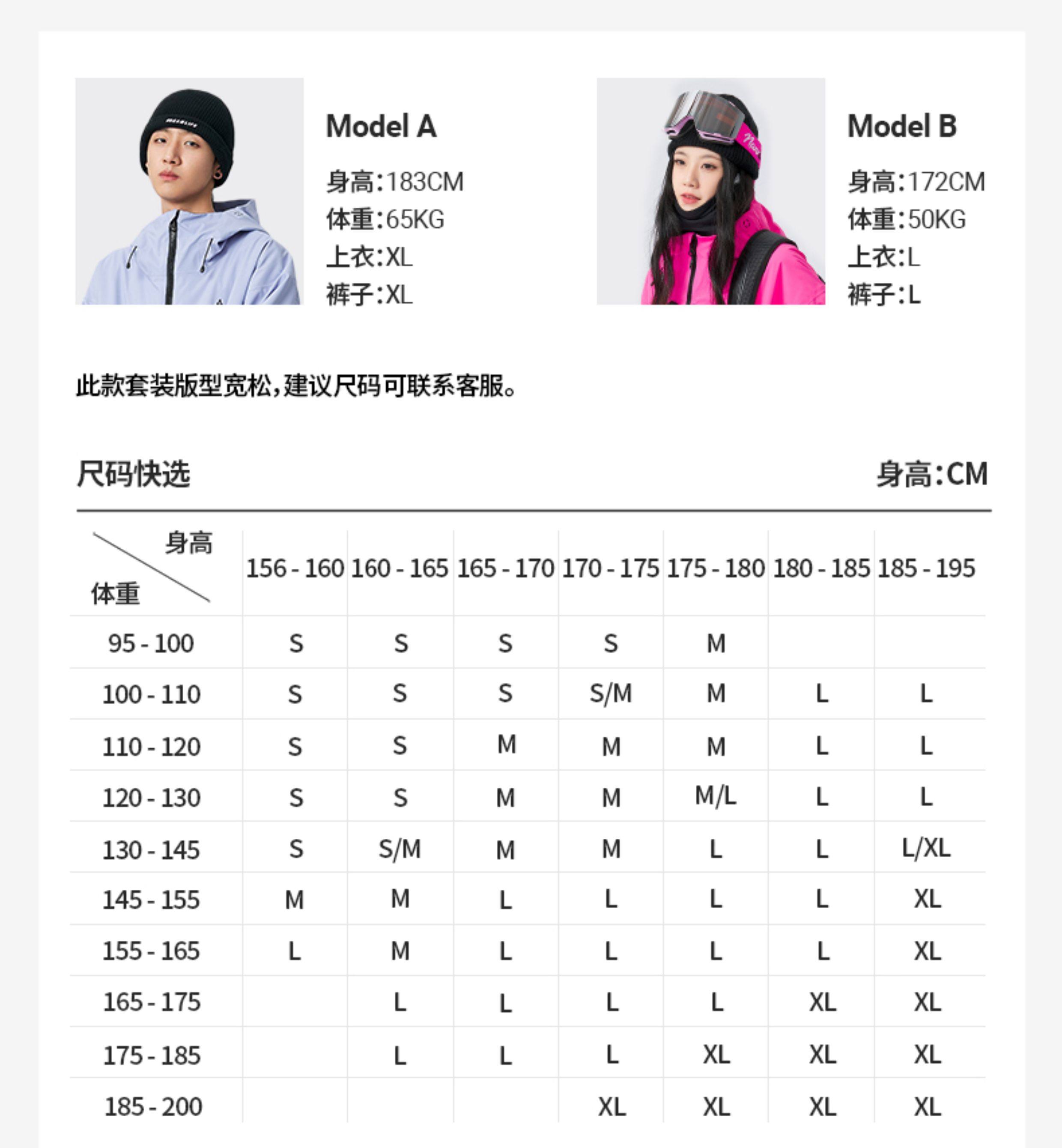 China (cm) 160-165/84-86 165-170 / 88-90 167-172 / 92-96 168-173 / 98-102 170-176 / 106-110