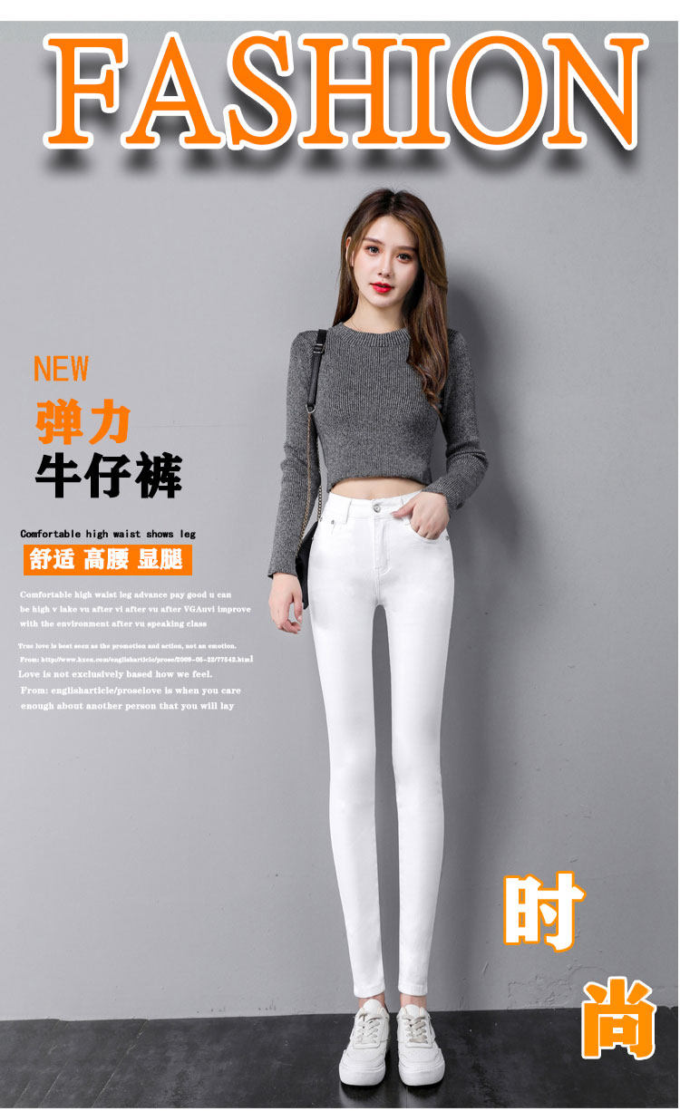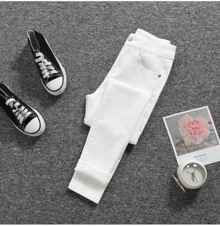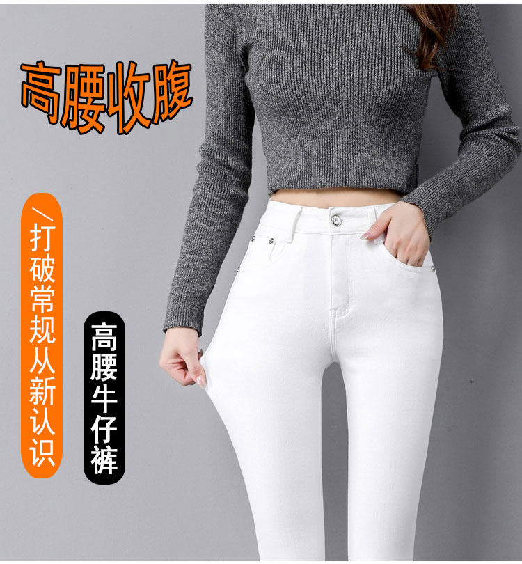 White Skinny Jeans for Women, 2025 Spring and Autumn New Style, Slim Fit, High-Waisted, Fleece-Lined, Pencil Pants