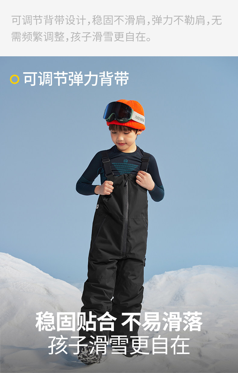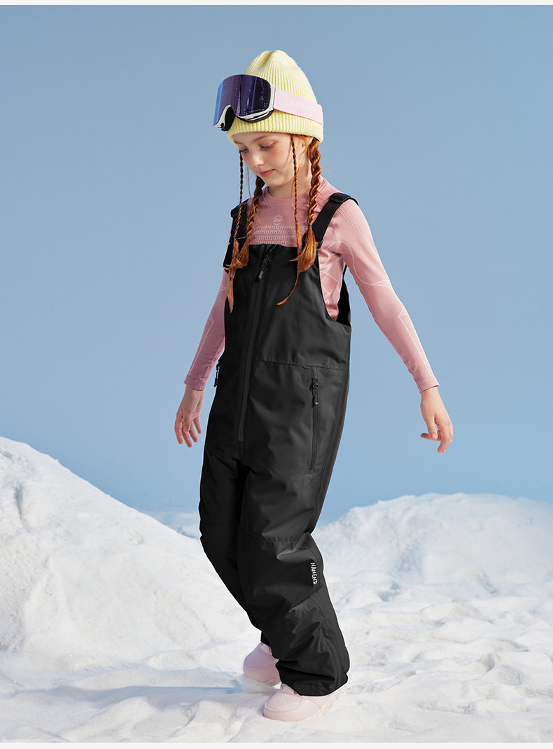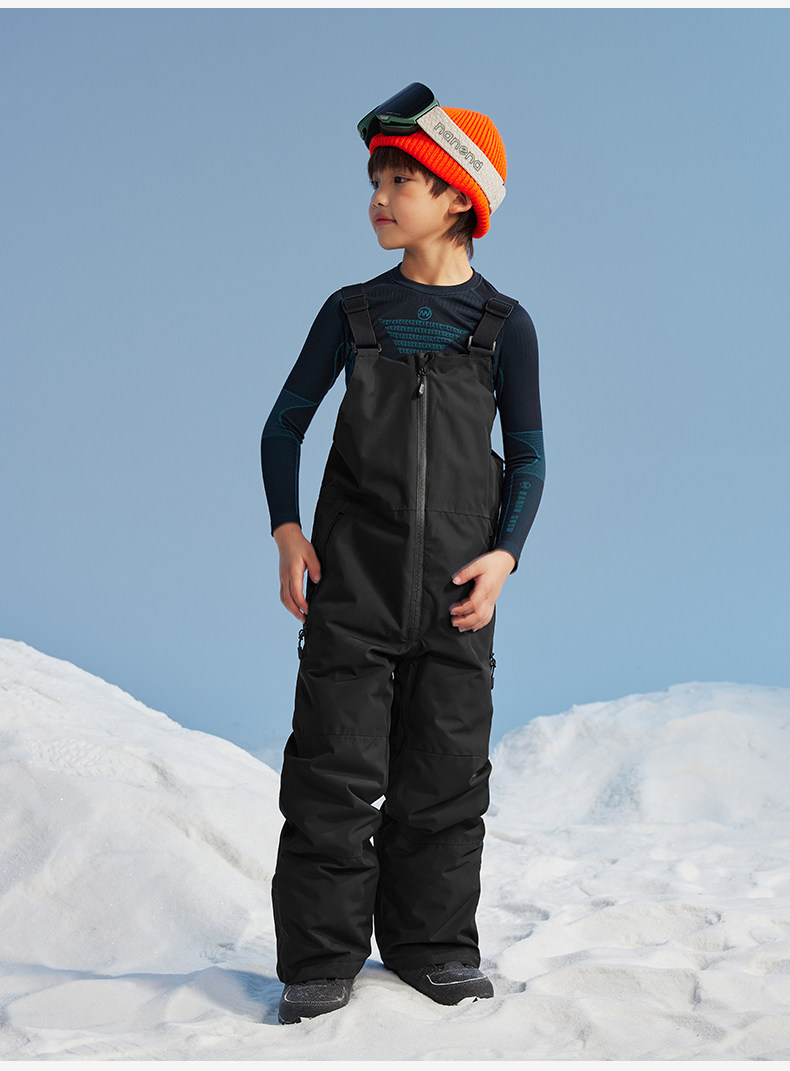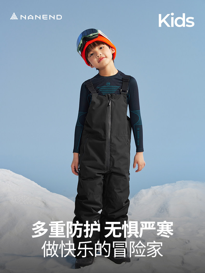 Nanend Nanen Ice and Snow Warrior Single and Double Board Children's Ski Pants, Warm and Waterproof Black Ski Overalls